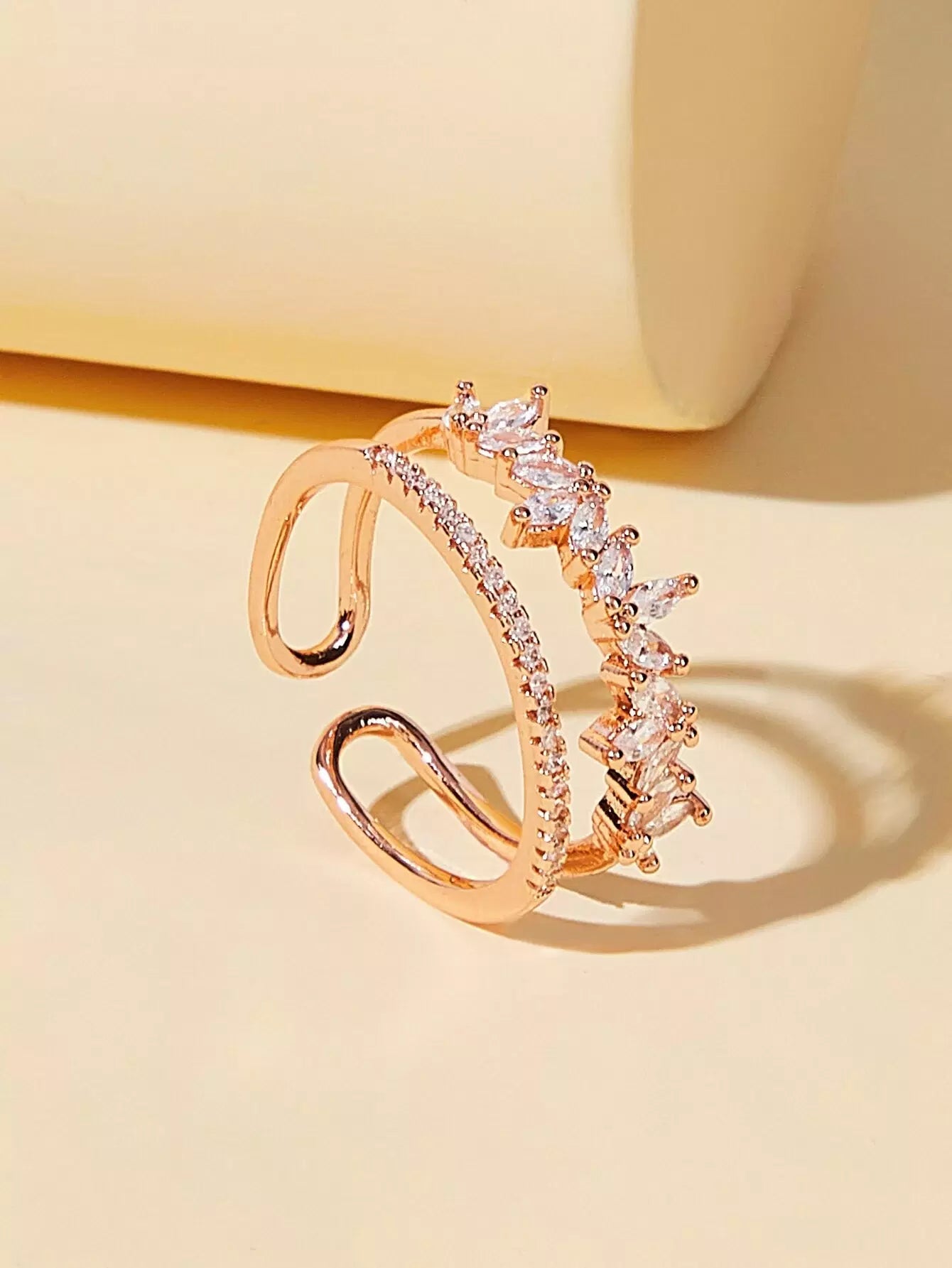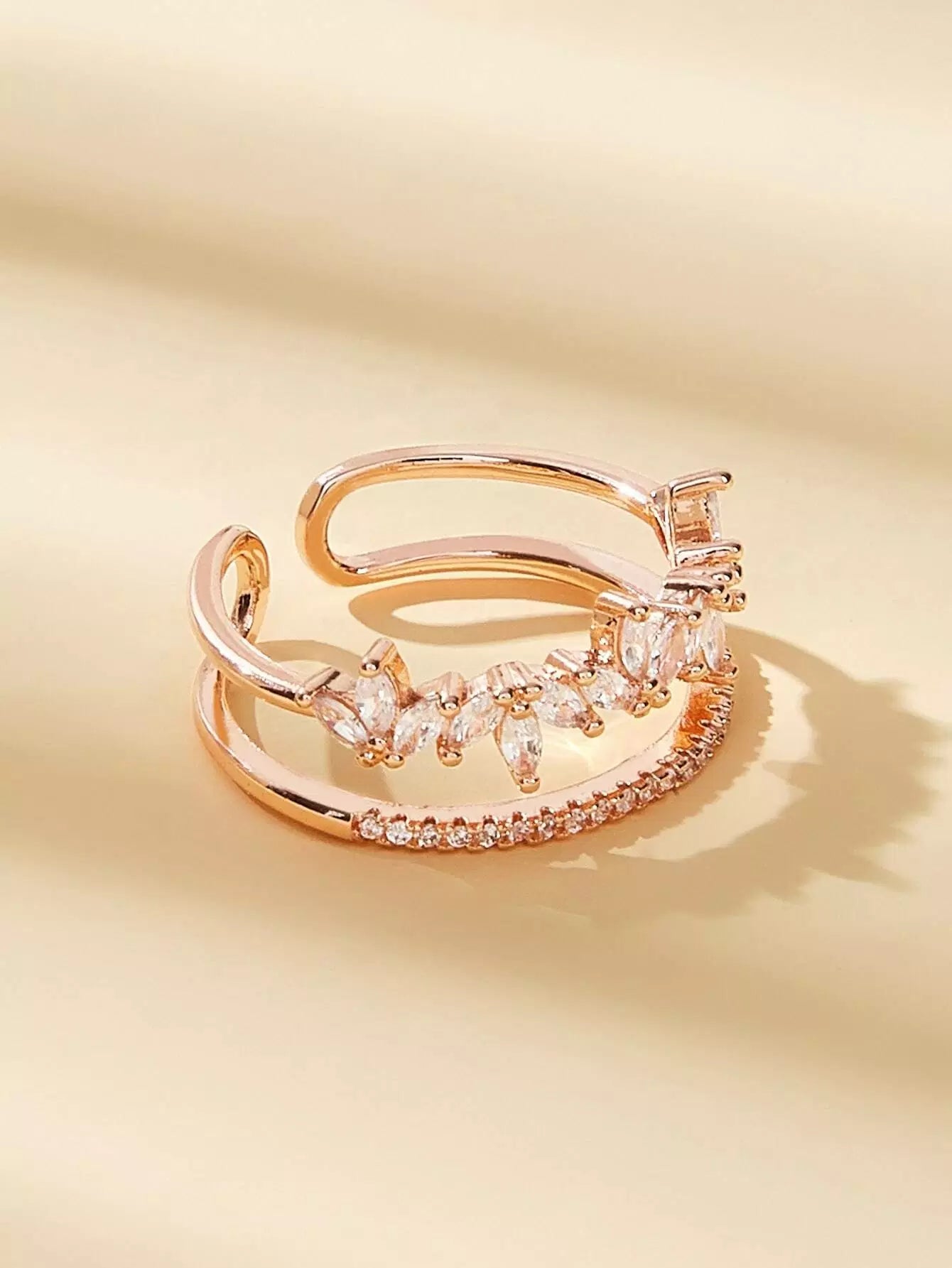 Rhinestone Decor Hollow Out Cuff Ring 1pc