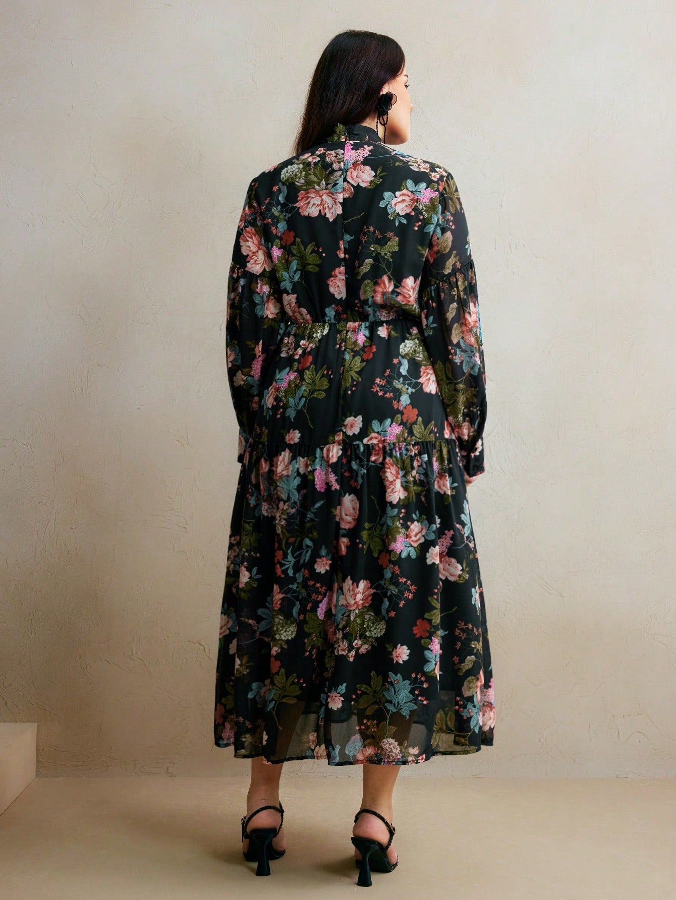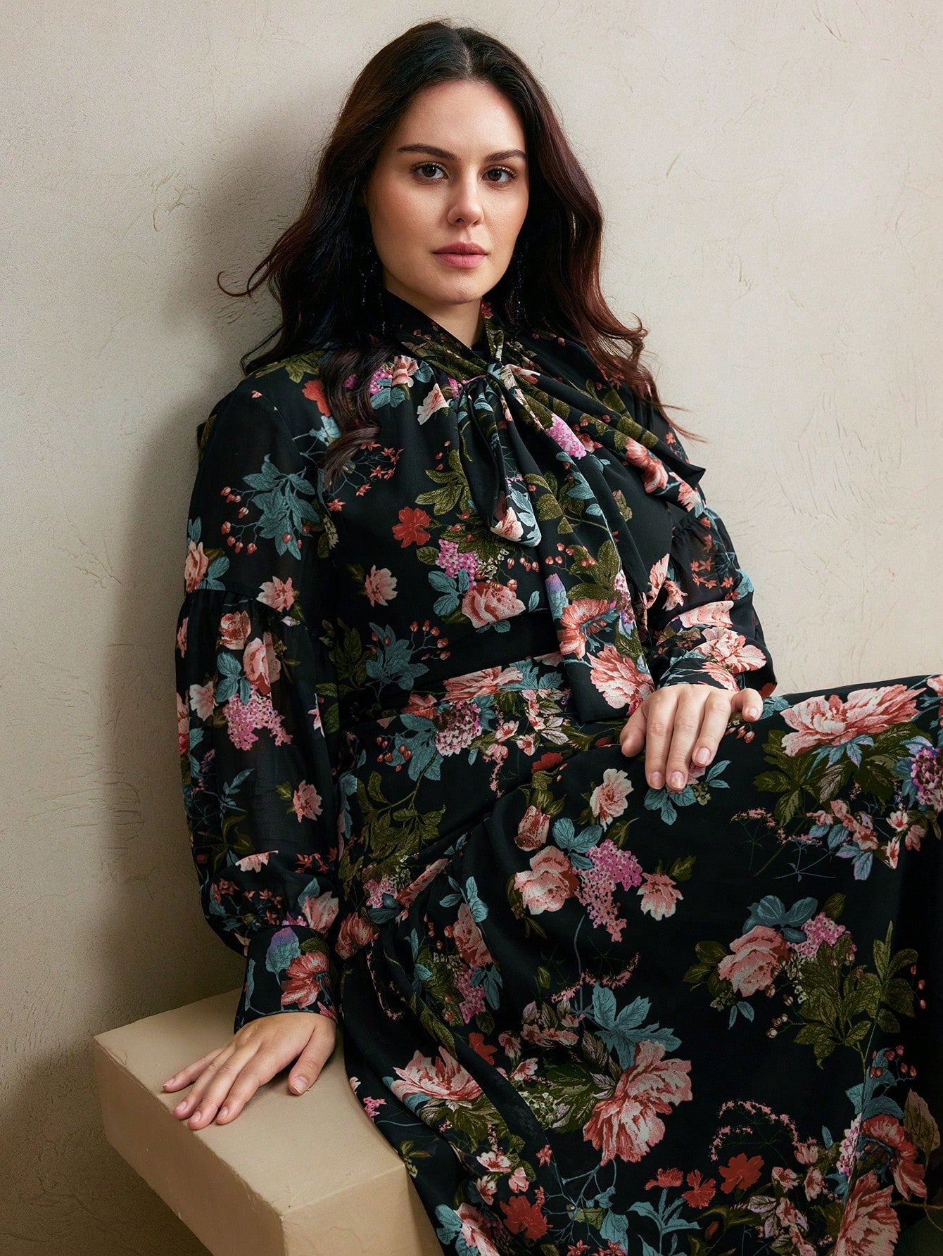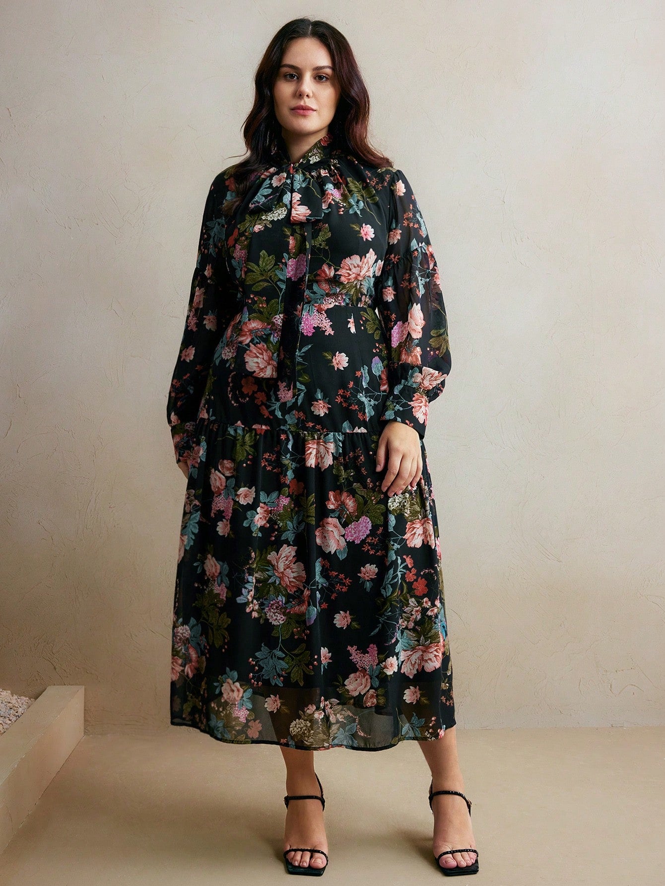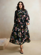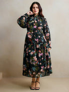 Anewsta Anewsta Women's Autumn Elegant Style Floral Print Plus Size Dress