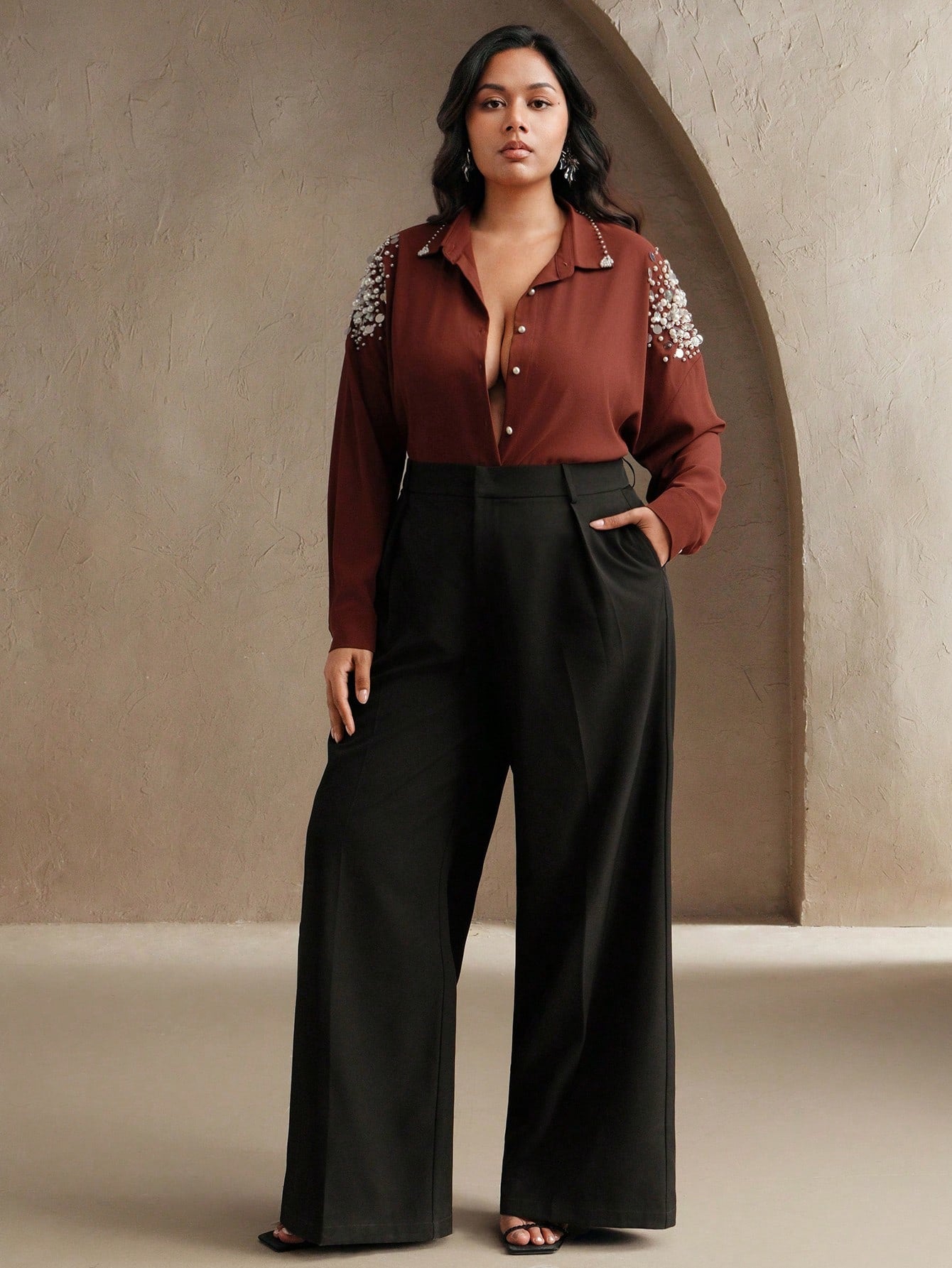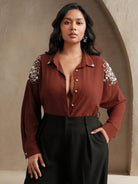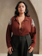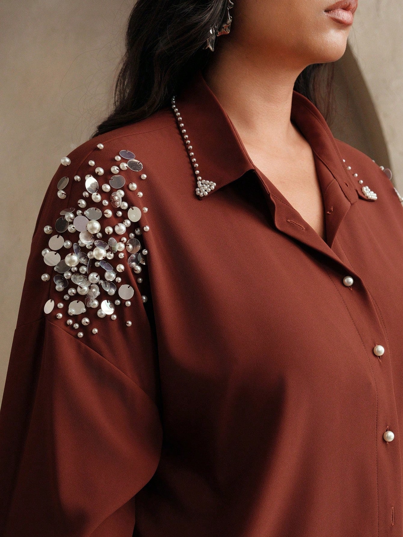 Anewsta Spring Plus Size Loose Women Blouse With Pearl Bead Sleeve Decoration, Modest Clothing