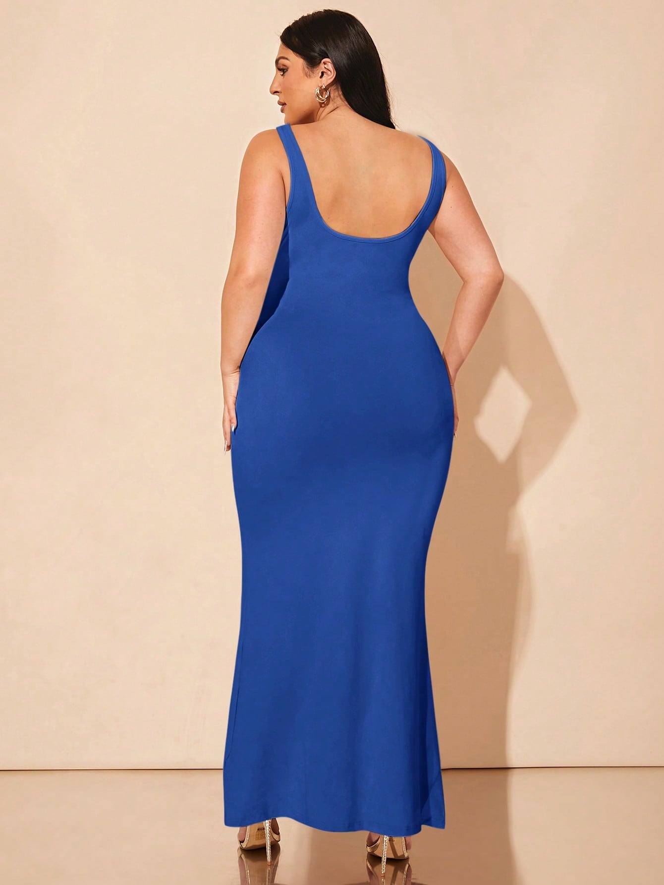 BAE Plus Size Women's Black Elegant Party French Patchwork Lace Suspender Straps Fishtail Long Dress