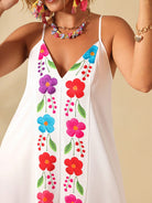 Breezaya Flowers Birds Adjustable Strap V-Neck Front & Center Floral Embroidery Print Tropical Dress