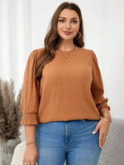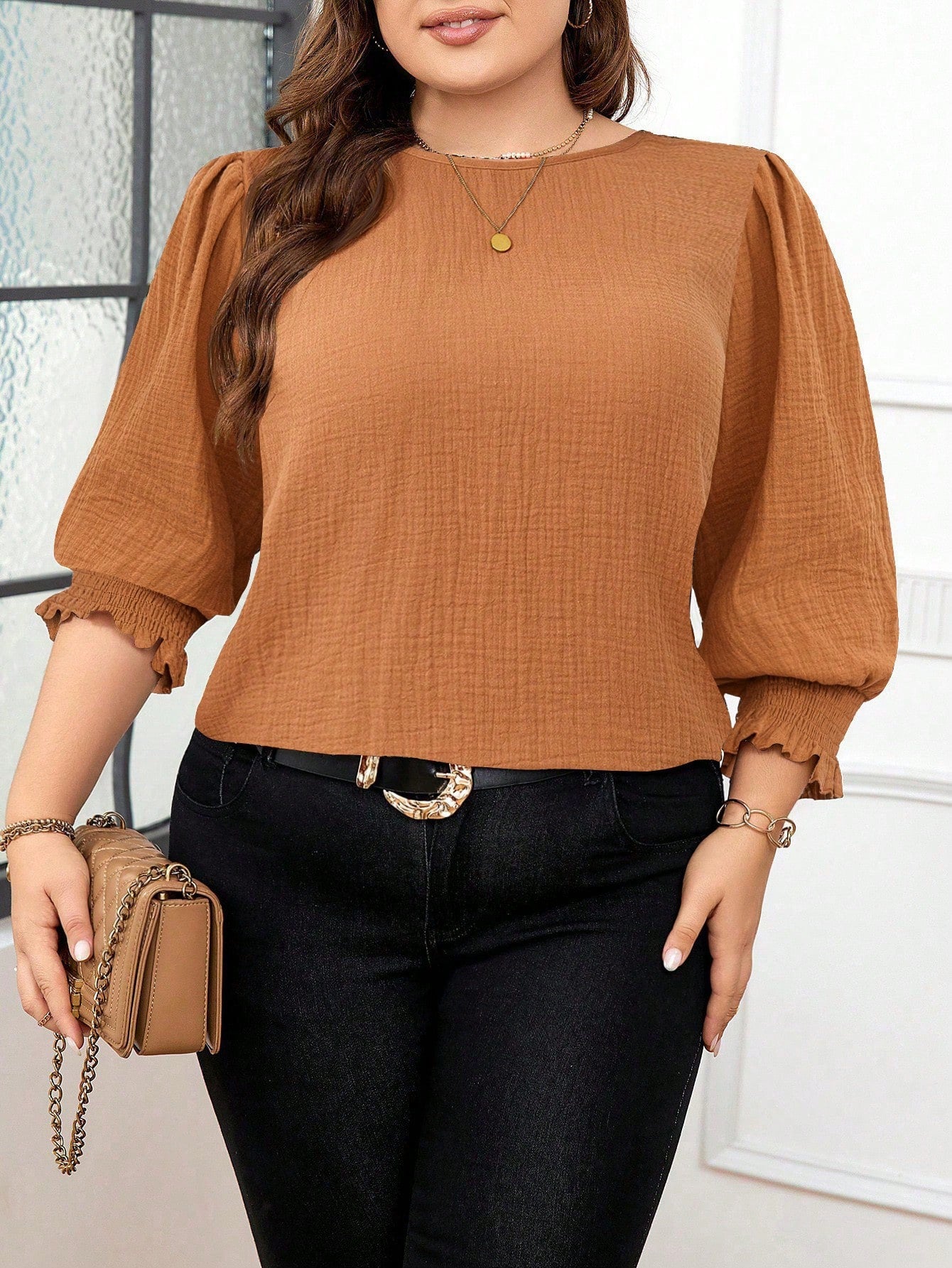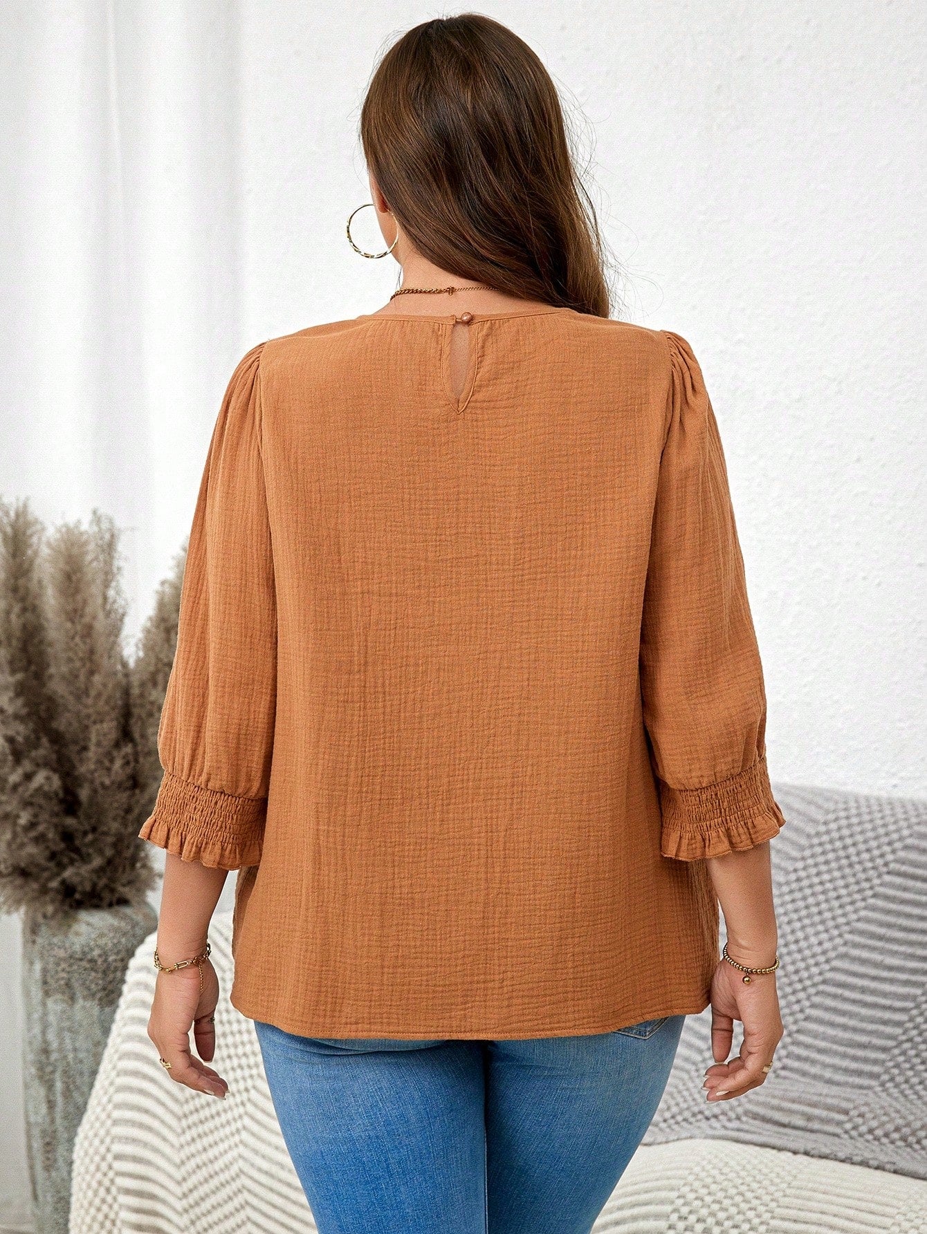 Clasi Plus Size Women Fall Clothes Solid Crew Neck 3/4 Sleeve Loose Casual Blouse