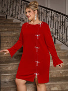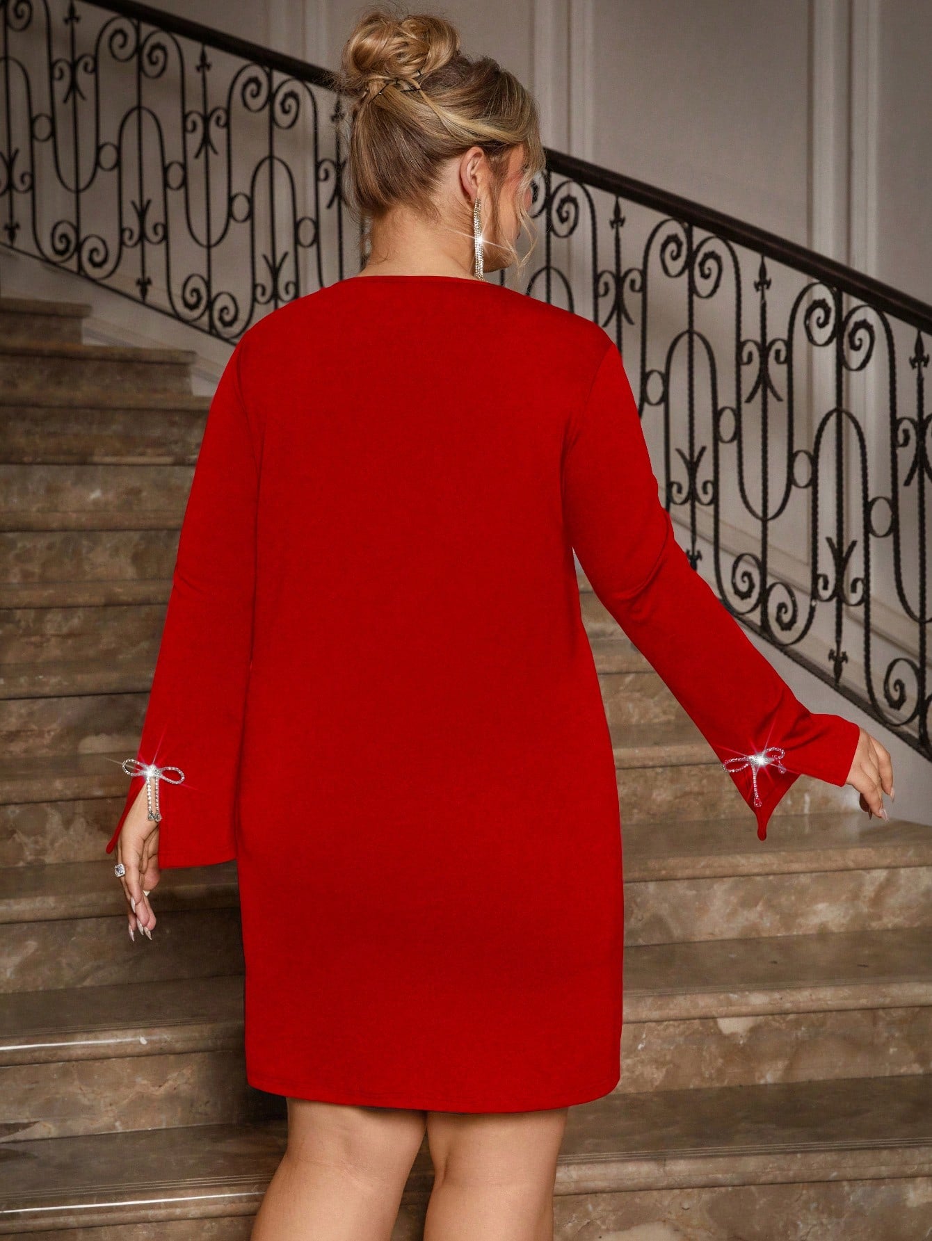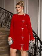 Clasi Plus Size Women's Autumn/Winter Fashion Party Velvet Patchwork H-Line Mini Dress