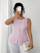 Elenzga Elegant Sleeveless Shirt Vest For Women, Blue Striped Slim Fit Casual/Office Wear, Plus Size,