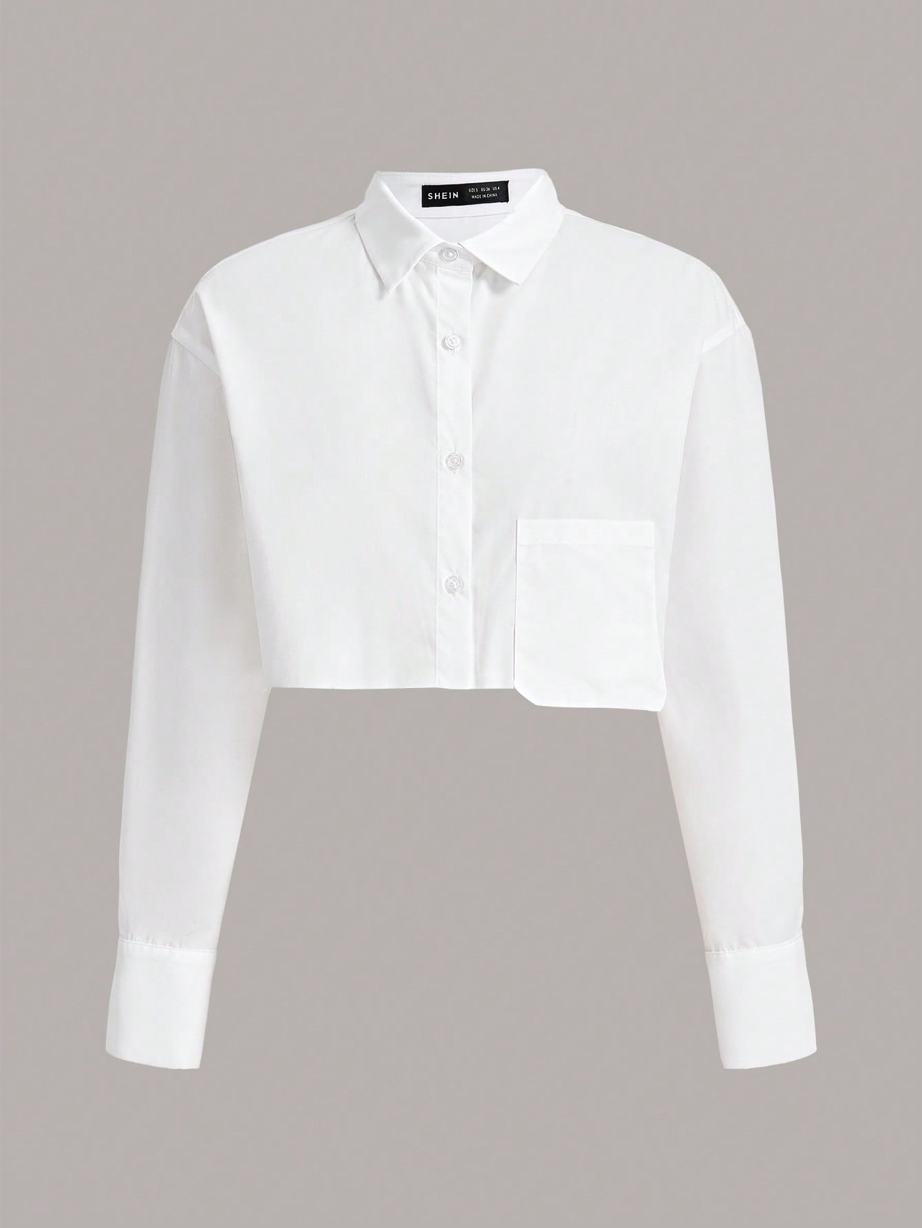 EZwear Plus Size Women Lapel Collar Open Front Pocket Long Sleeve Casual Blouse Shirt For Work Office