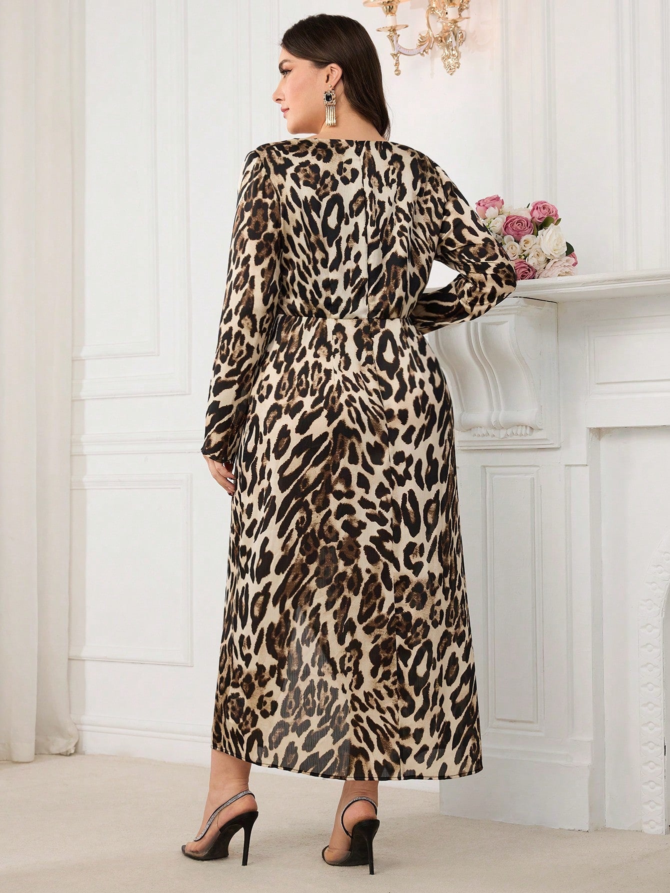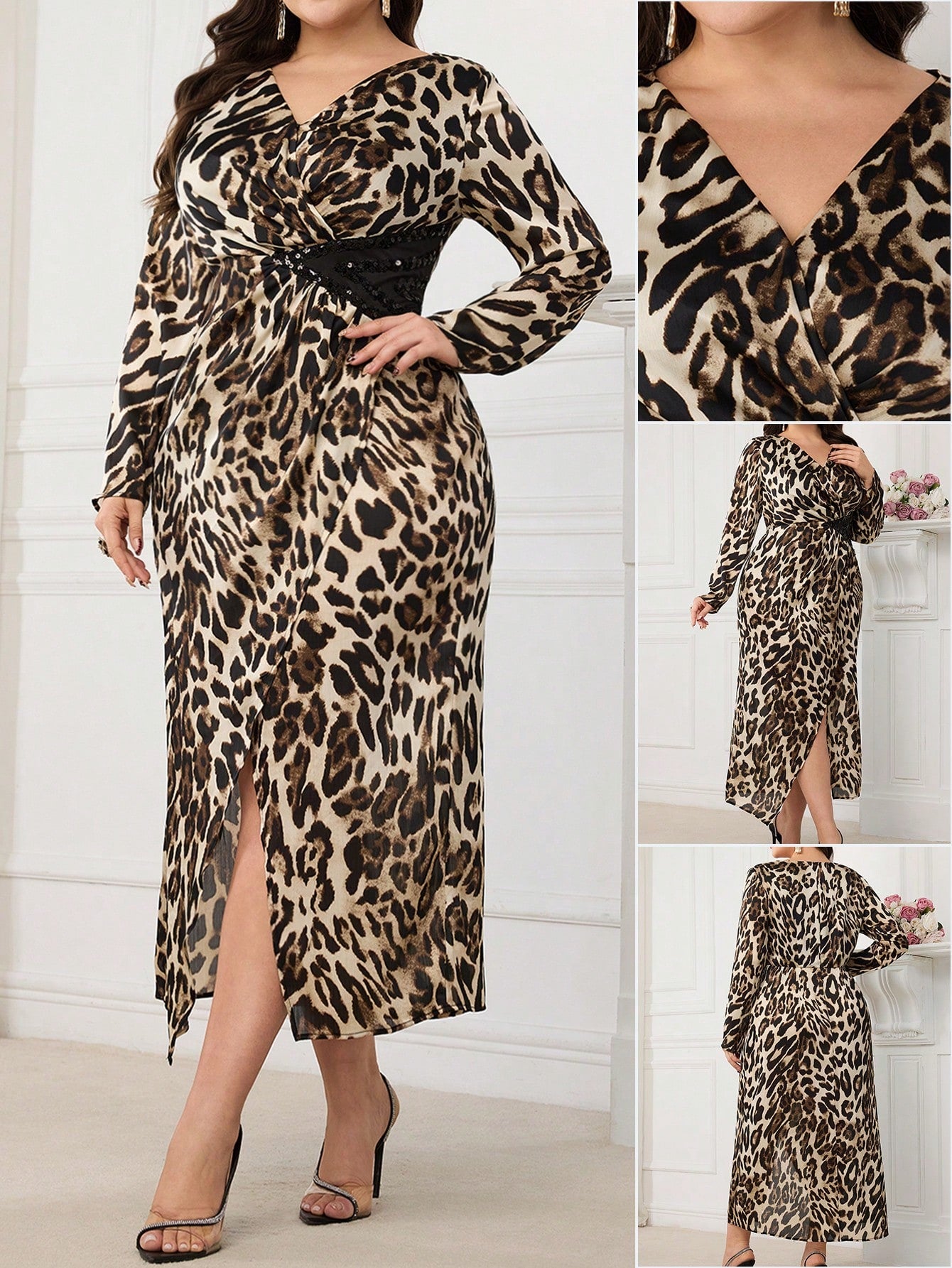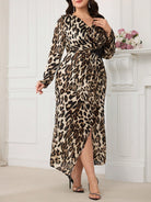 Modelyn Plus Size Leopard Print Casual Dress, Fashionable For Daily Wear