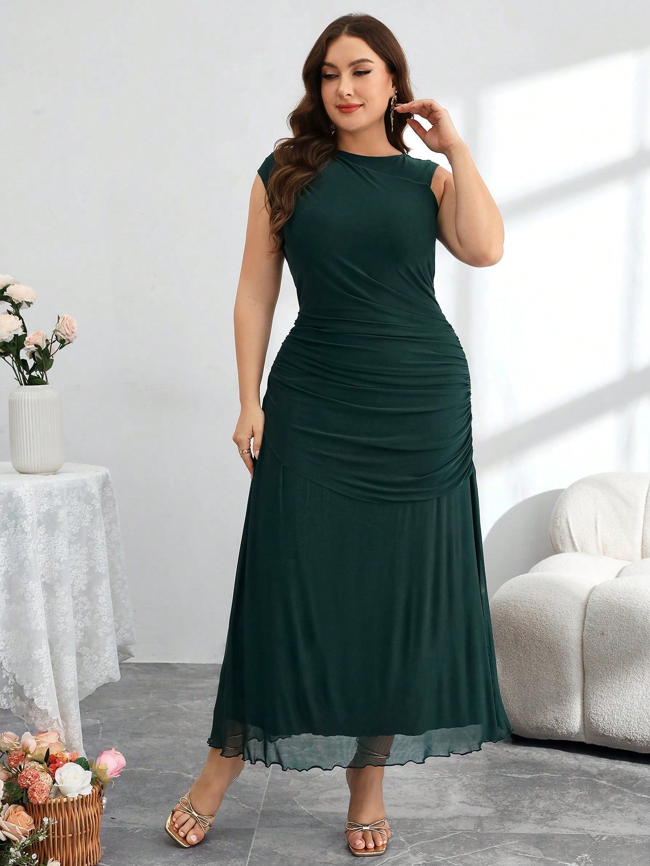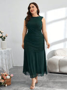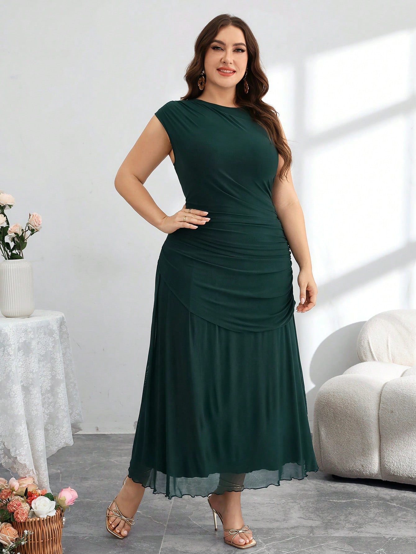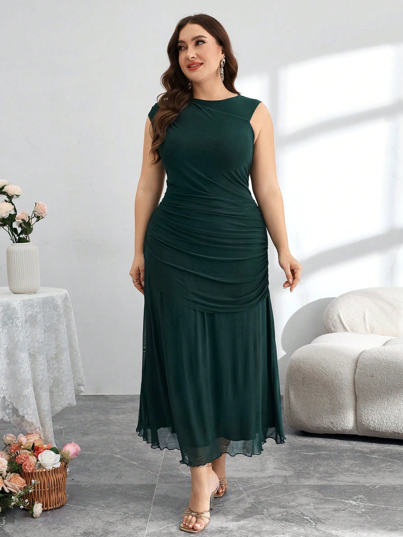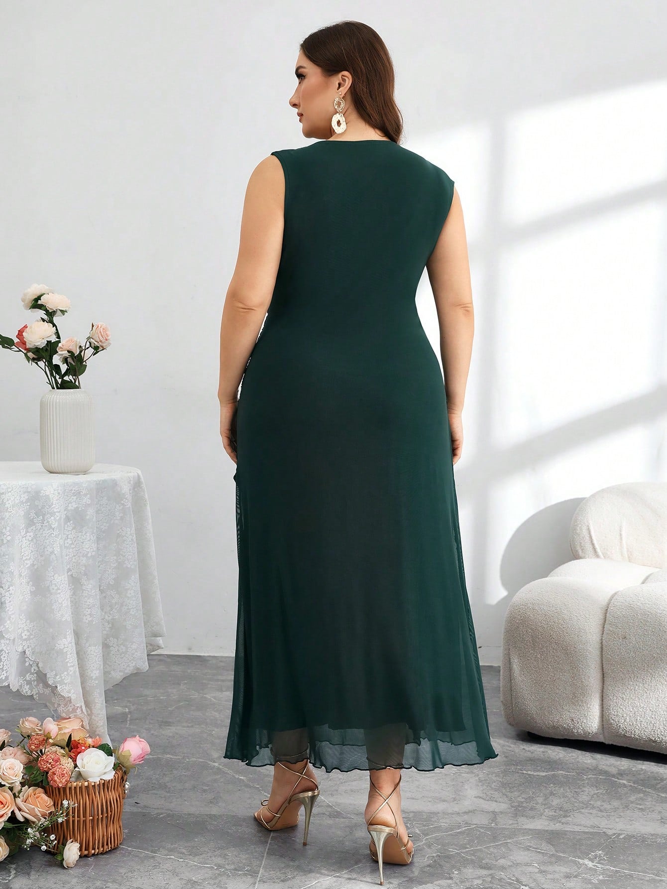 Modelyn Women's V-Neck Pleated Mesh Sleeveless Niche Design Elegant Cocktail Dress