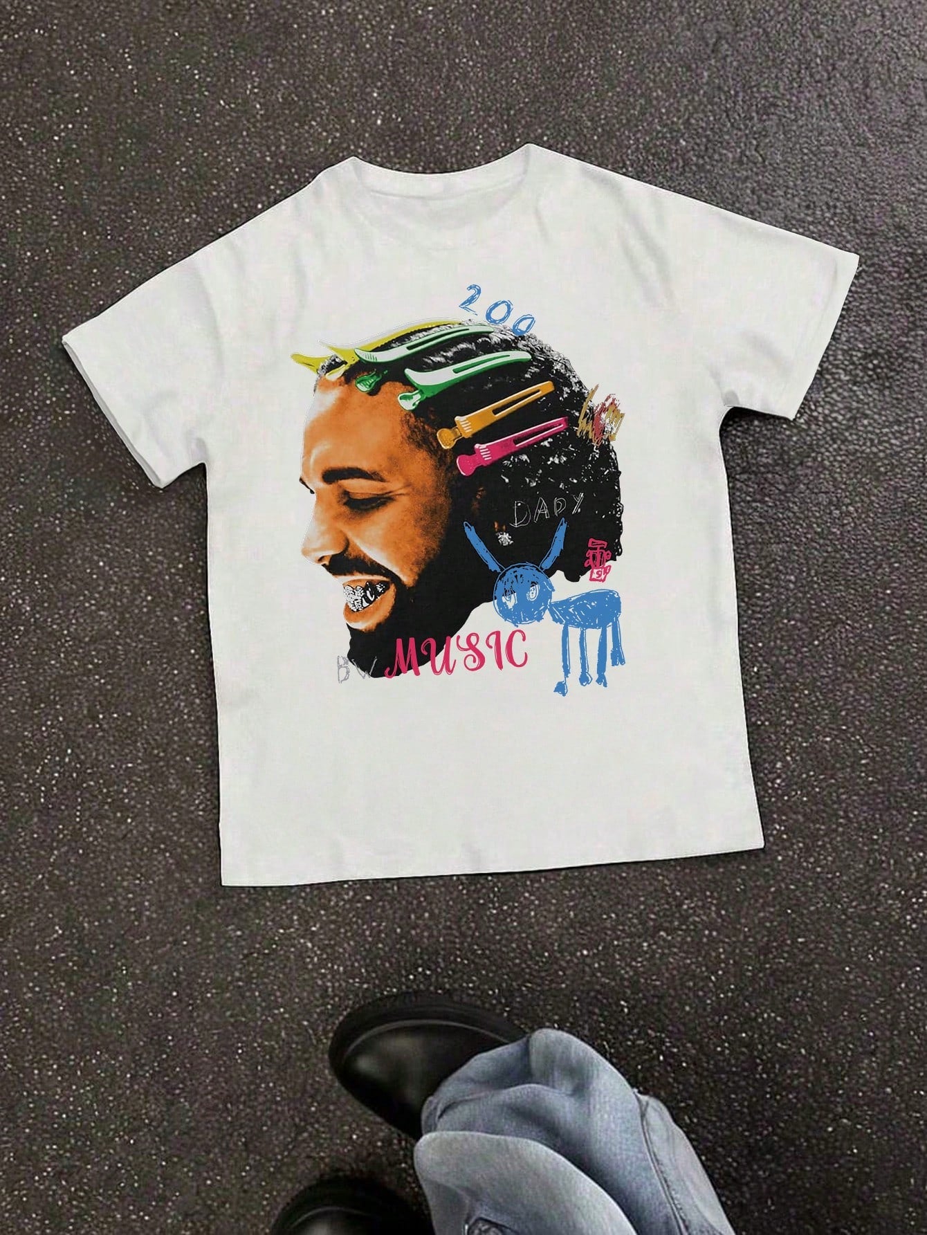 Noixe Plus Size Women Letter & Figure Print Round Neck Short Sleeve Casual T-Shirt
