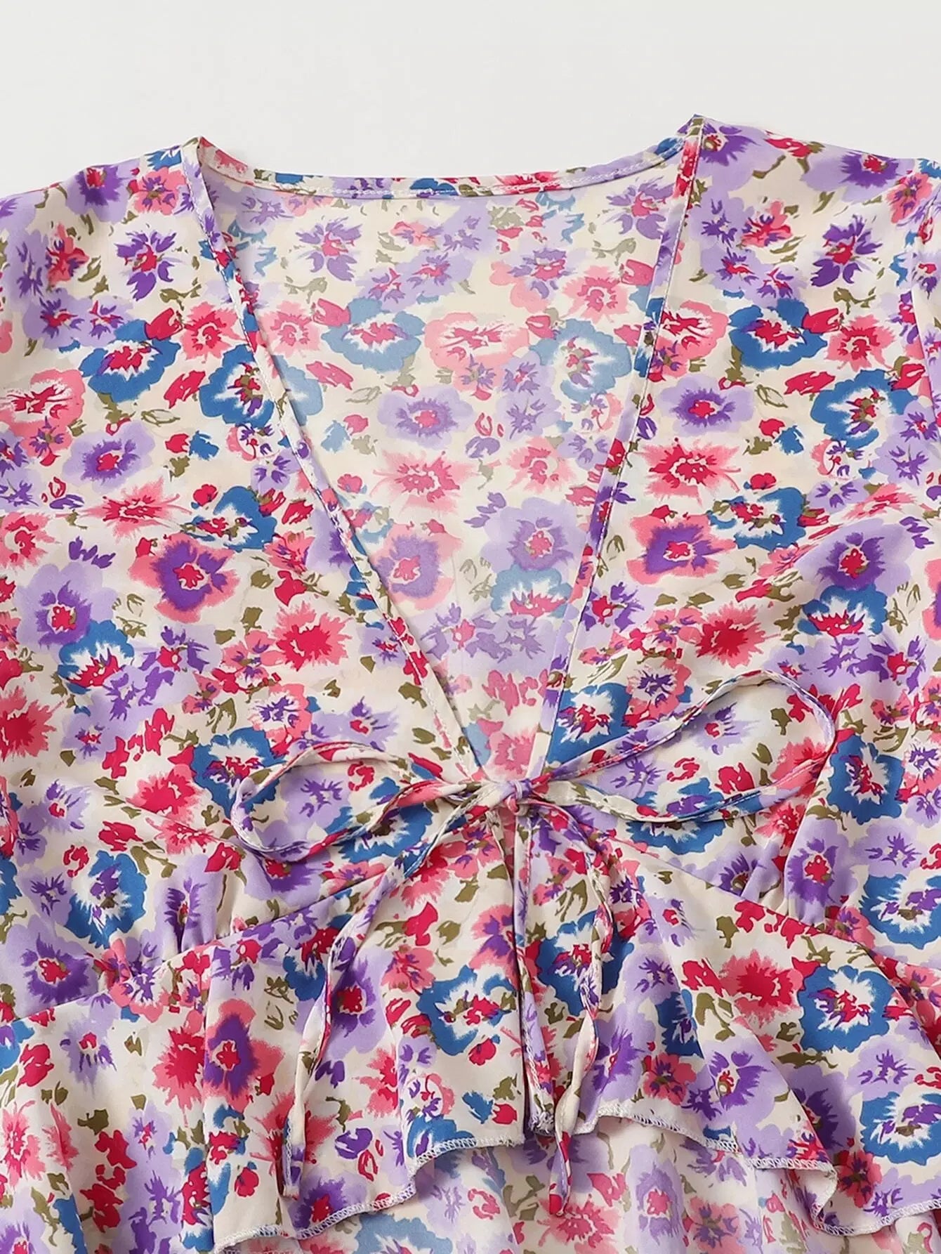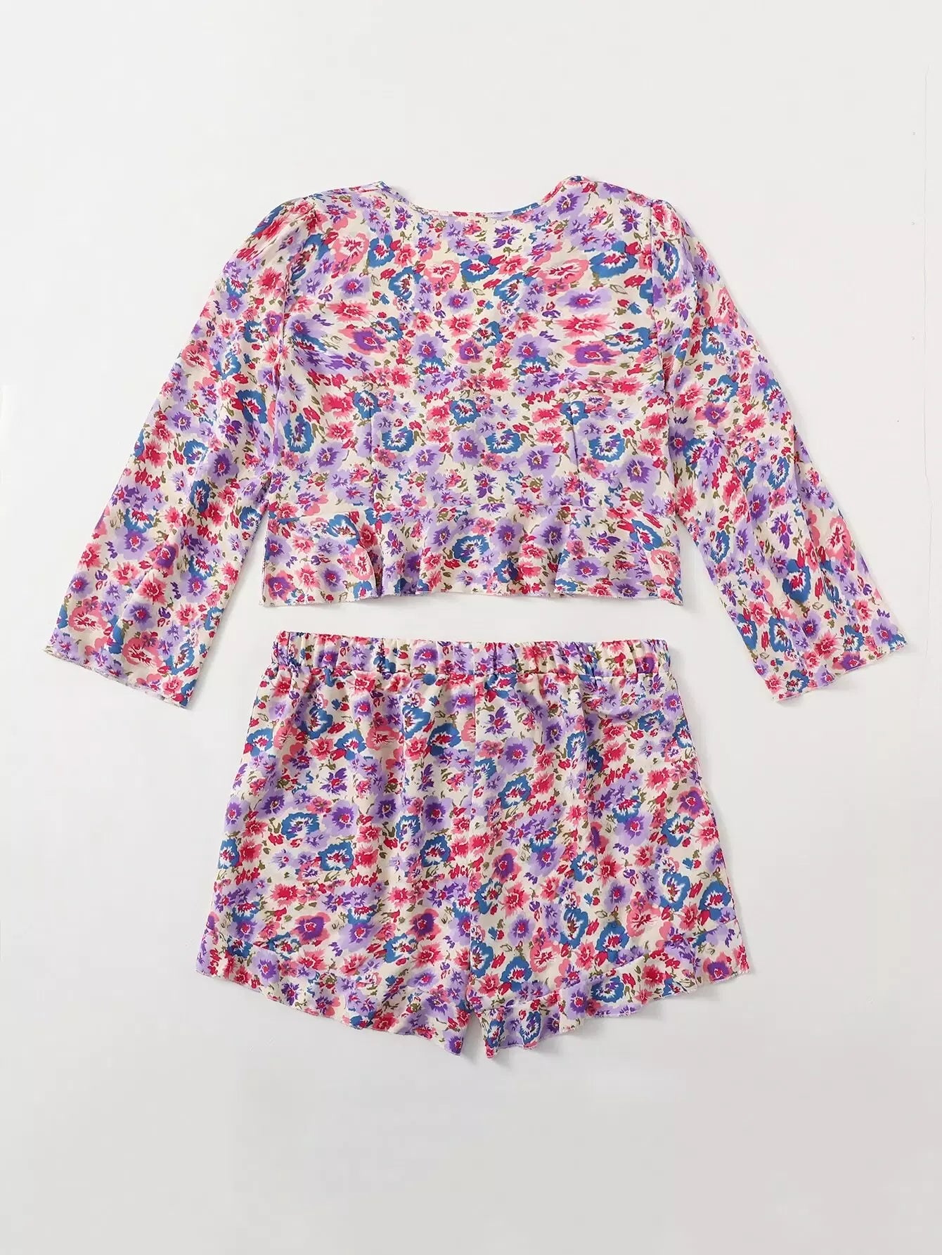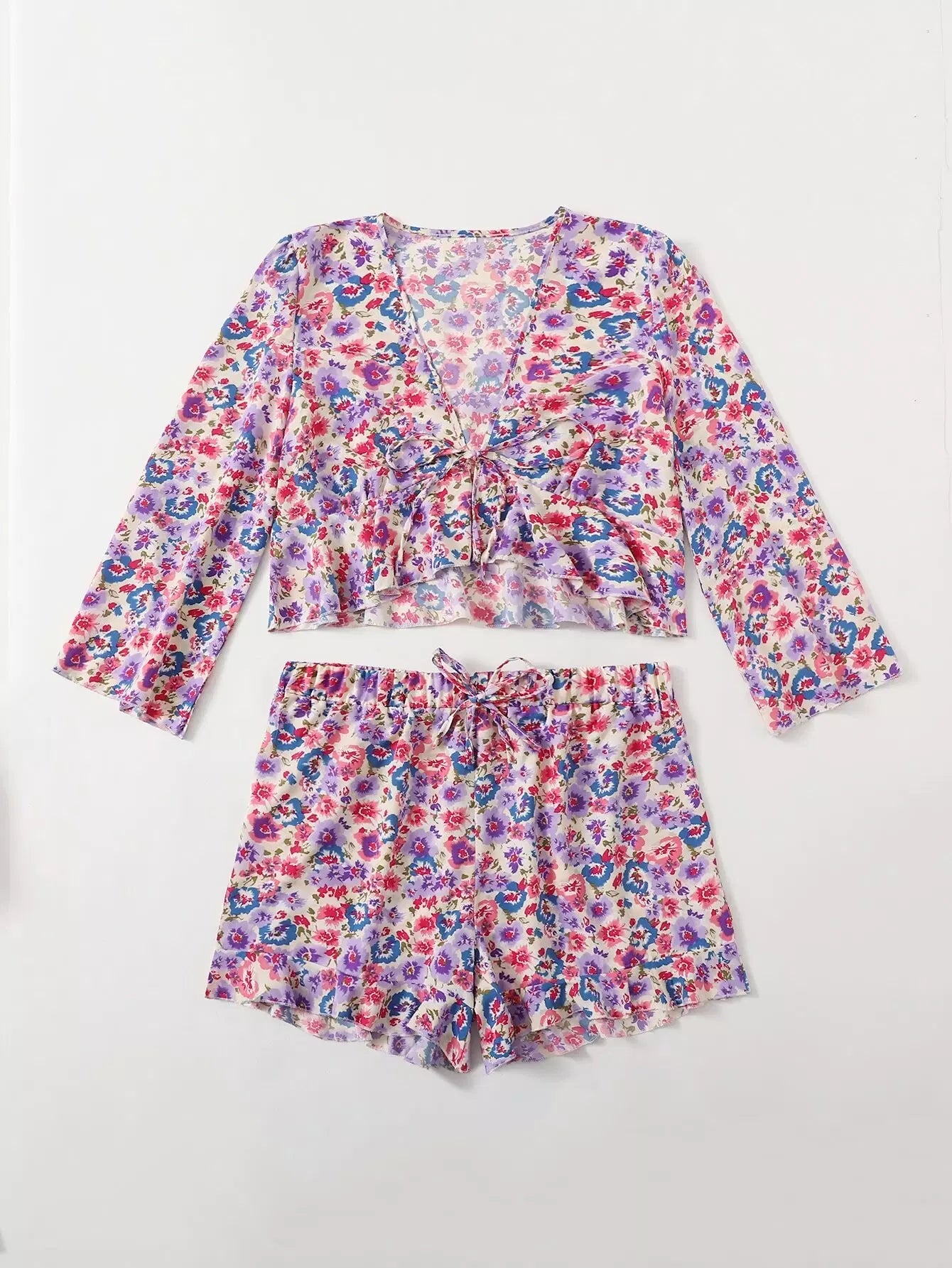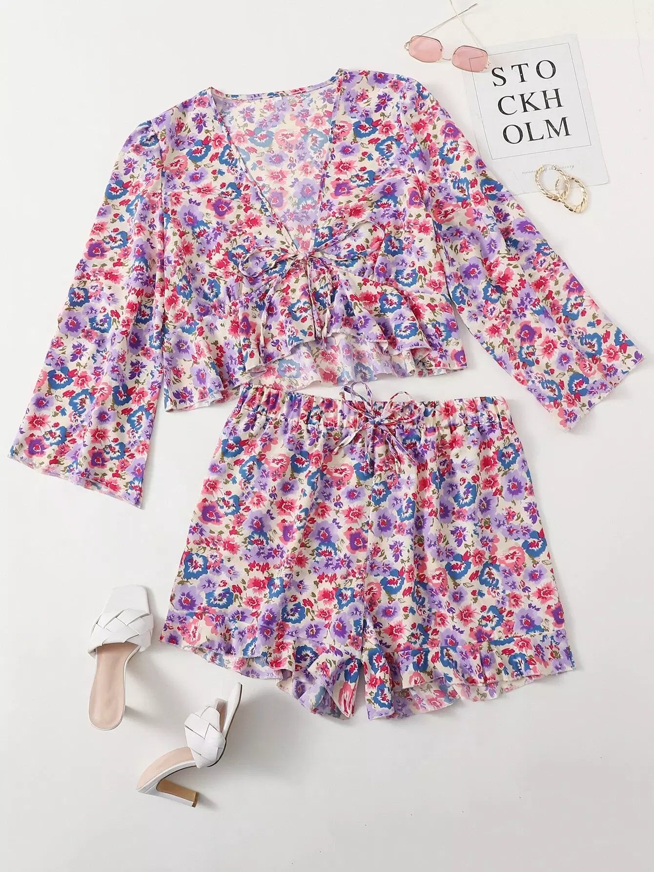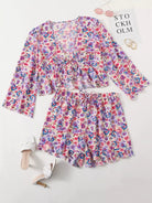 Women - Plus Allover Floral Print Tie Front Top & Shorts