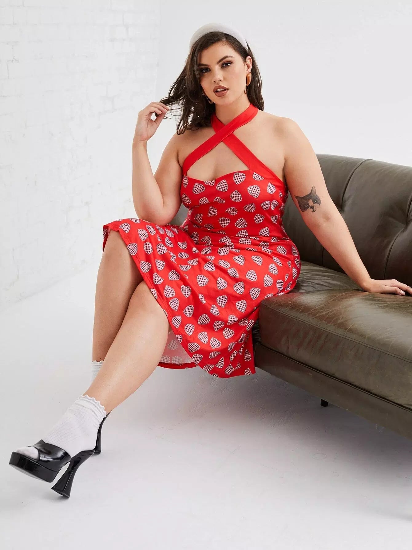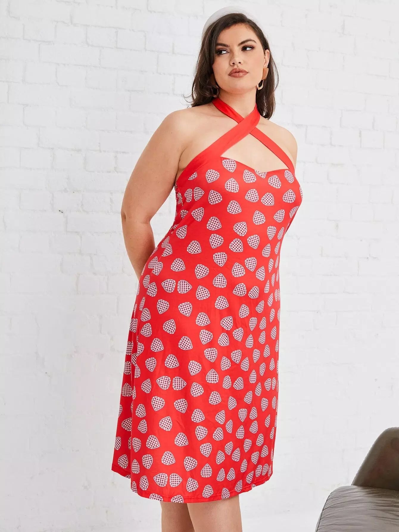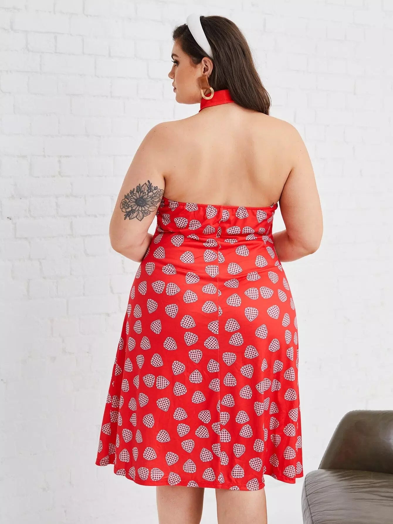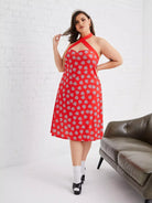 Plus Allover Heart Backless Halter Dress