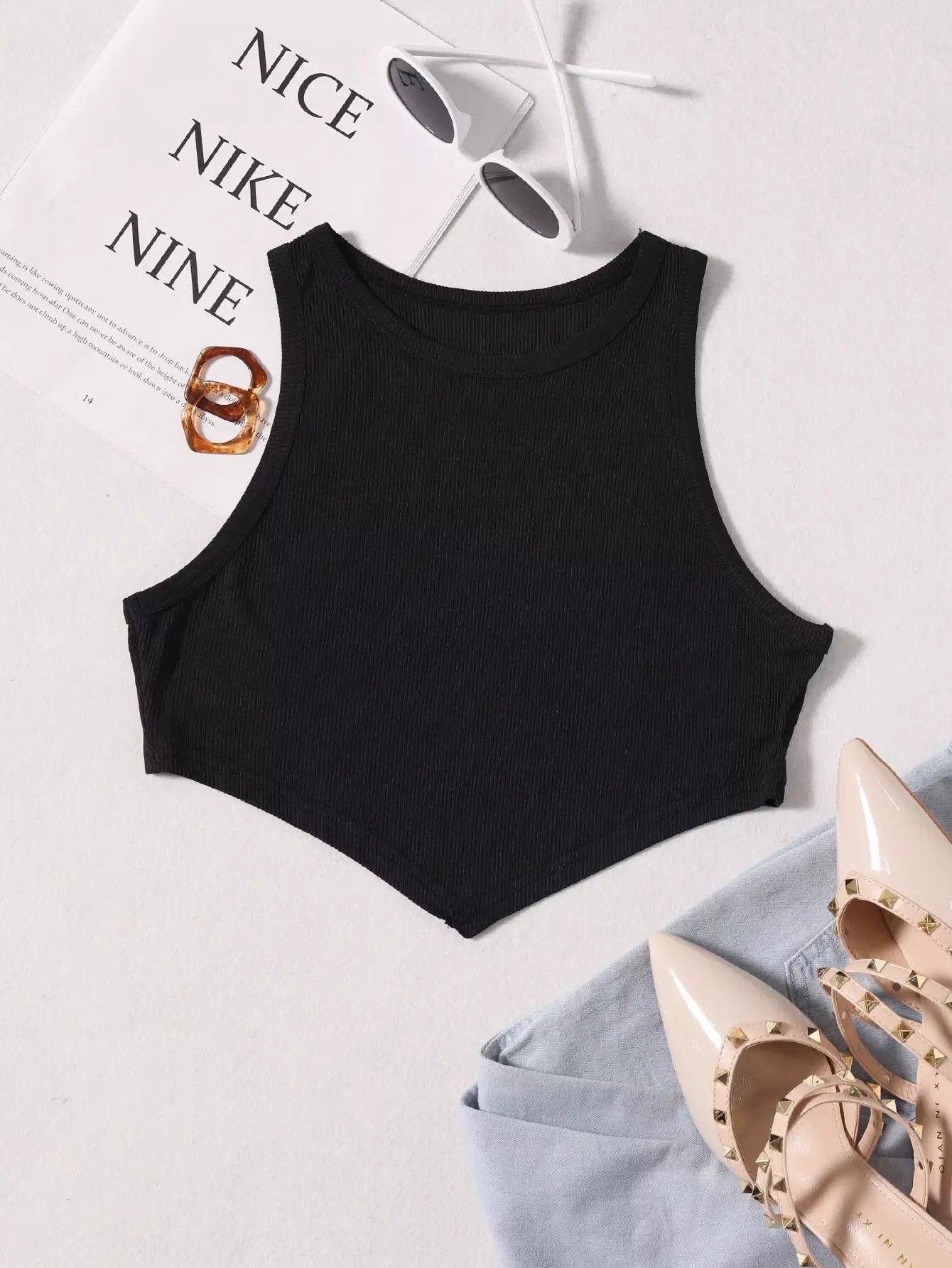 Plus Asymmetrical Hem Solid Crop Tank Top