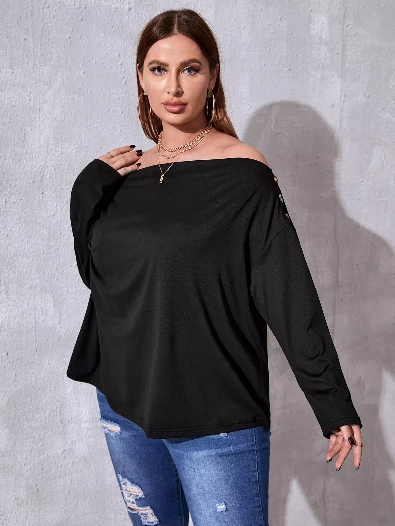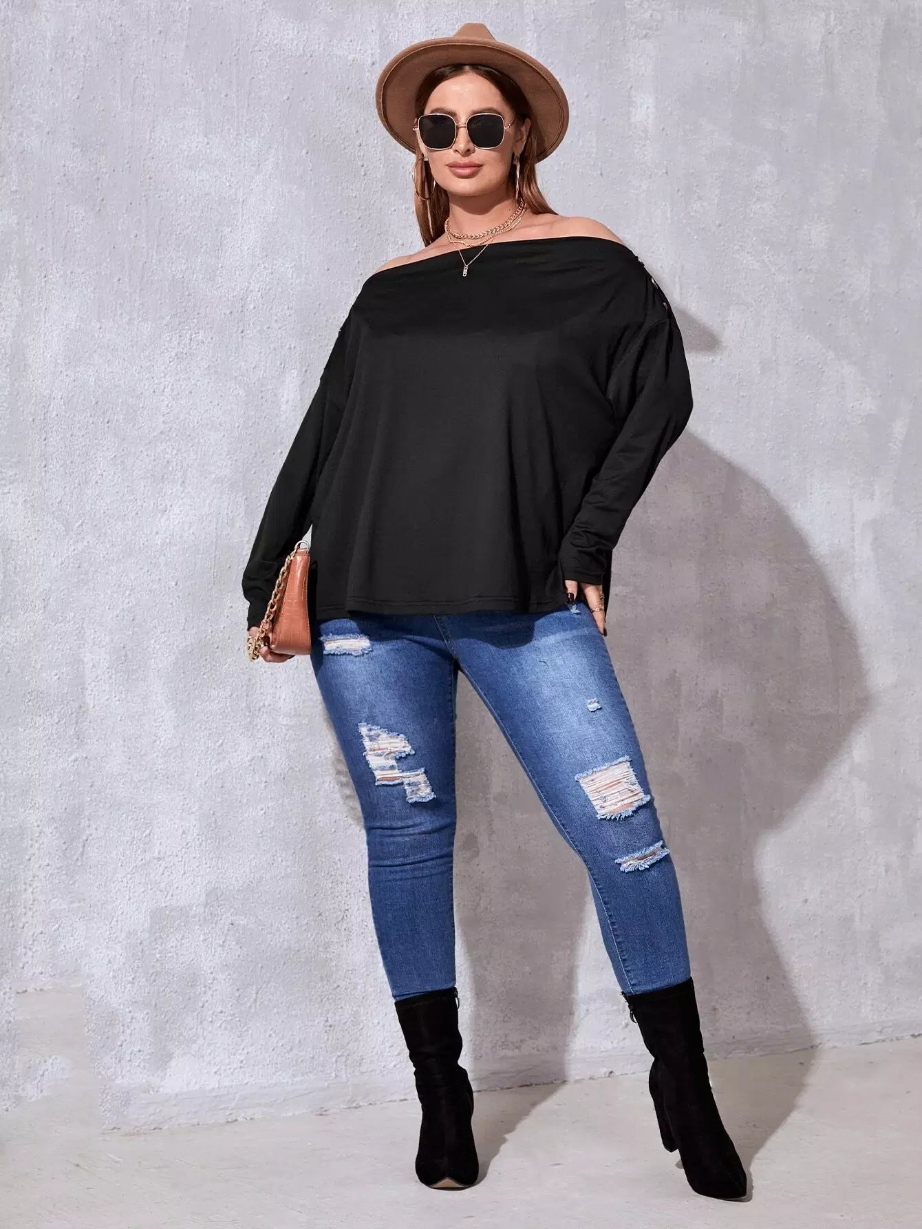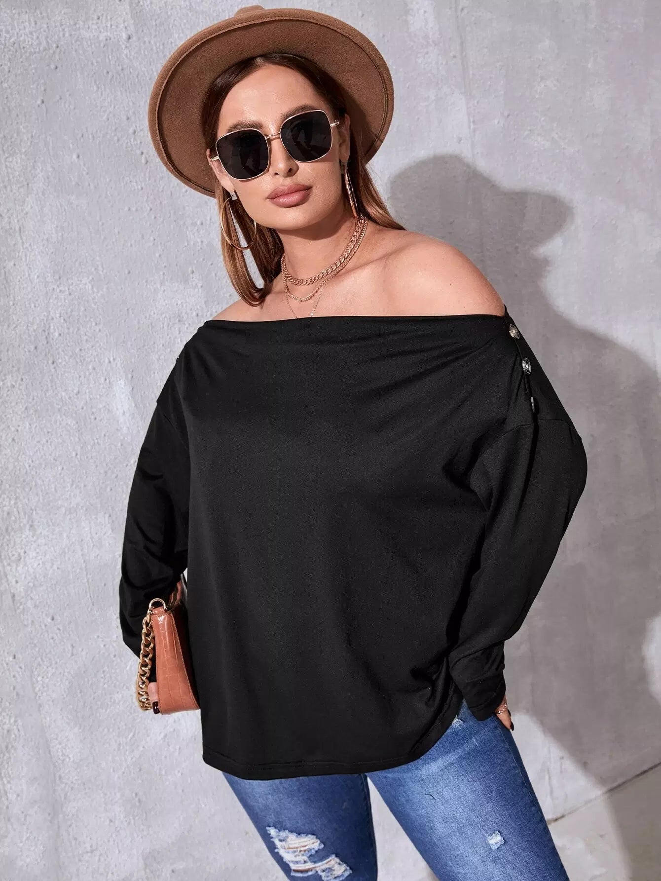 Plus Asymmetrical Neck Drop Shoulder Tee