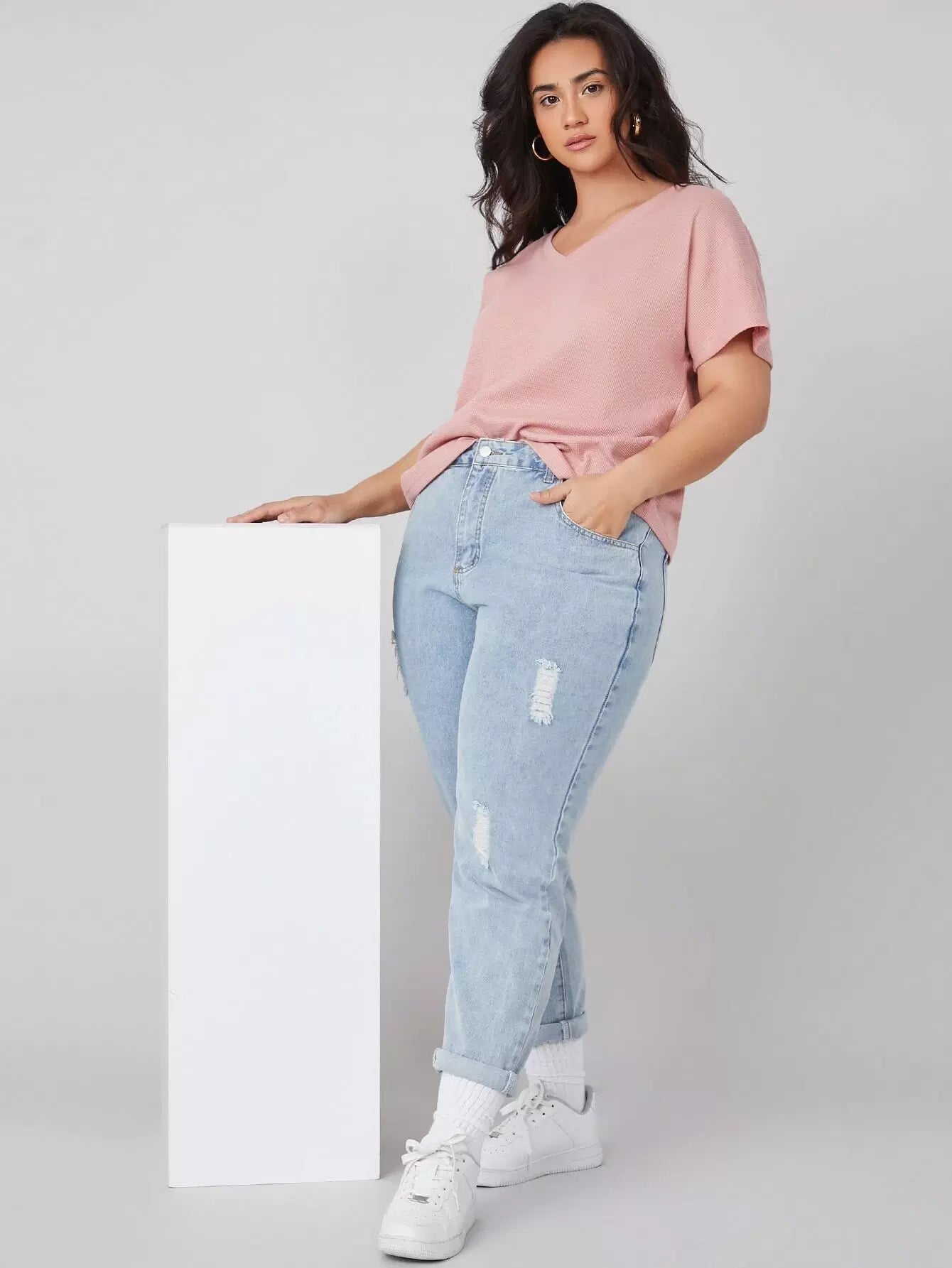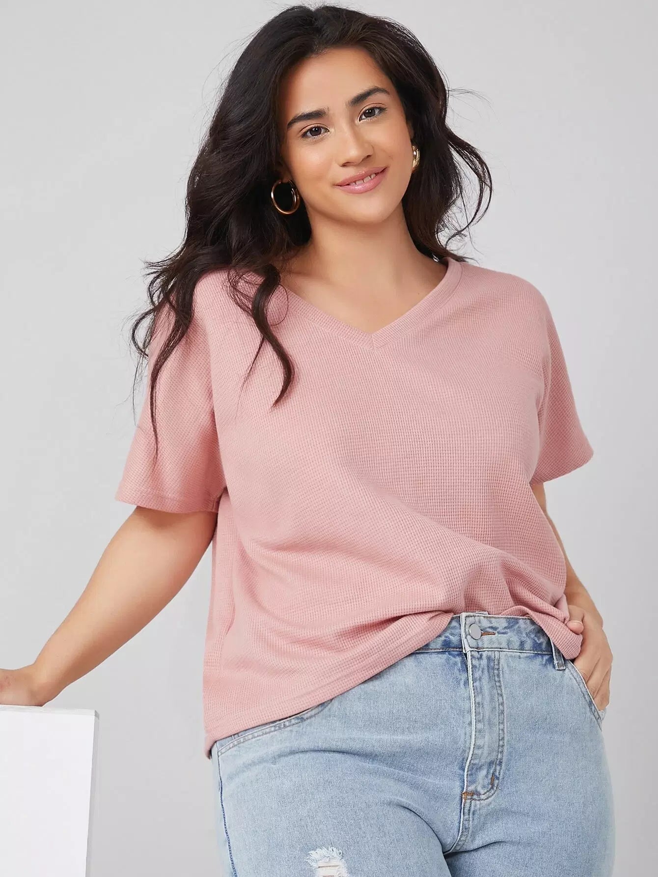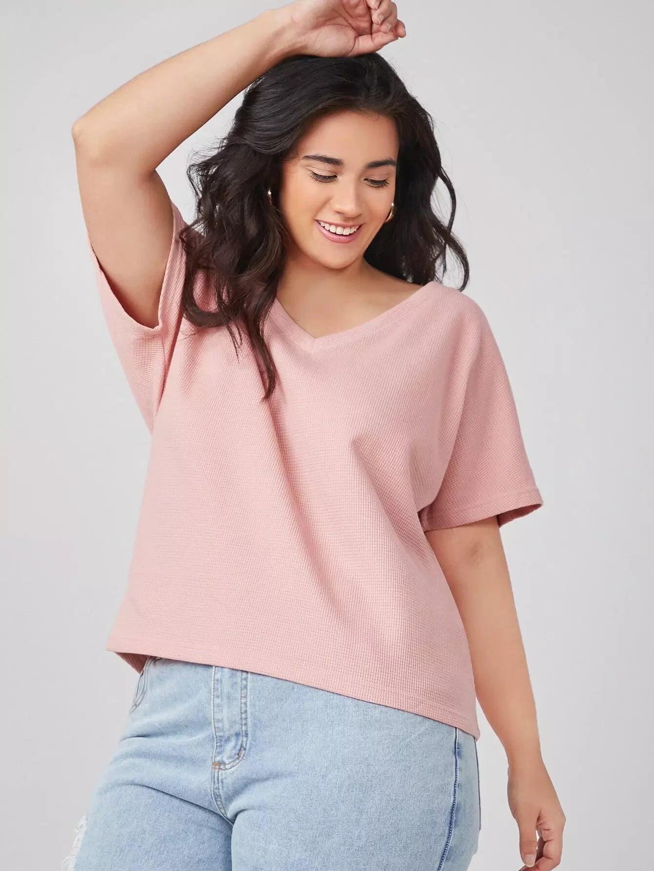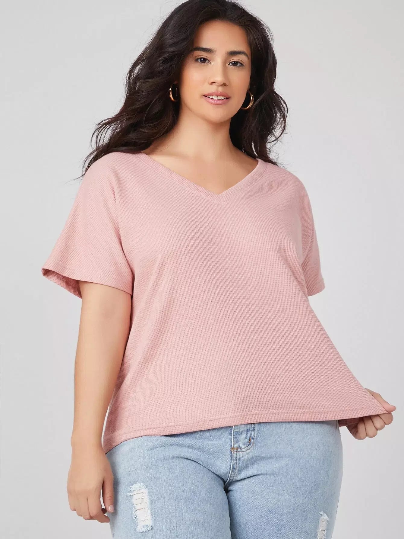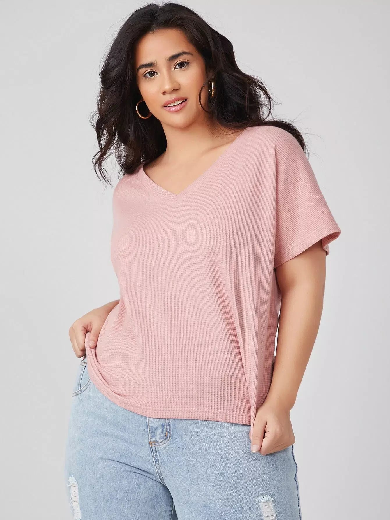 Women - Plus Batwing Sleeve Waffle Knit Tee