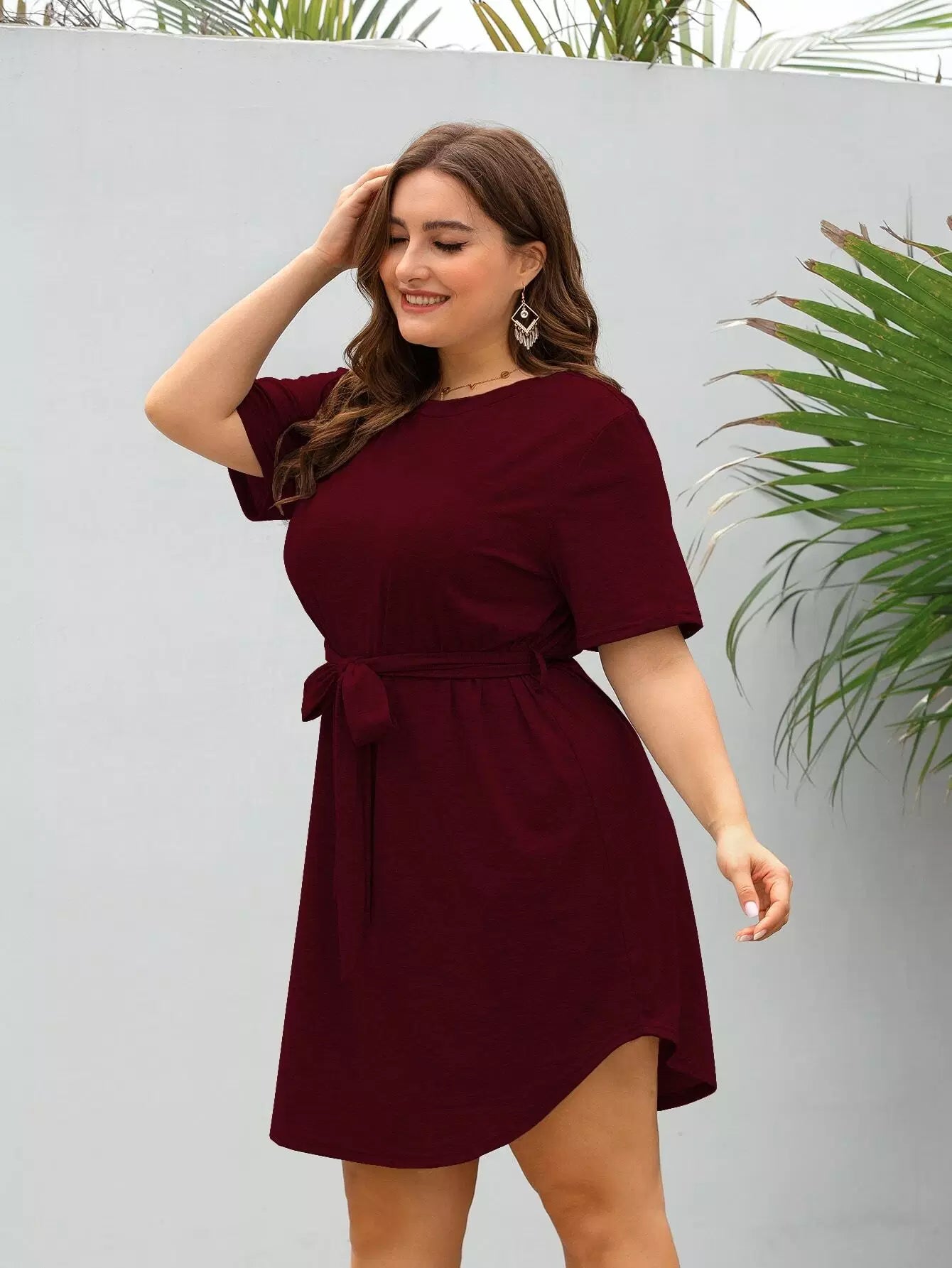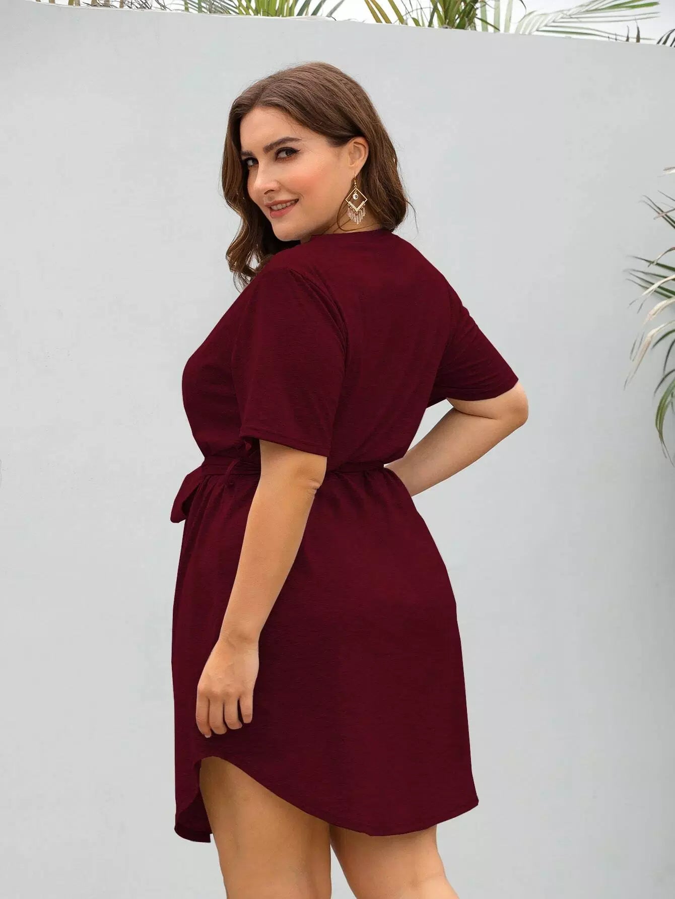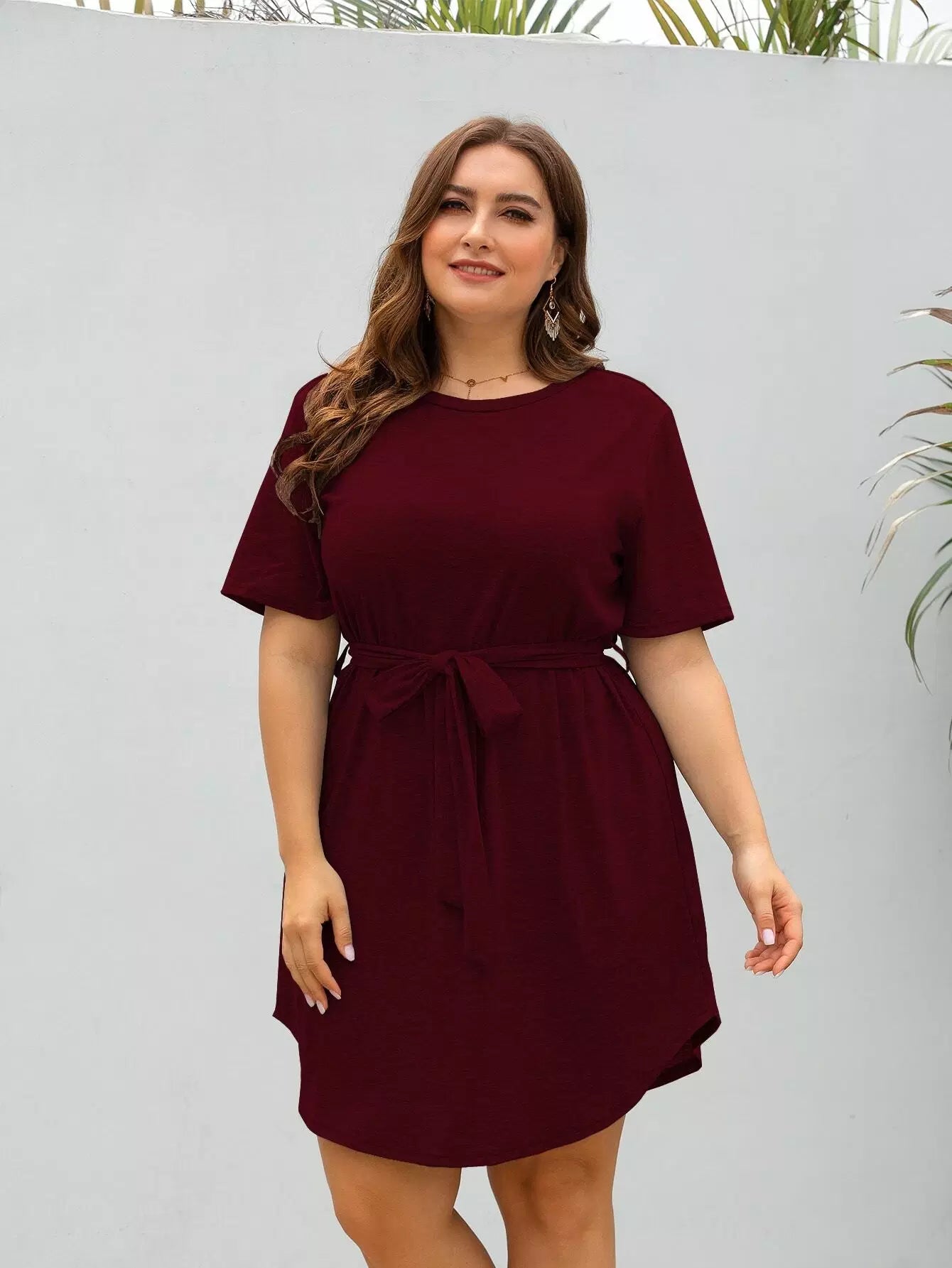 Plus Short Sleeve Mini Dress Without Belt