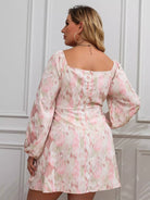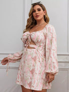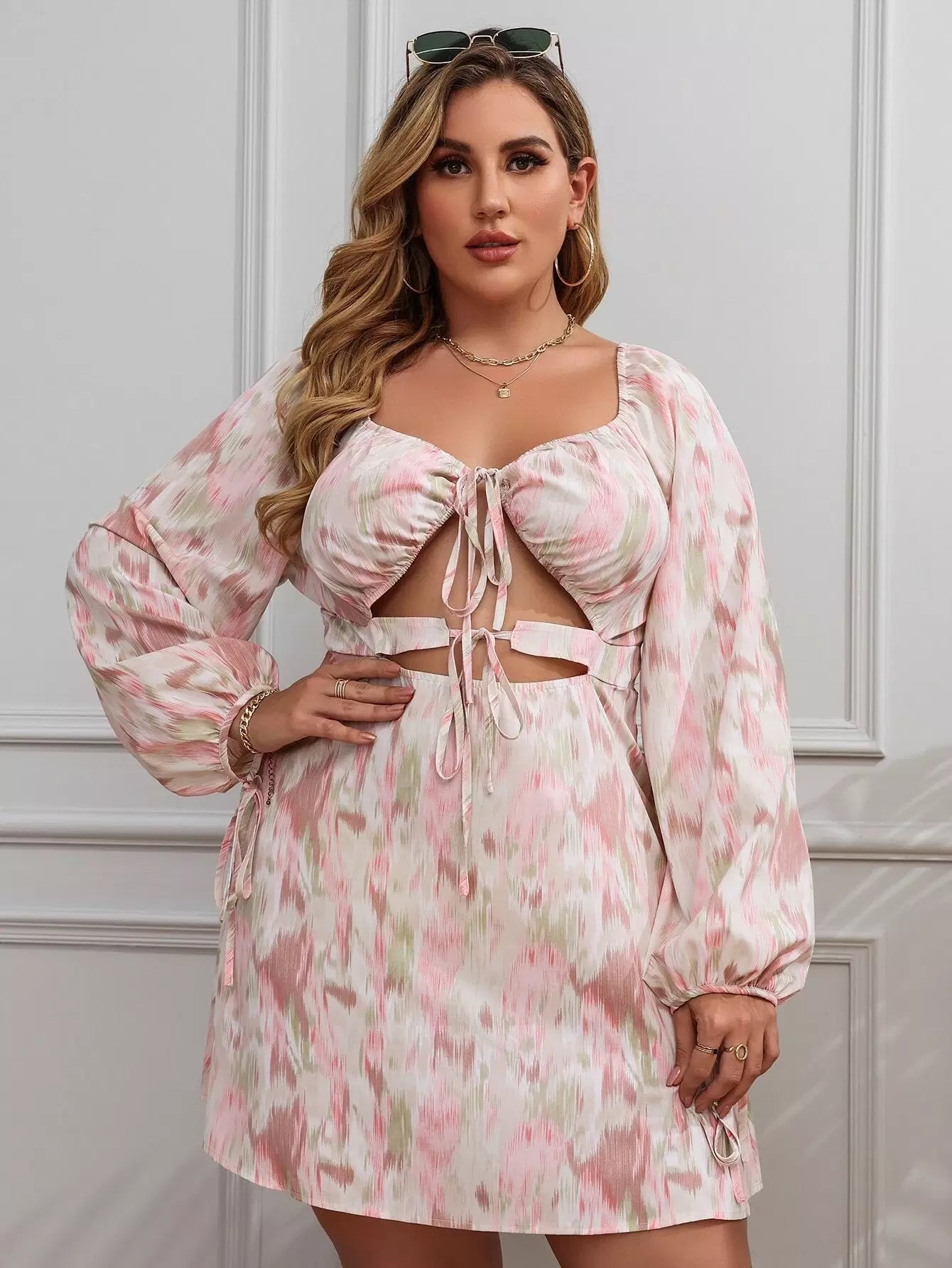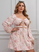 Plus Brush Print Cut Out Knot Front Bishop Sleeve Dress