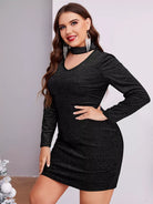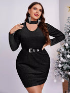 Plus Choker Neck Glitter Bodycon Dress Without Belt