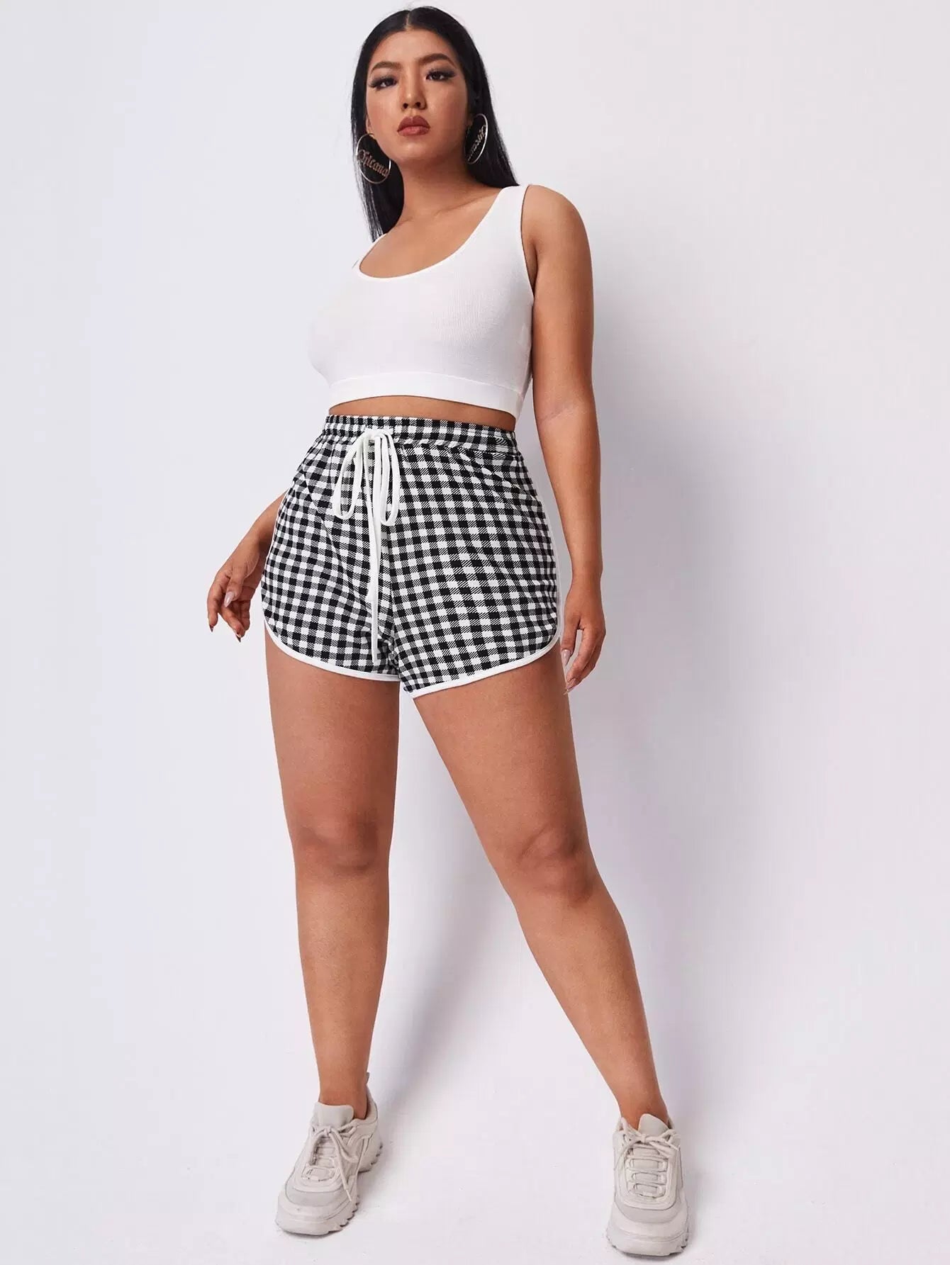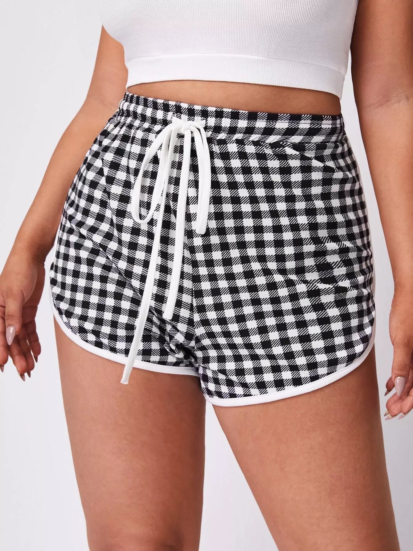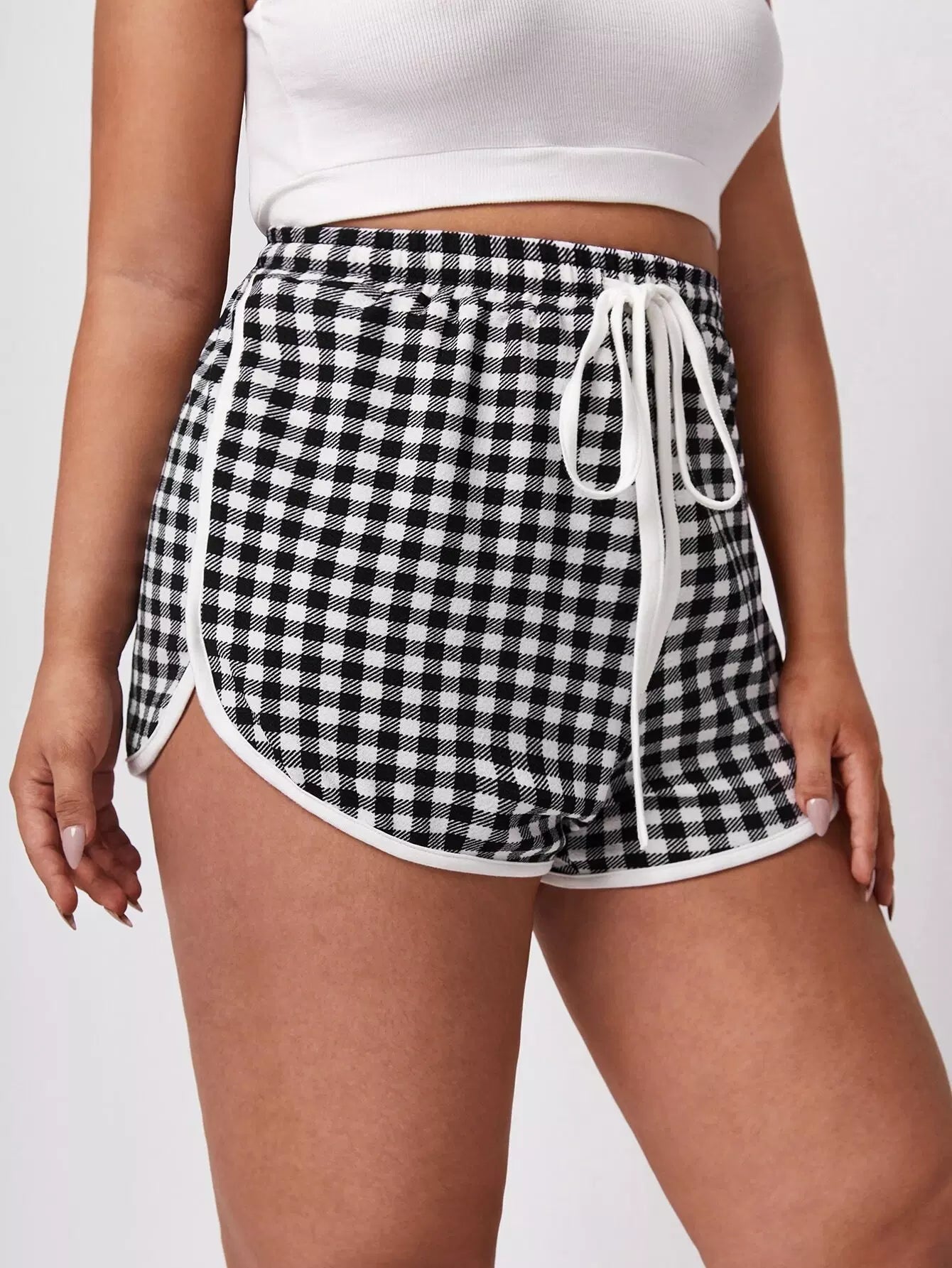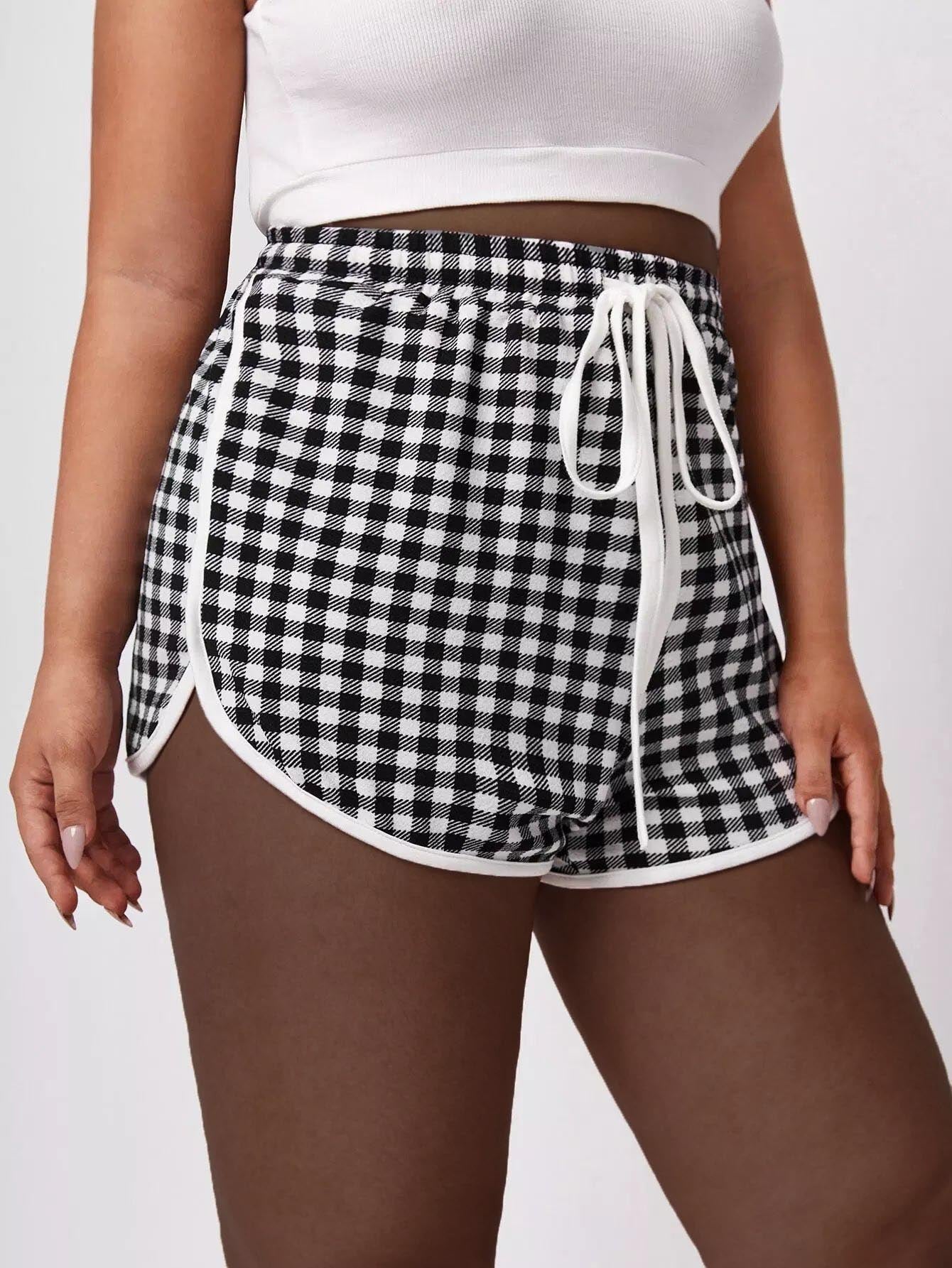 Plus Contrast Binding Gingham Dolphin Shorts