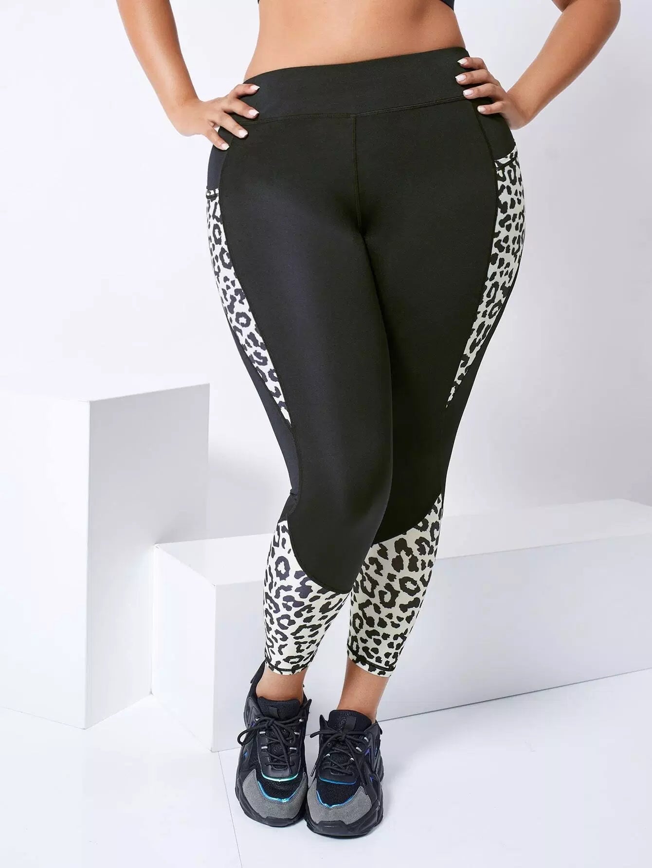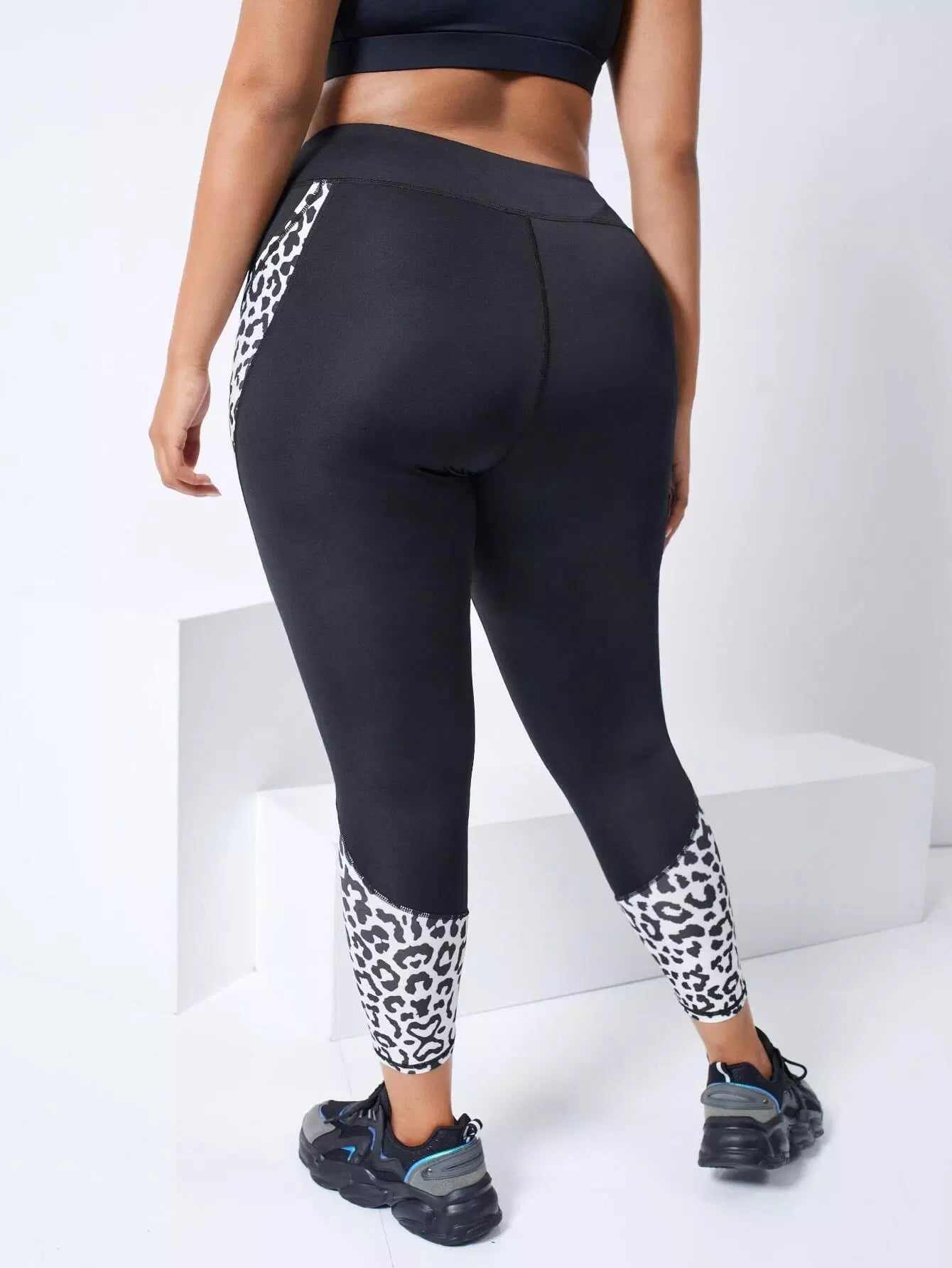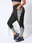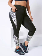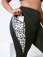 Plus Contrast Leopard Crop Sports Leggings With Phone Pocket