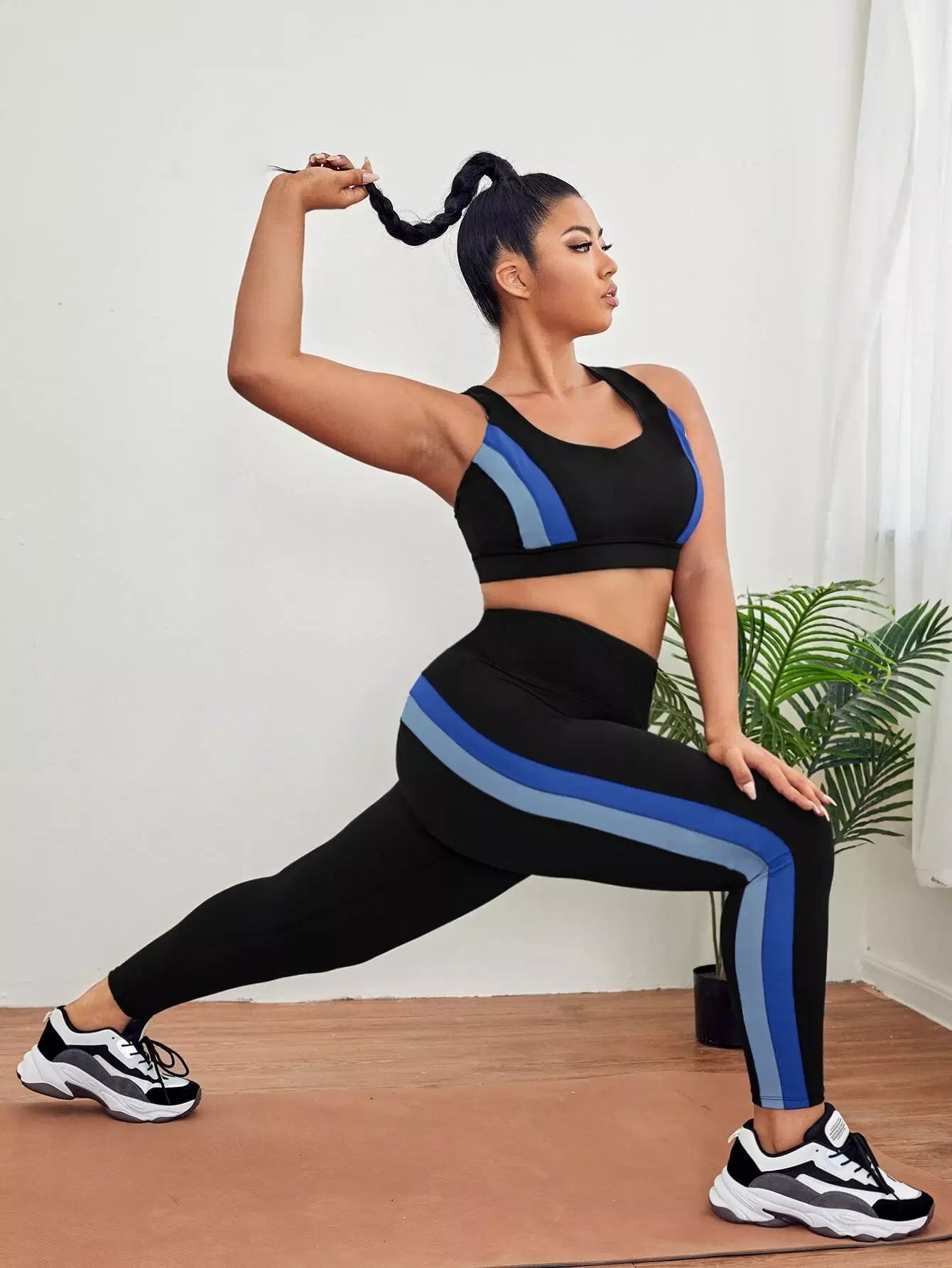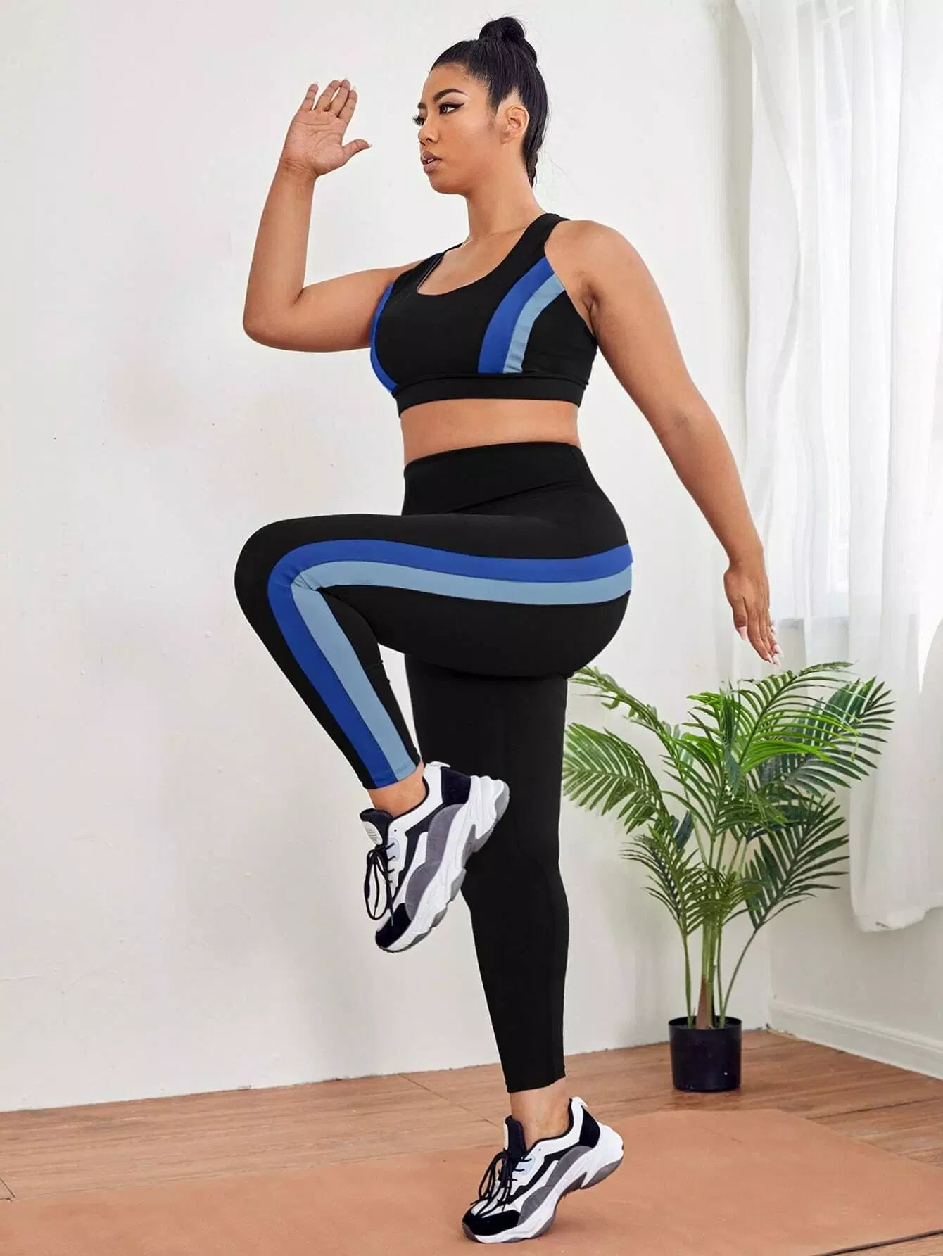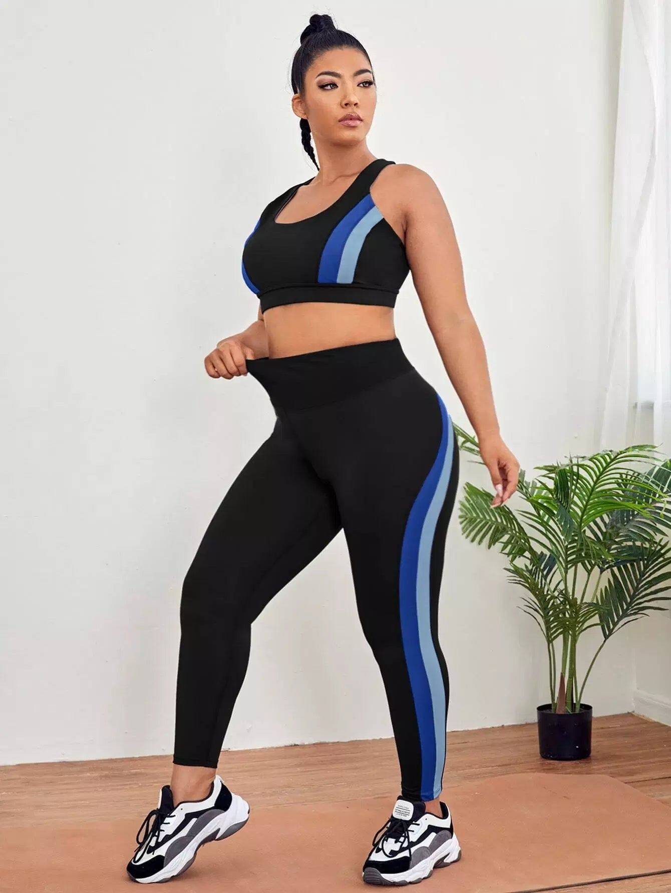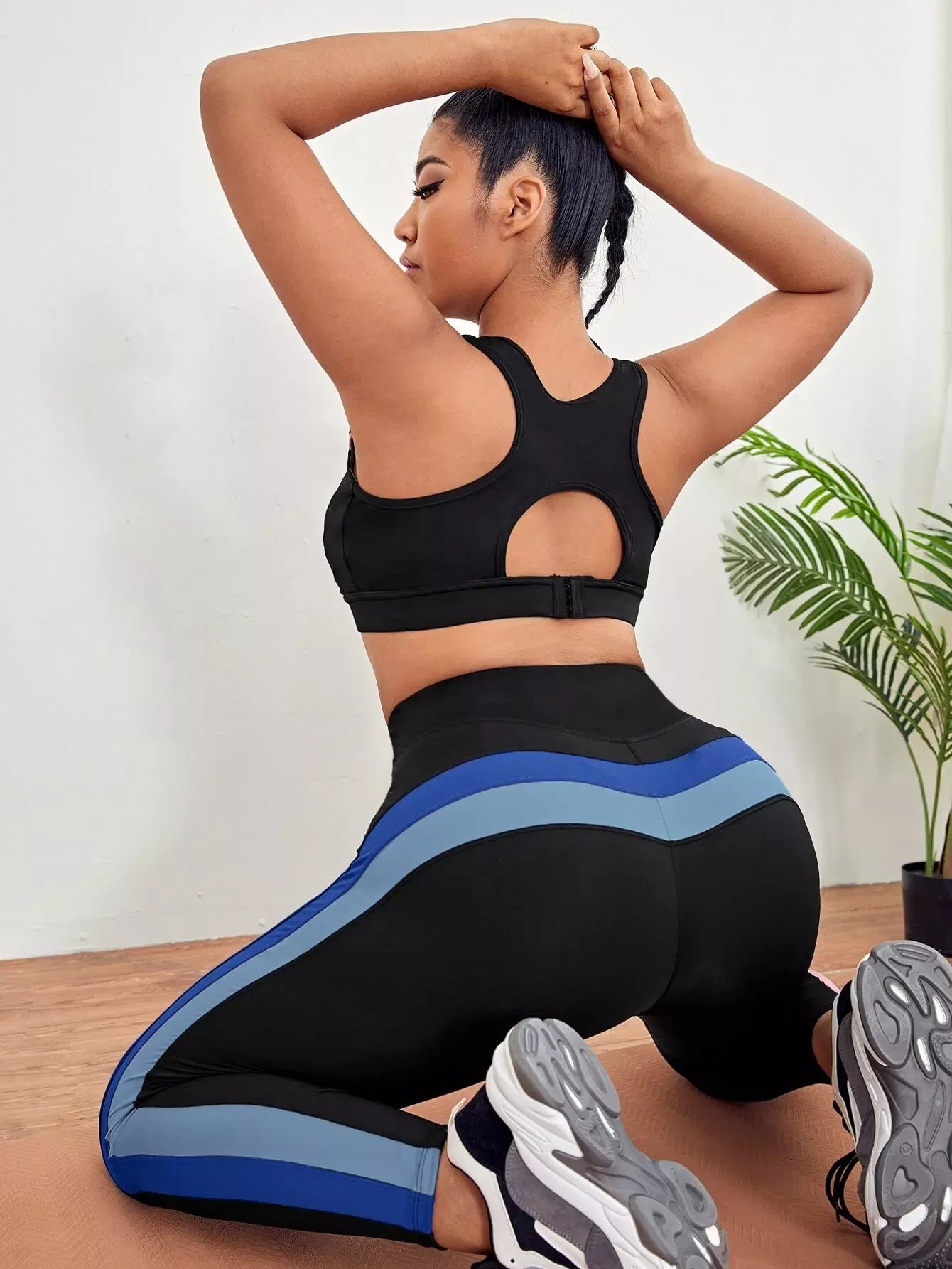 Plus Contrast Panel Cut Out Sports Bra & Leggings