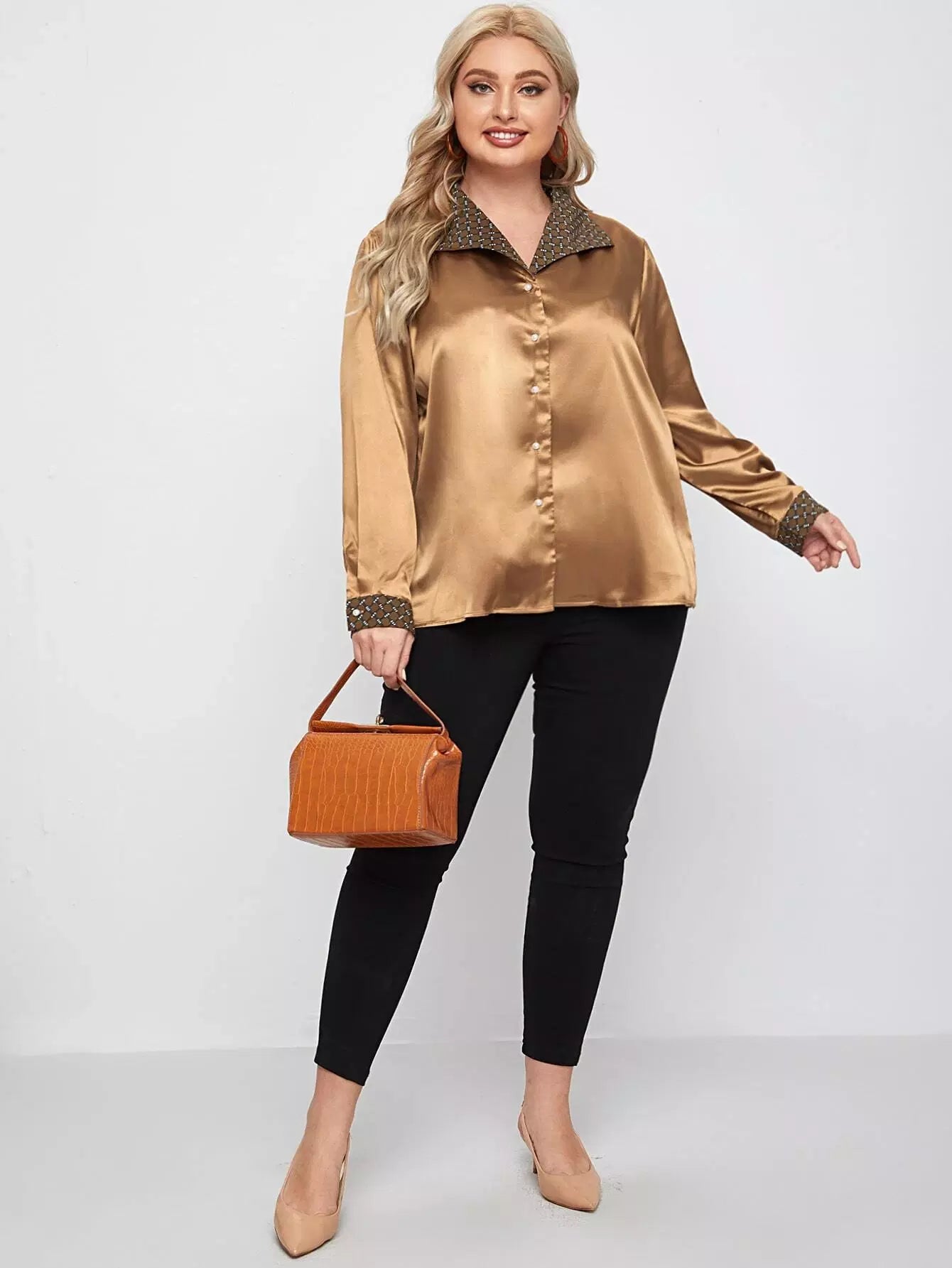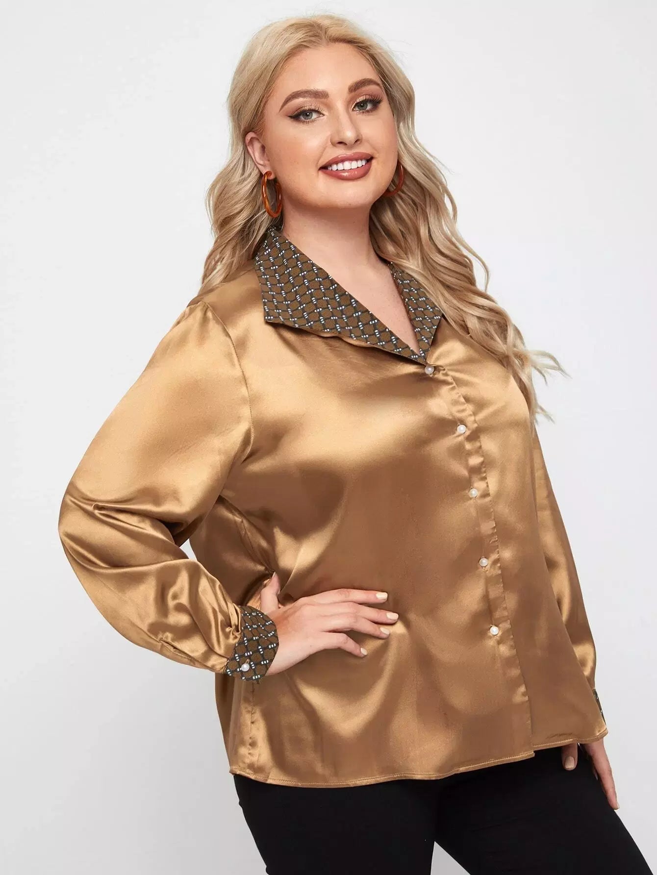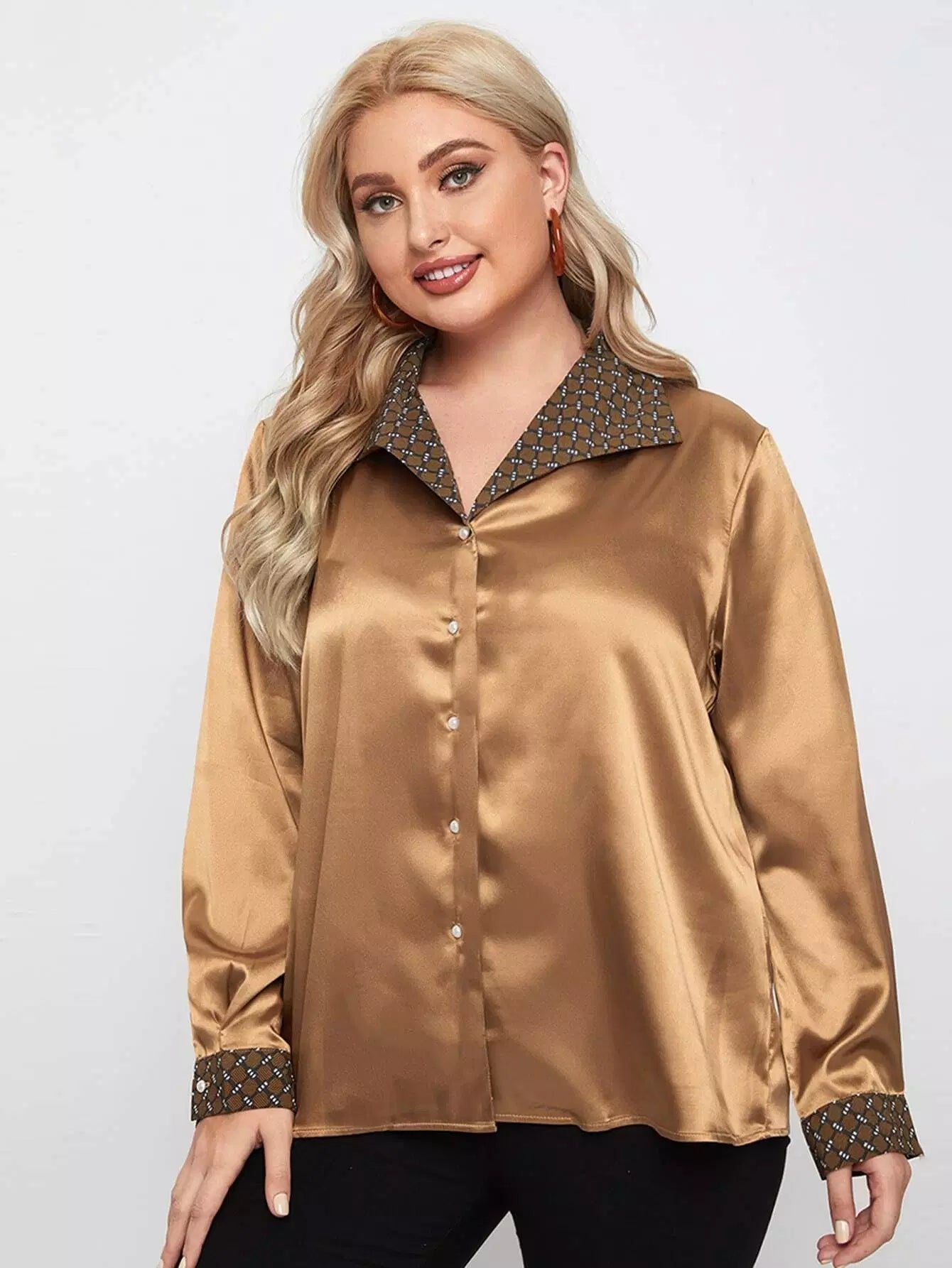 Women - Plus Contrast Plaid Button Up Shirt