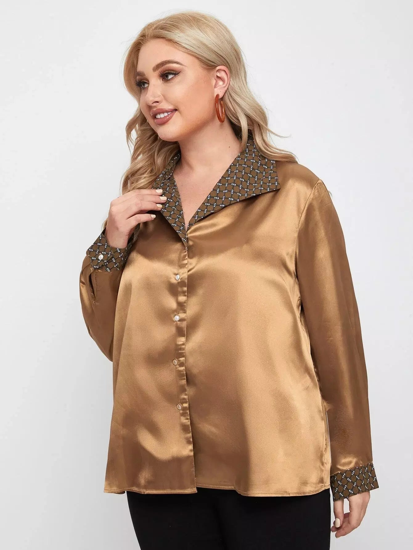 Plus Contrast Plaid Button Up Shirt