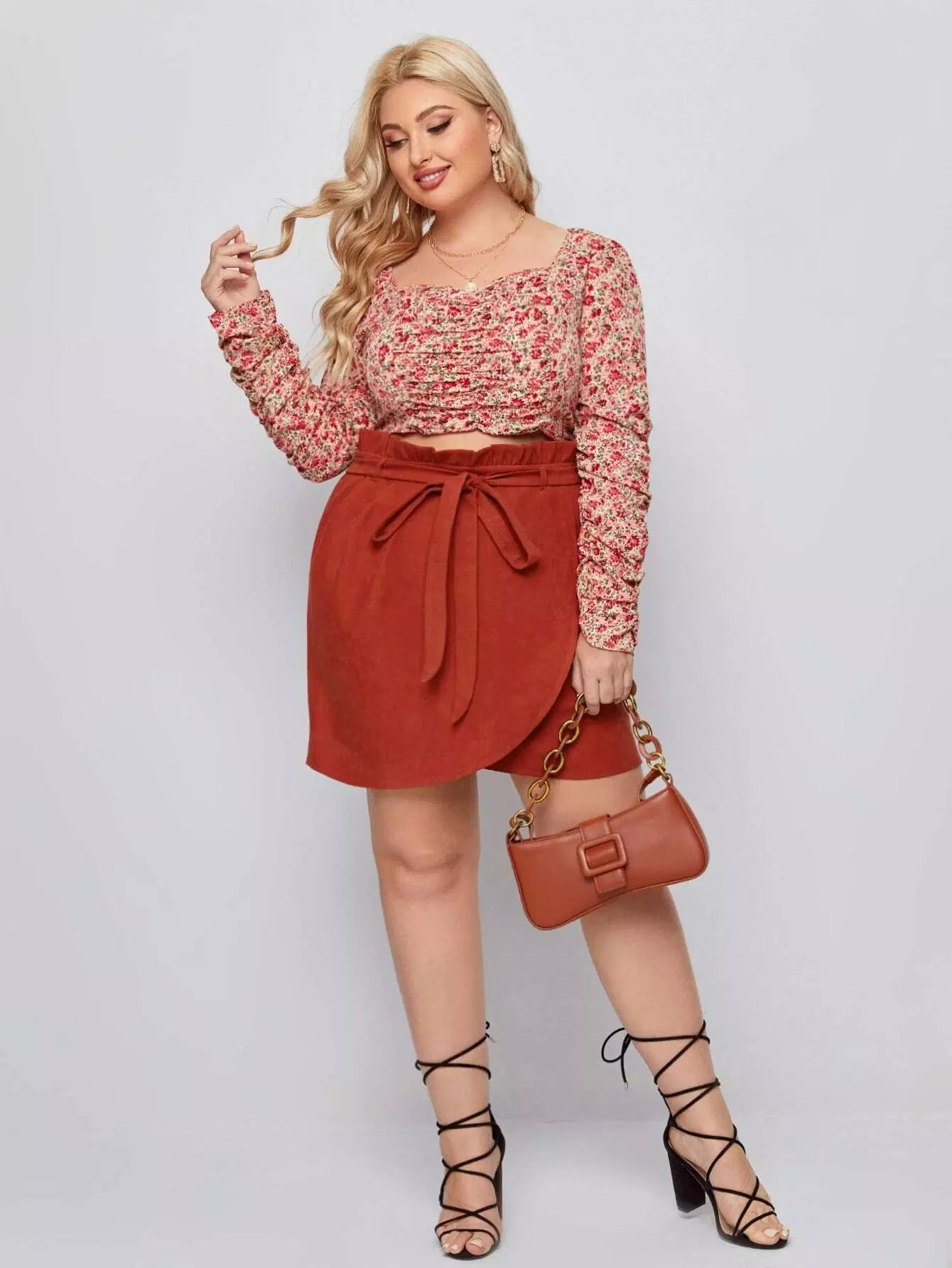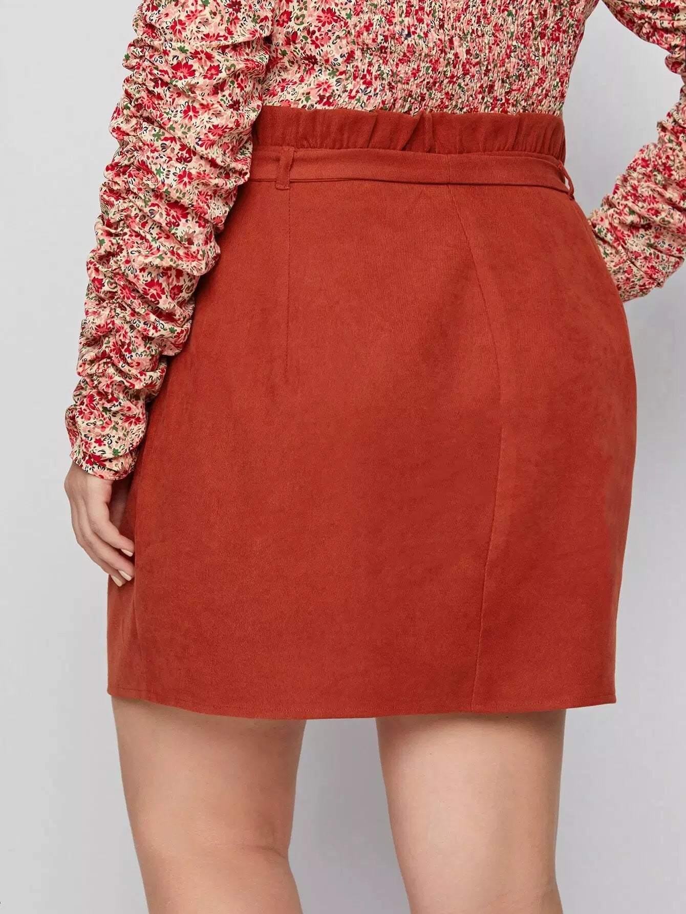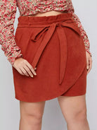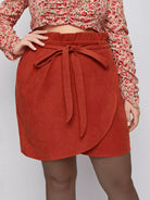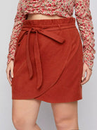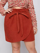 Plus Corduroy Paper Bag Waist Tulip Hem Skirt Without Belt