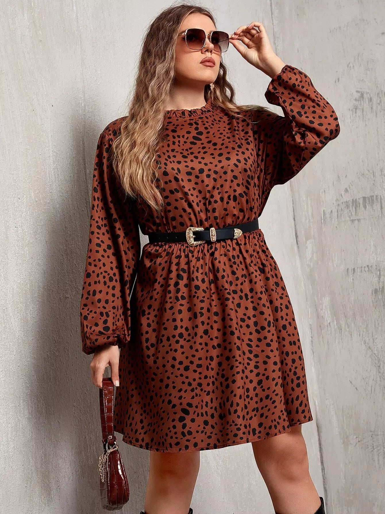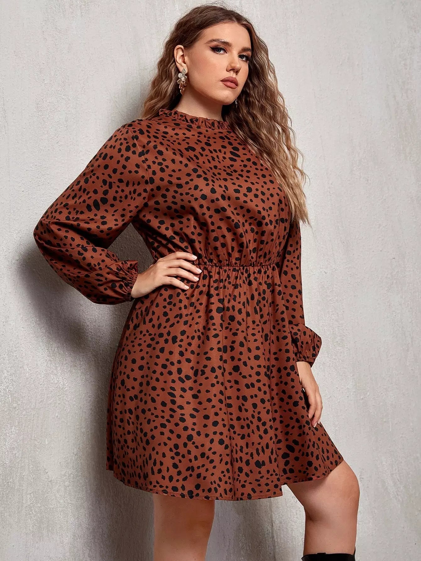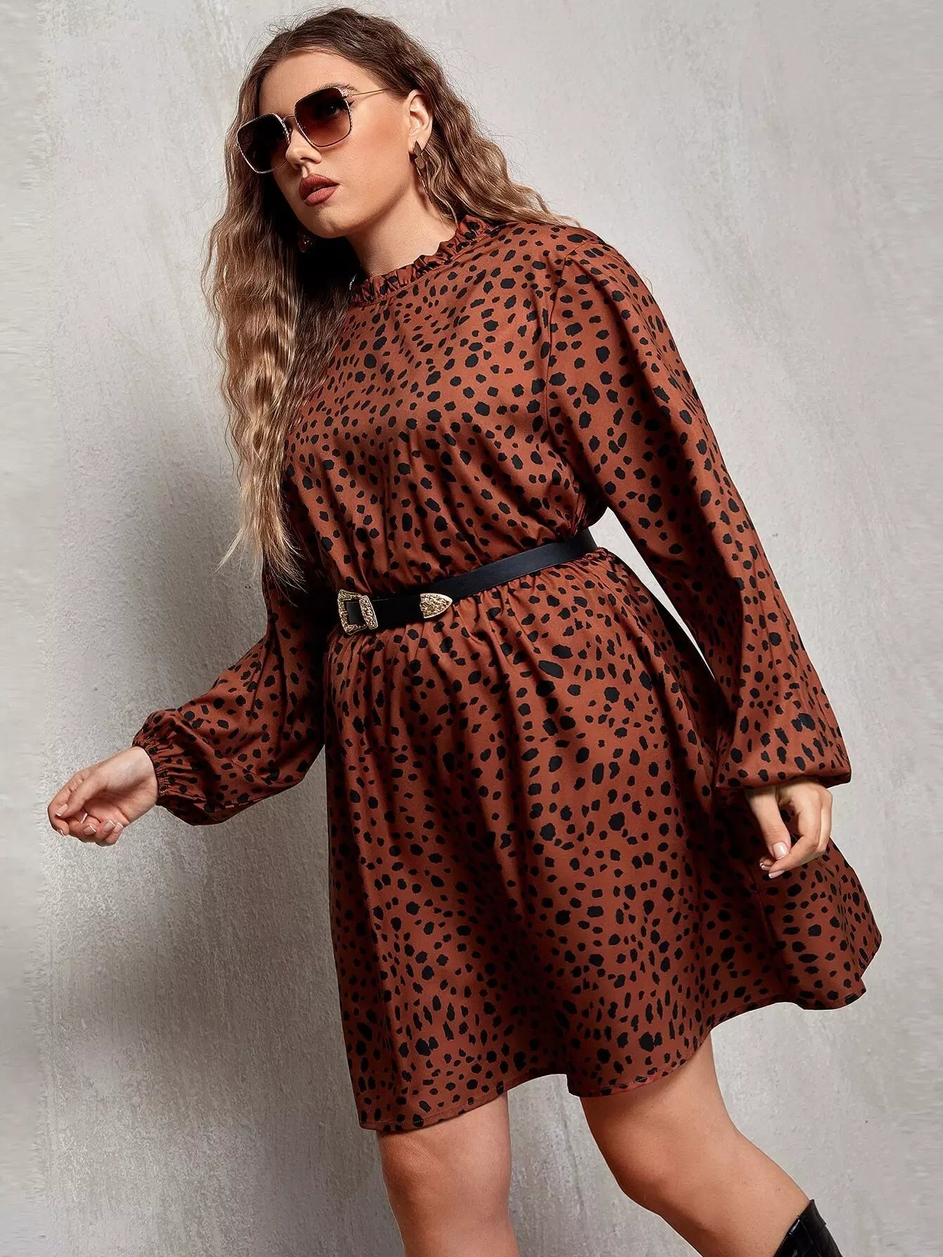 Plus Dalmatian Print A-Line Dress Without Belt