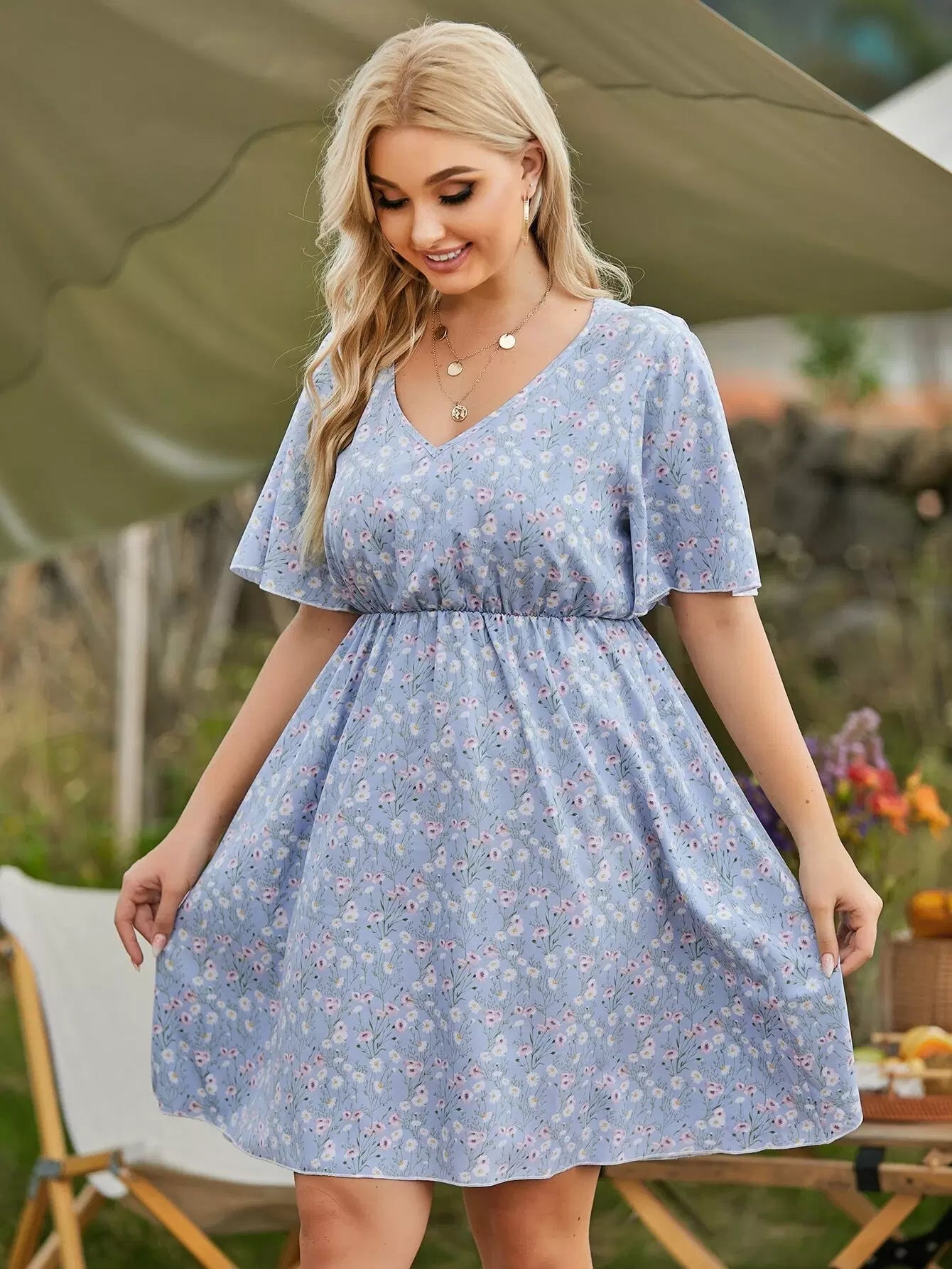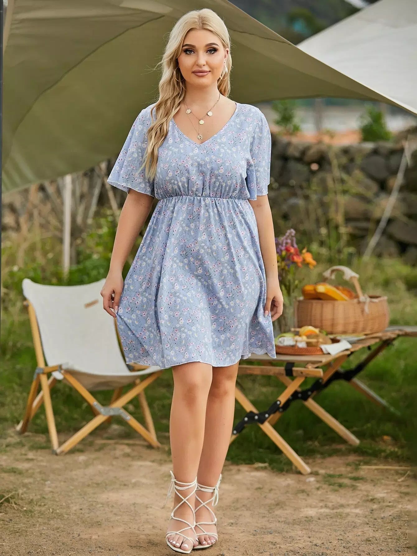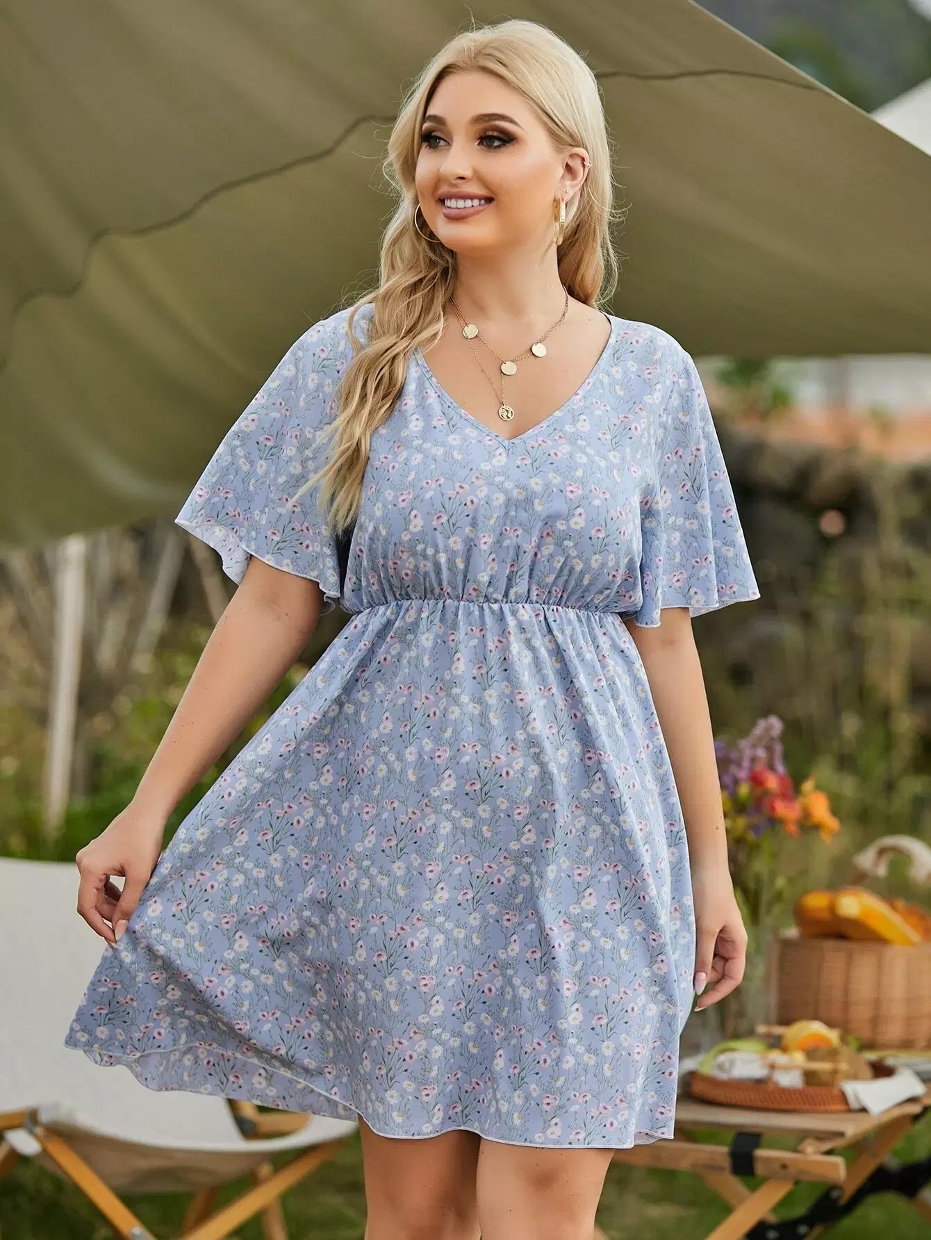 Plus Ditsy Floral Butterfly Sleeve Dress