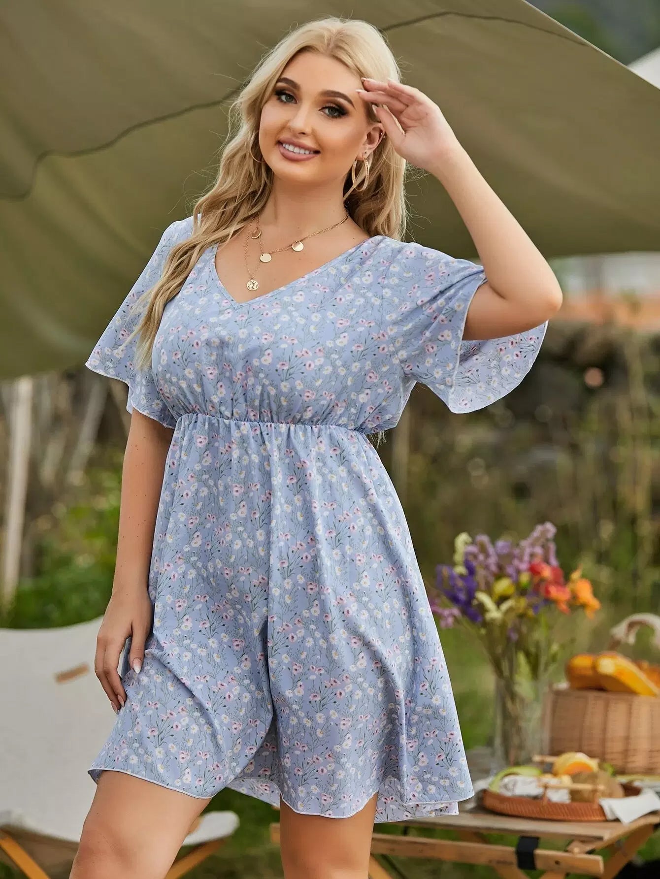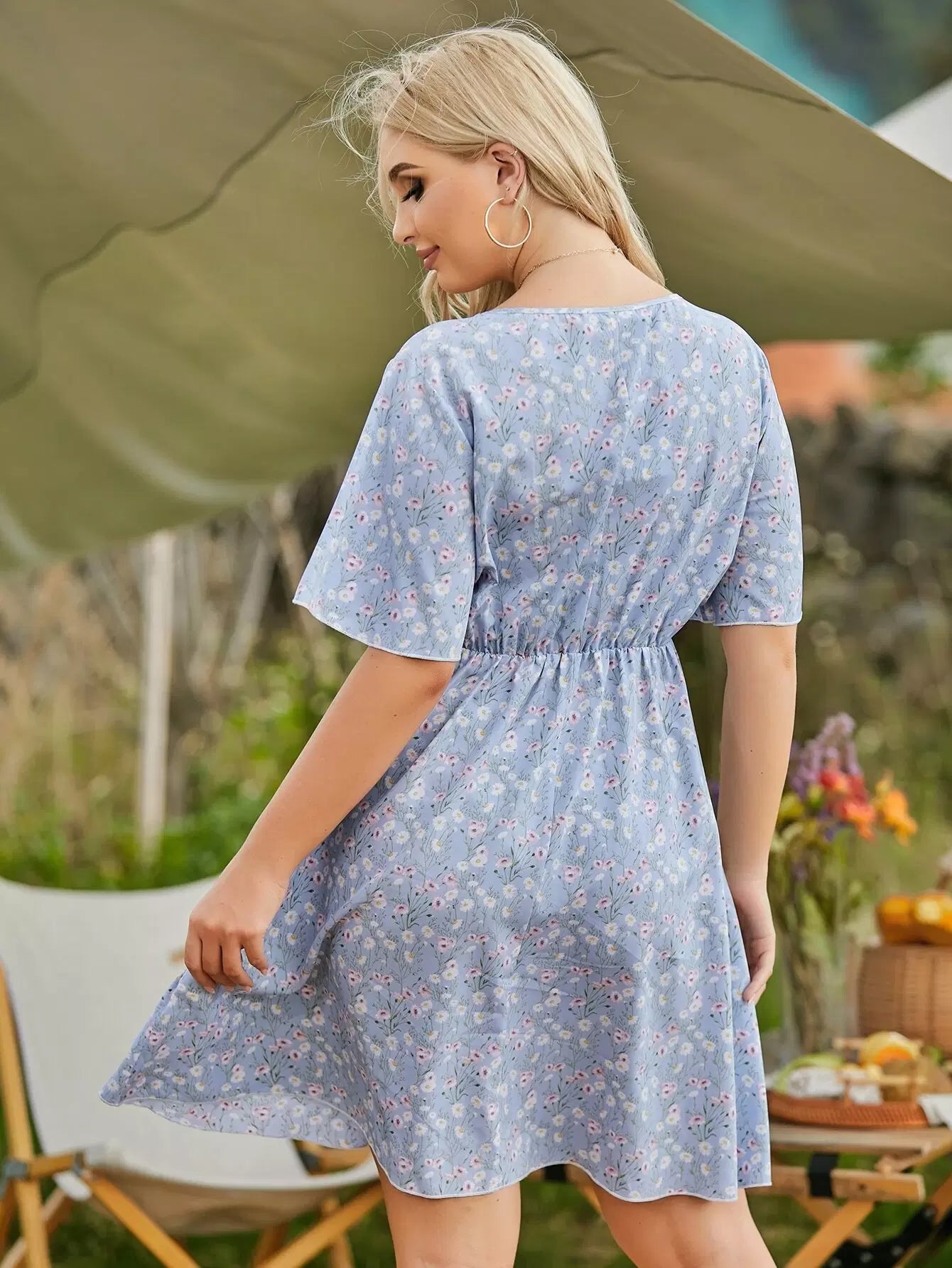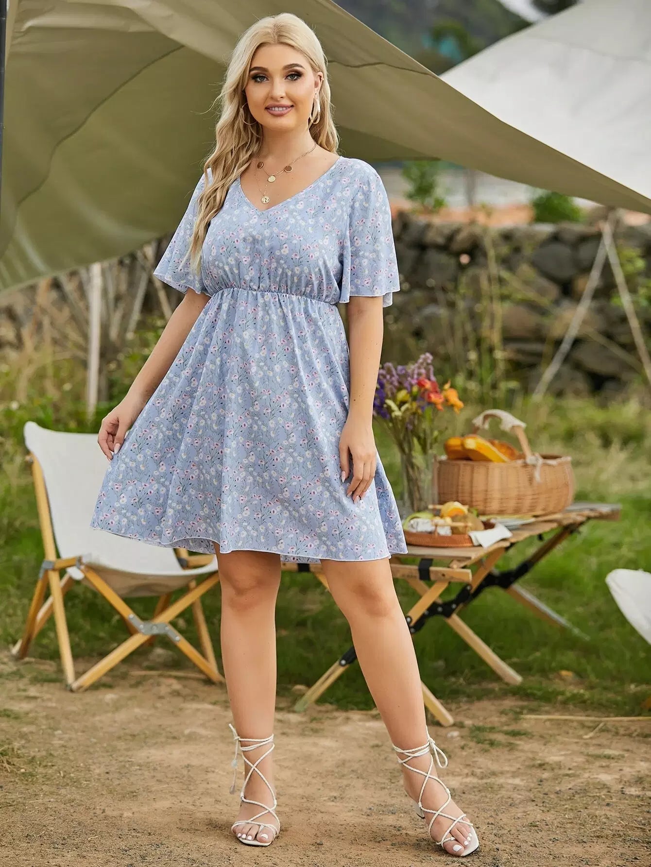 Plus Ditsy Floral Butterfly Sleeve Dress
