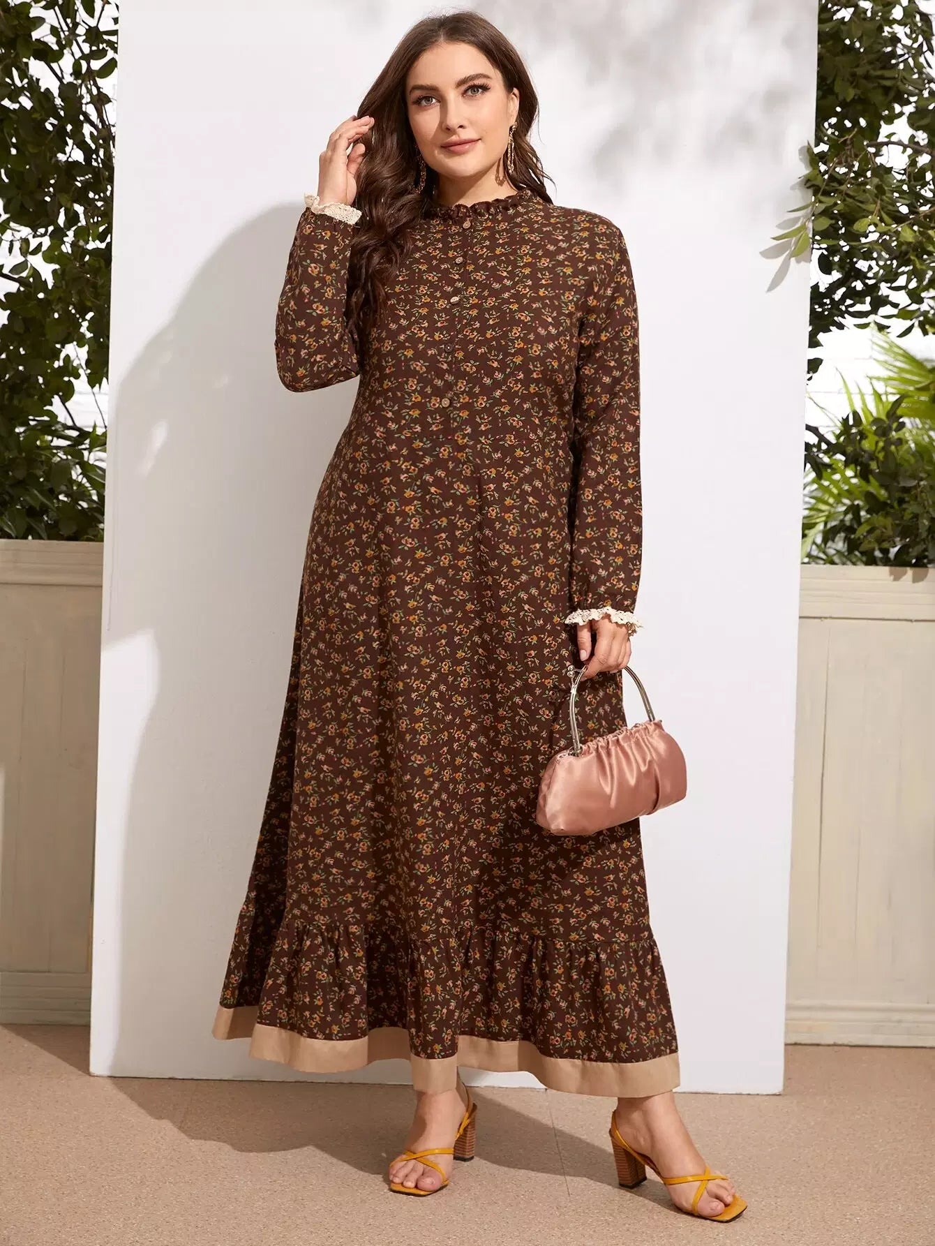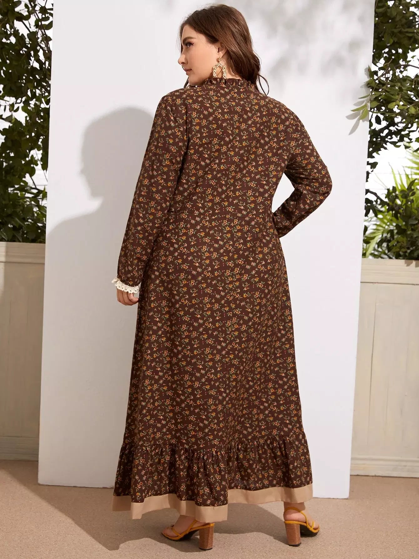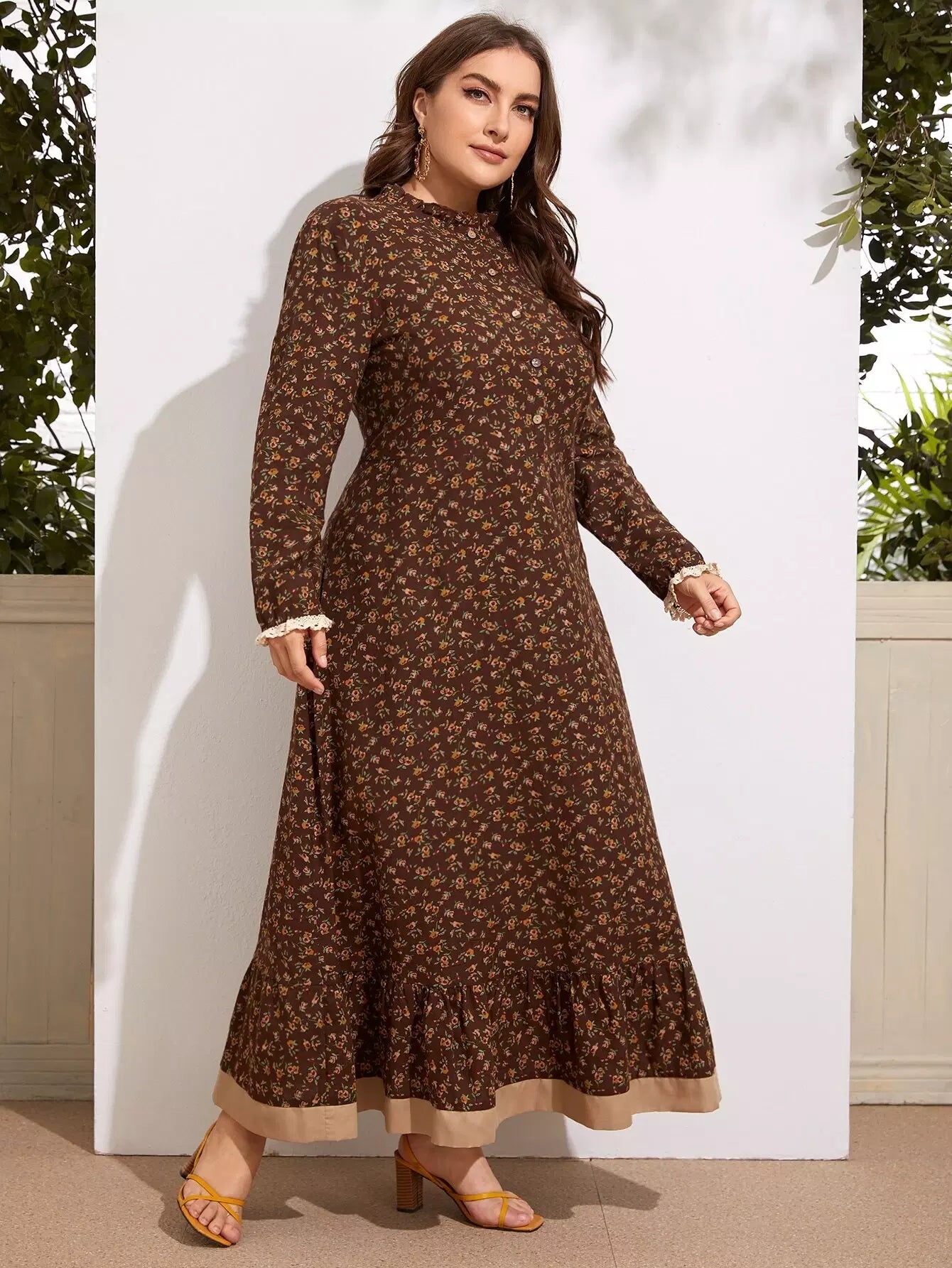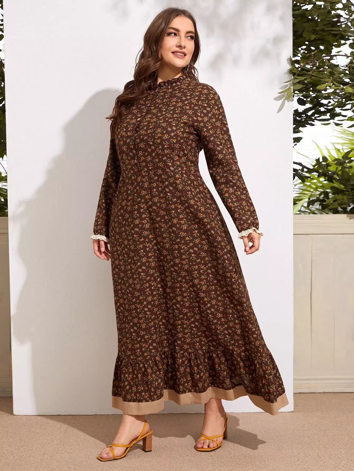 Women - Plus Ditsy Floral Frill Ruffle Hem Dress