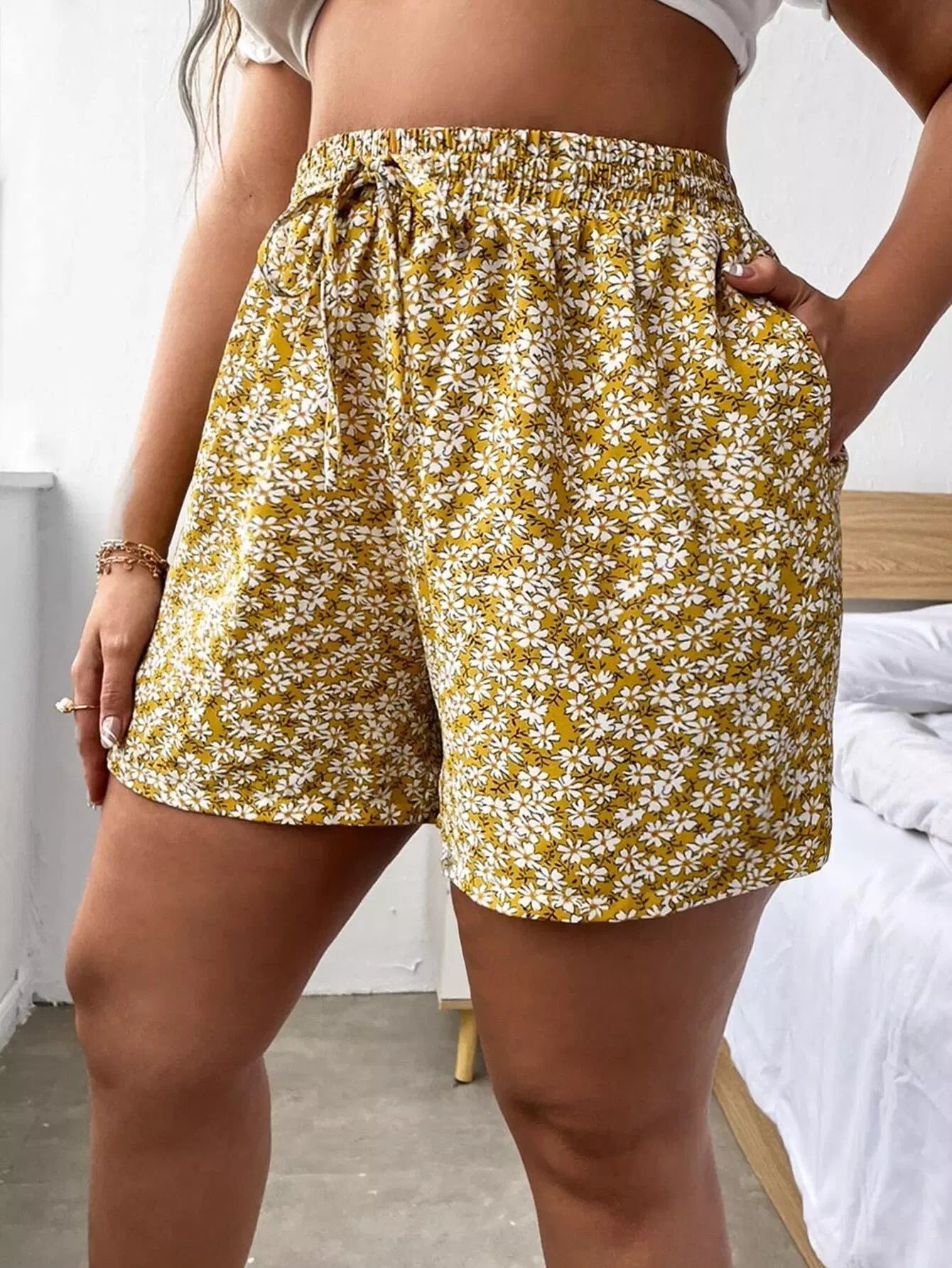 Plus Ditsy Floral Knot Shorts