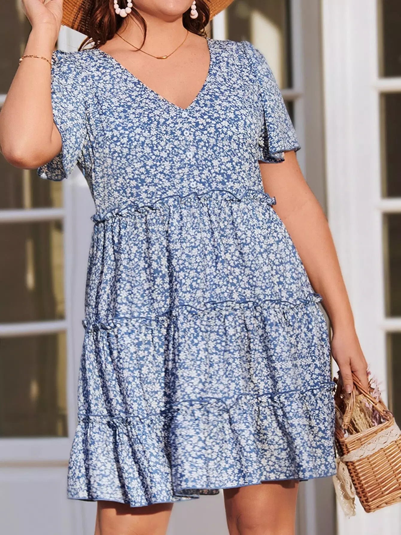 Women - Plus Ditsy Floral Layered Frill Hem Dress