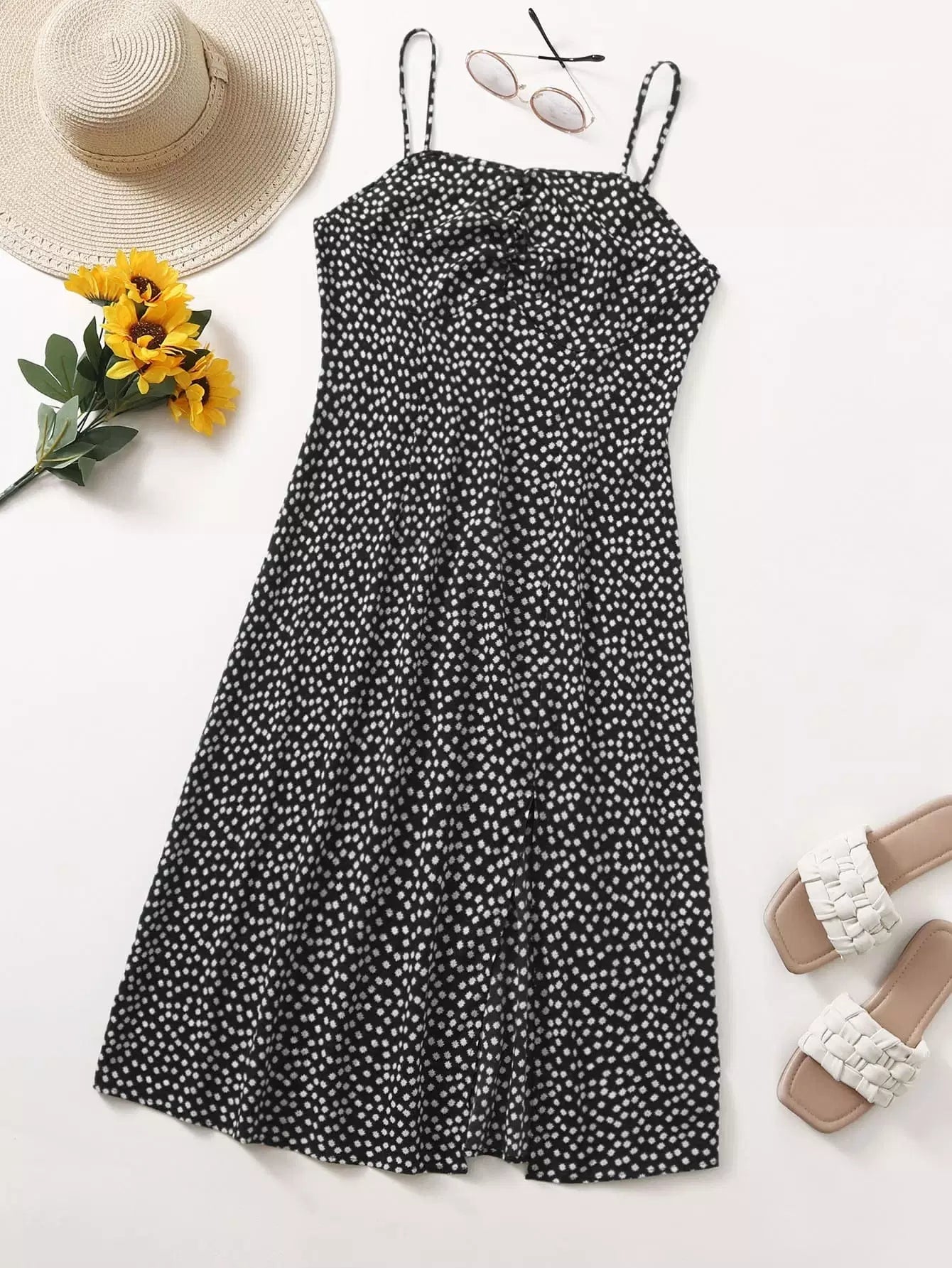 Plus Ditsy Floral Print Slit Hem Cami Dress