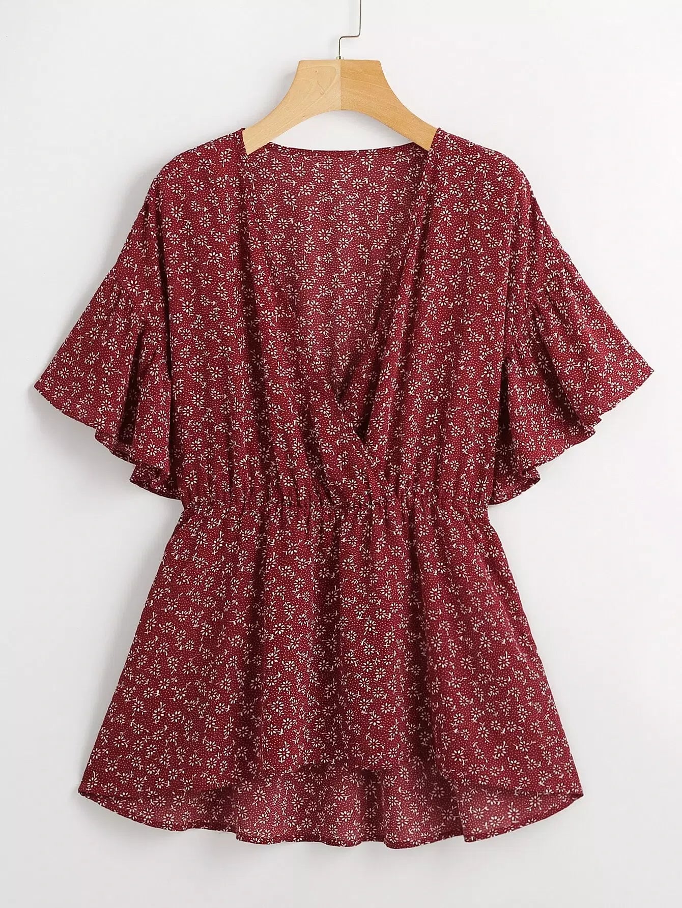 Plus Ditsy Floral Wrap Smock Blouse