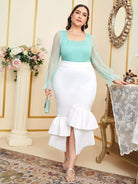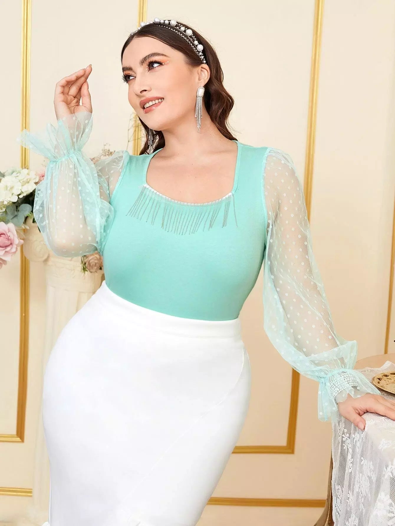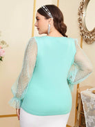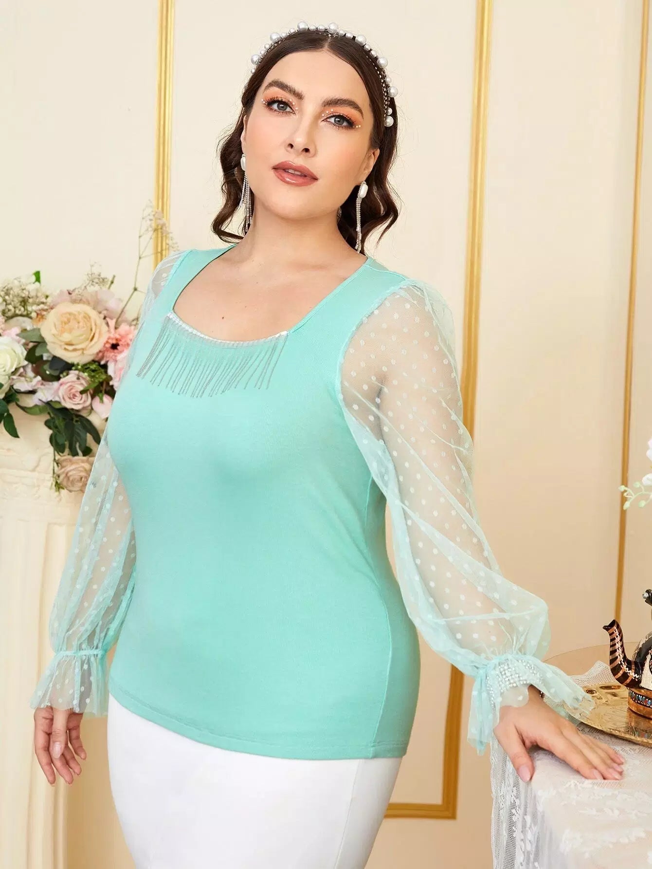 Plus Dobby Mesh Flounce Sleeve Fringe Detail Top