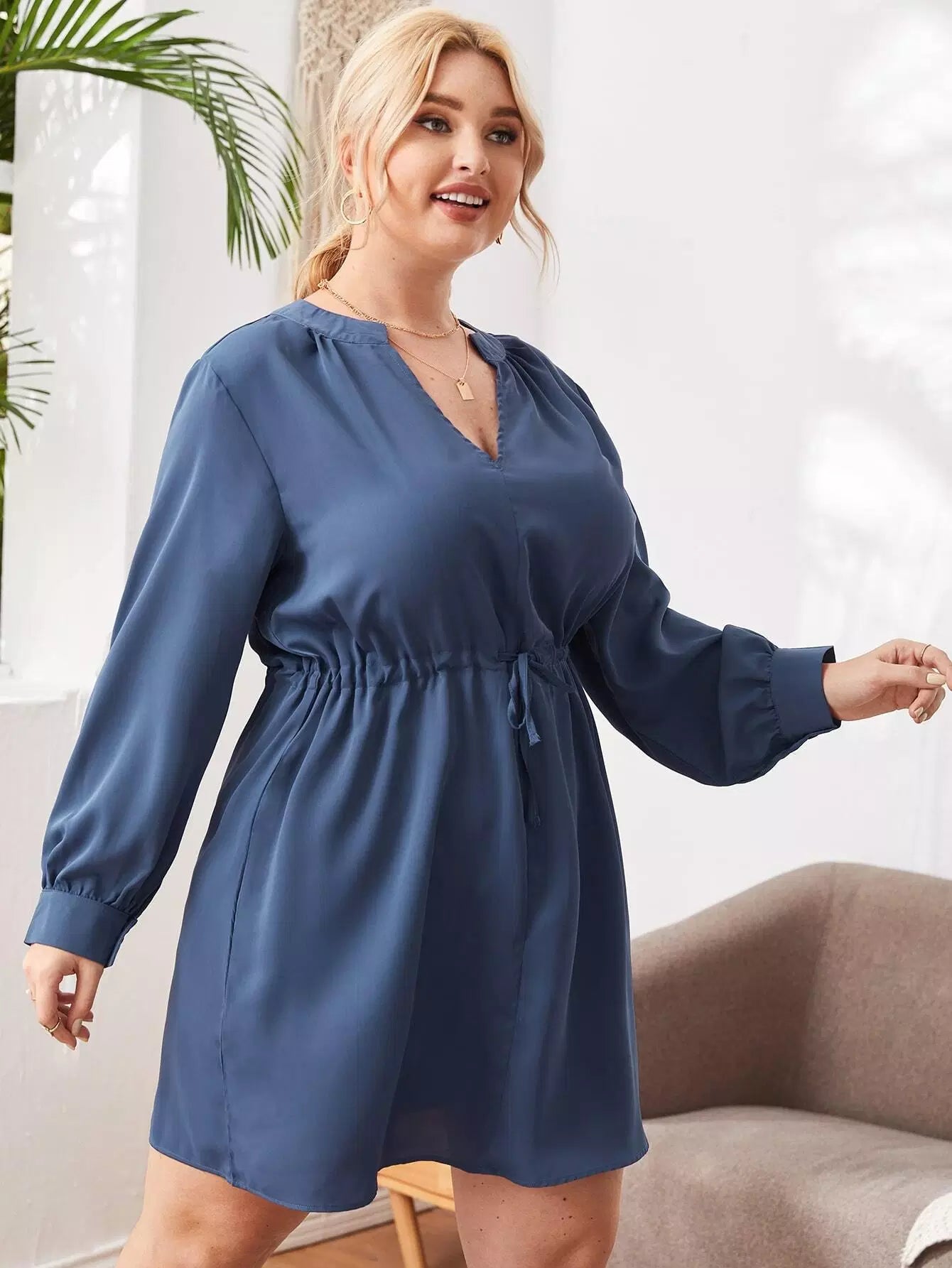 Plus Drawstring Waist Shirt Dress
