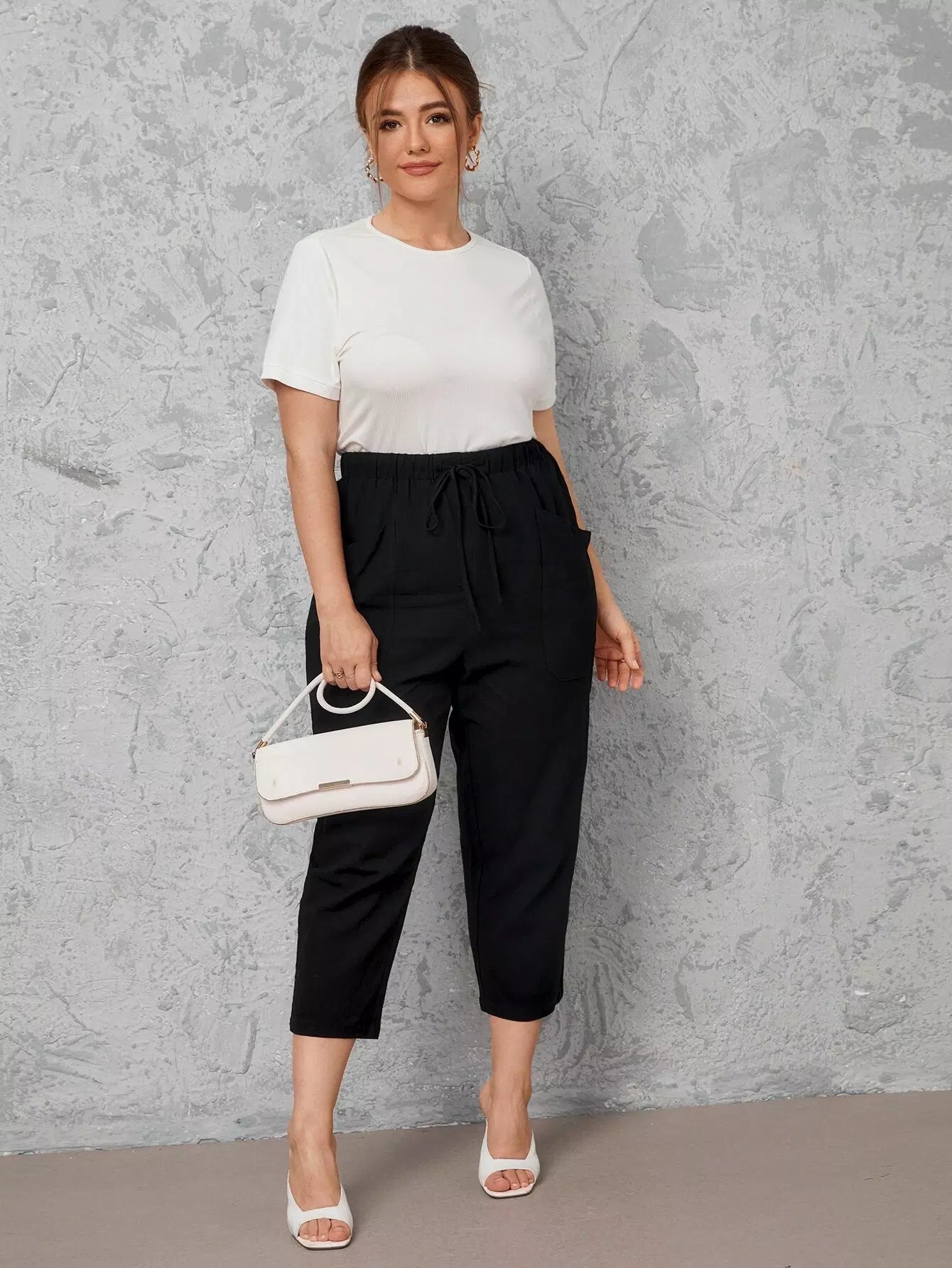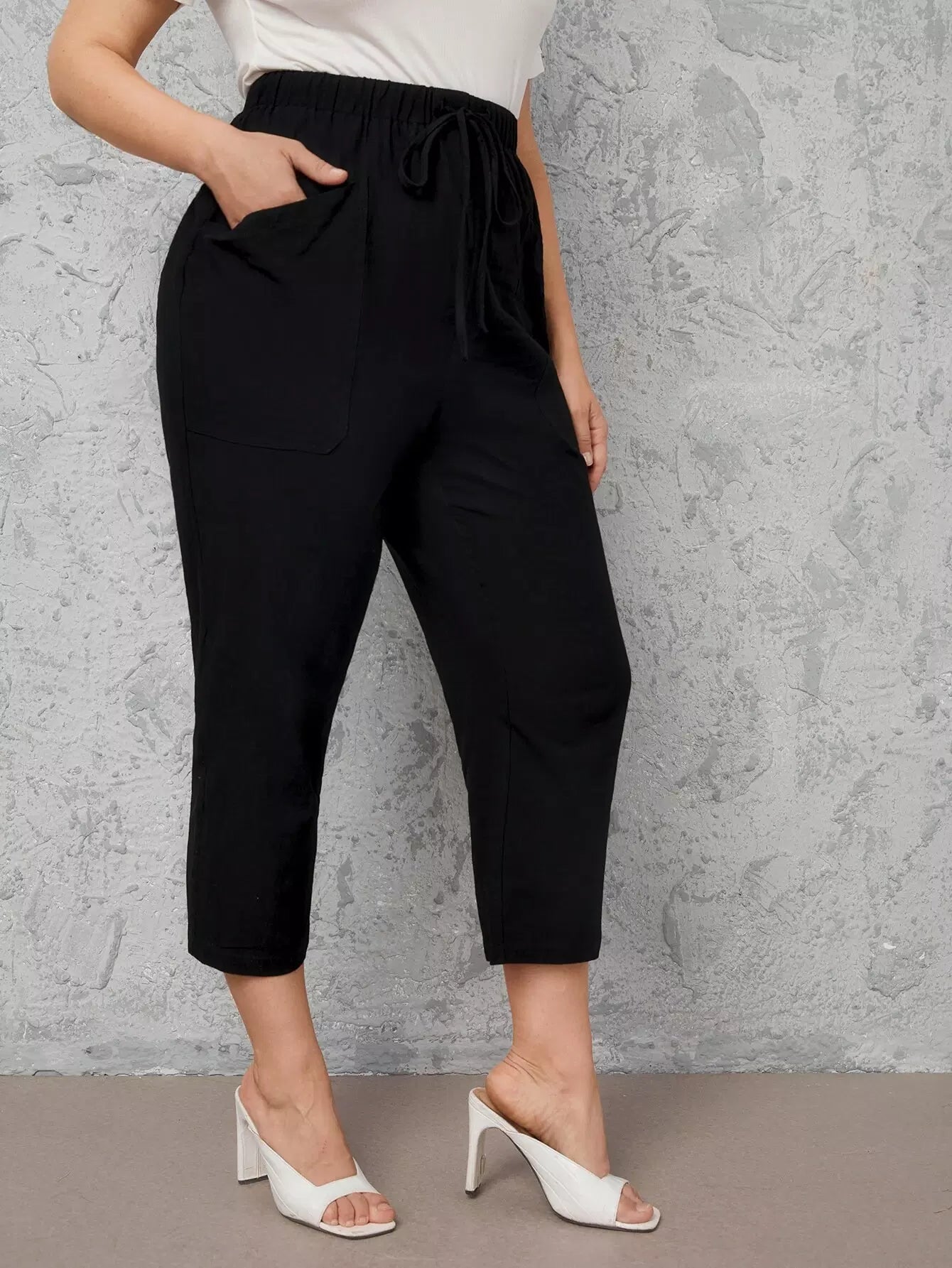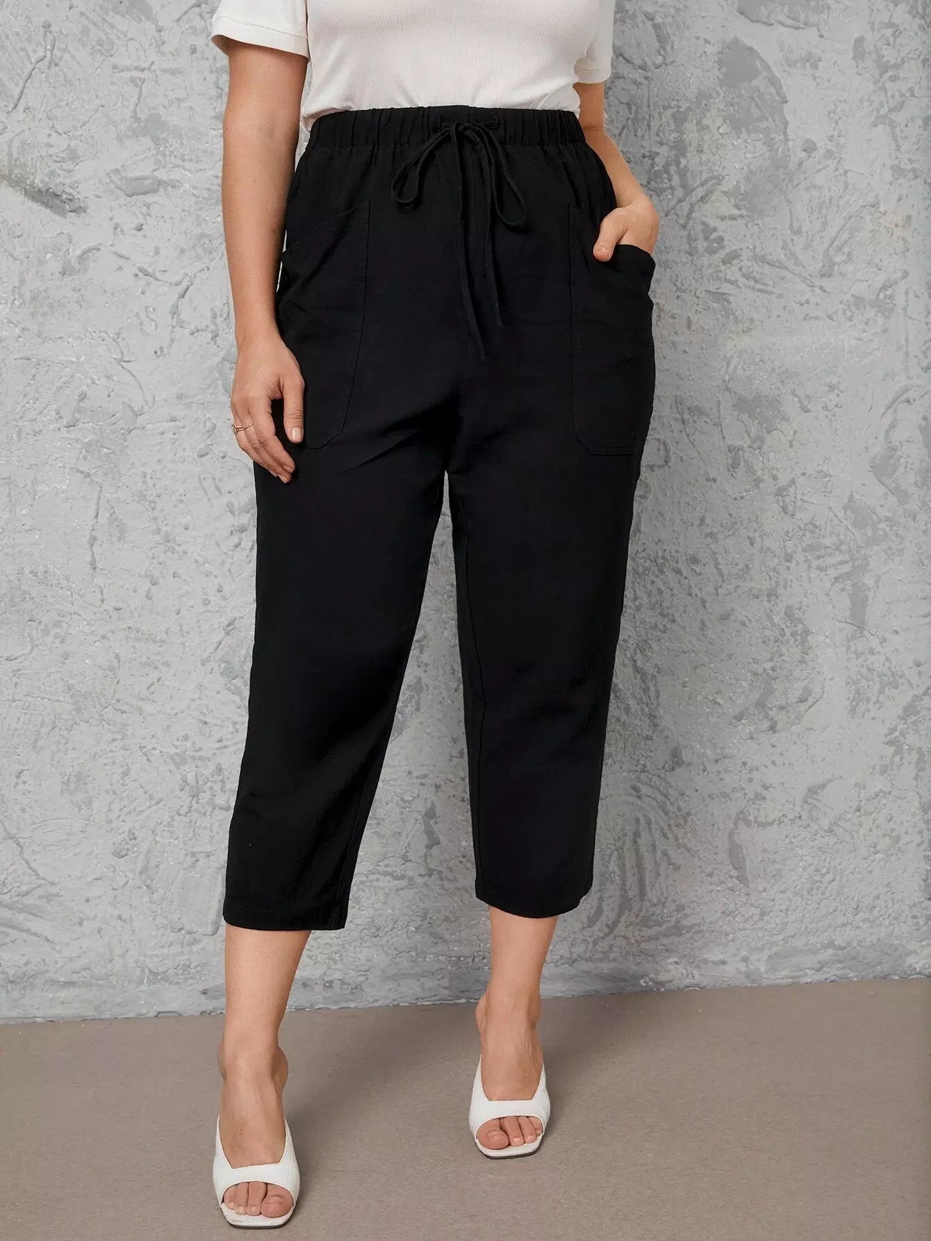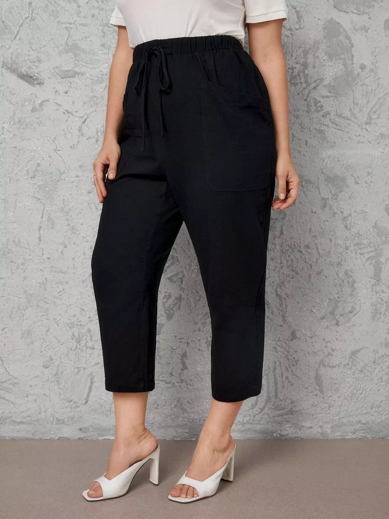 Plus Drawstring Waist Slant Pocket Capri Pants
