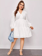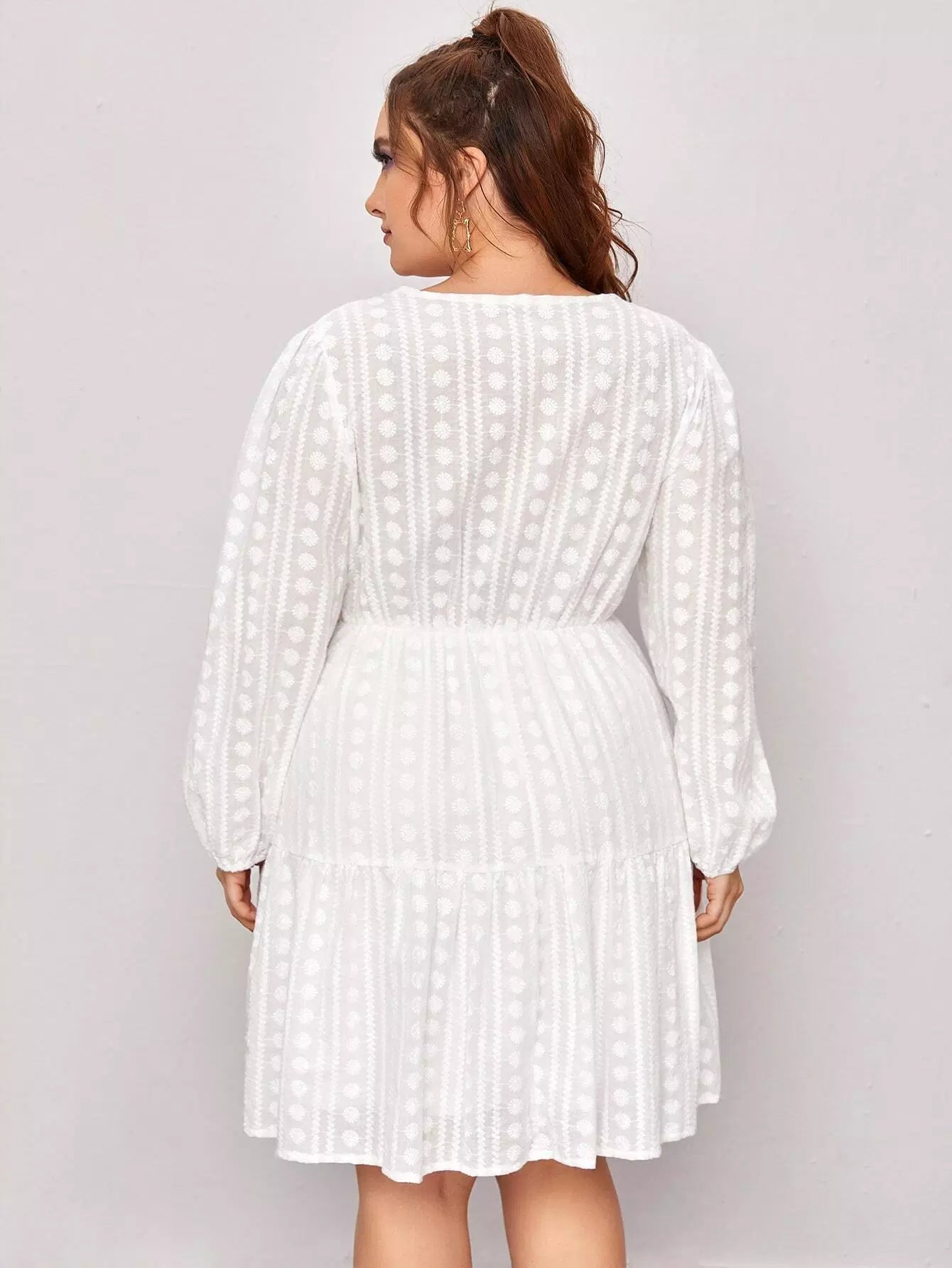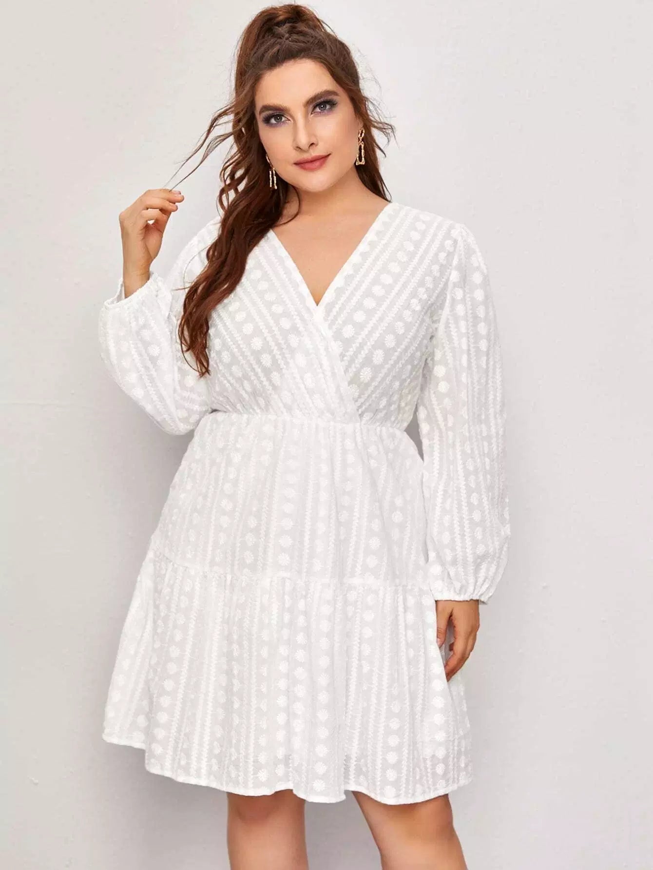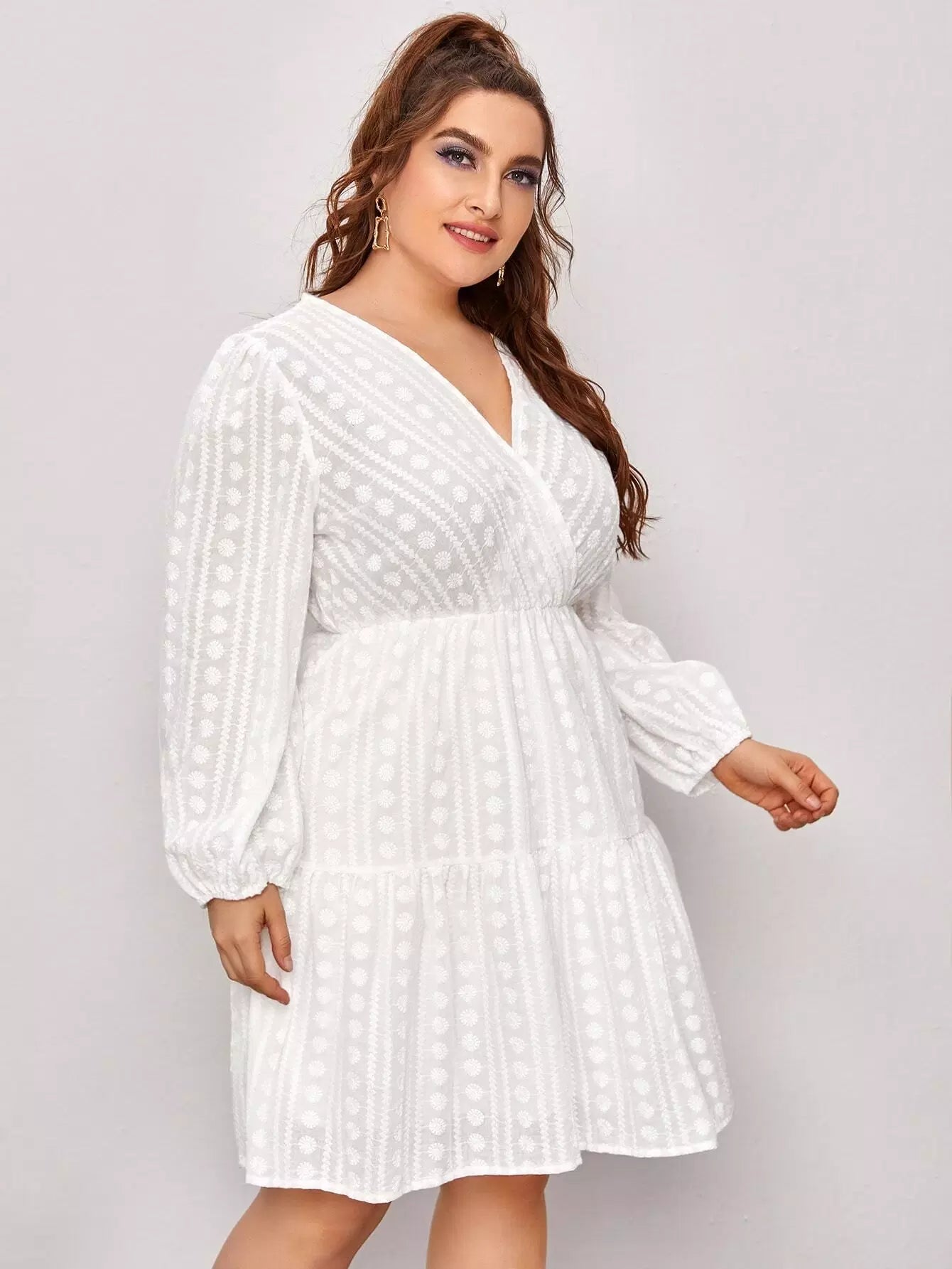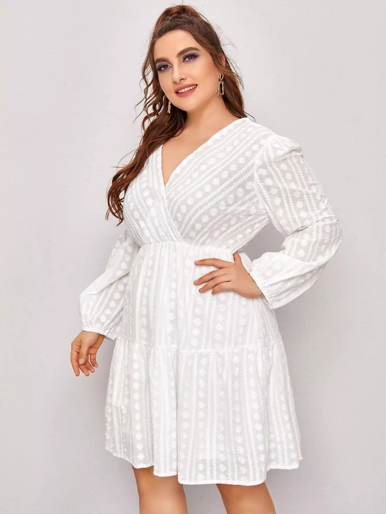 Women - Plus Embroidery Wrap Ruffle Hem Dress