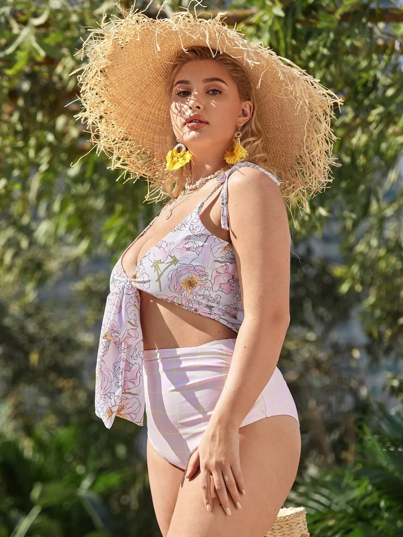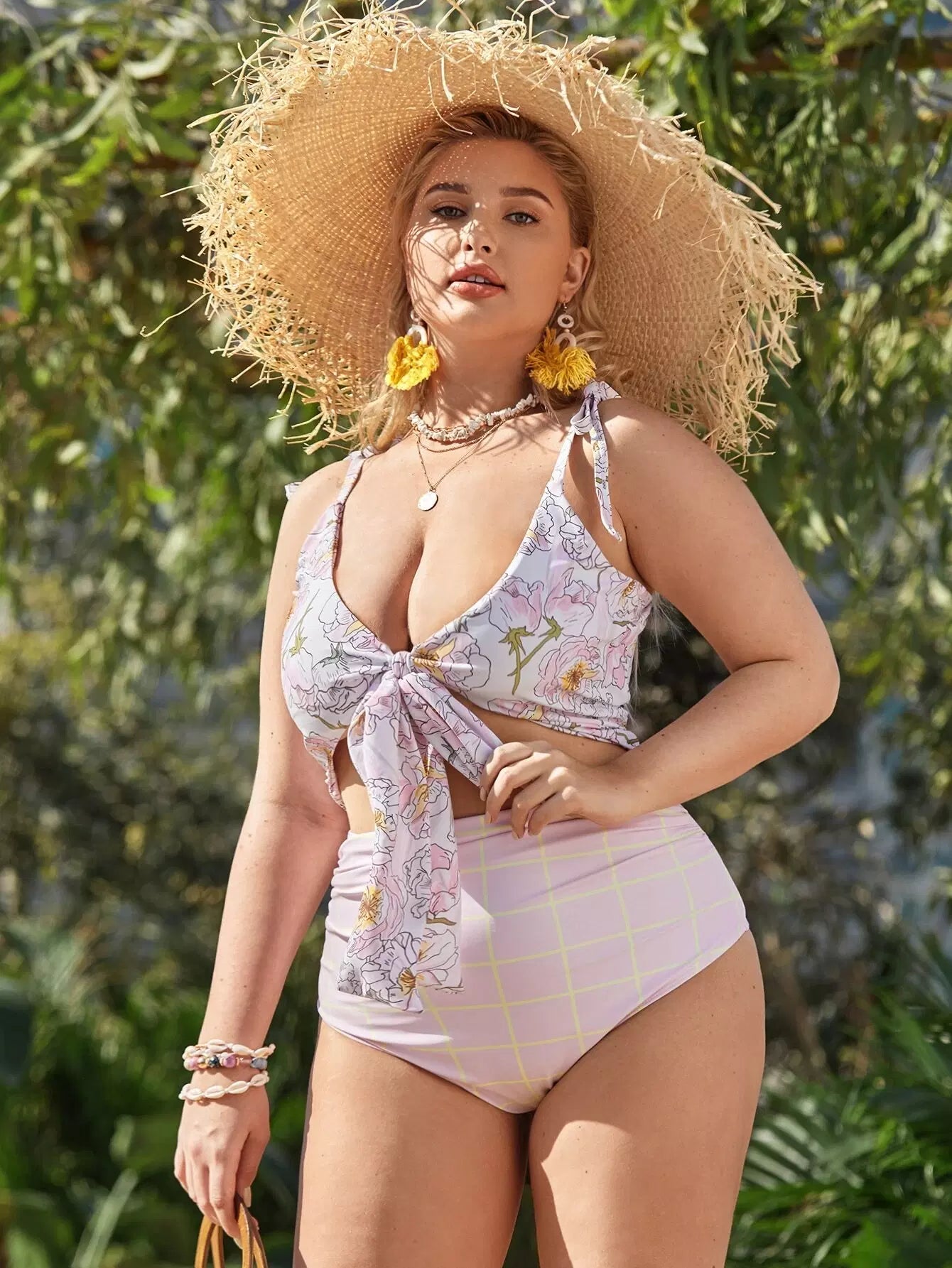 Plus Floral & Plaid Knot Bikini Swimsuit