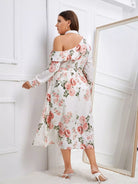 Plus Floral Print Asymmetrical Neck Ruffle Trim Dress Without Belt