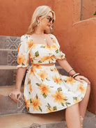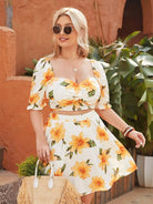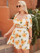 Plus Floral Ruched Bust Top & Skirt Set