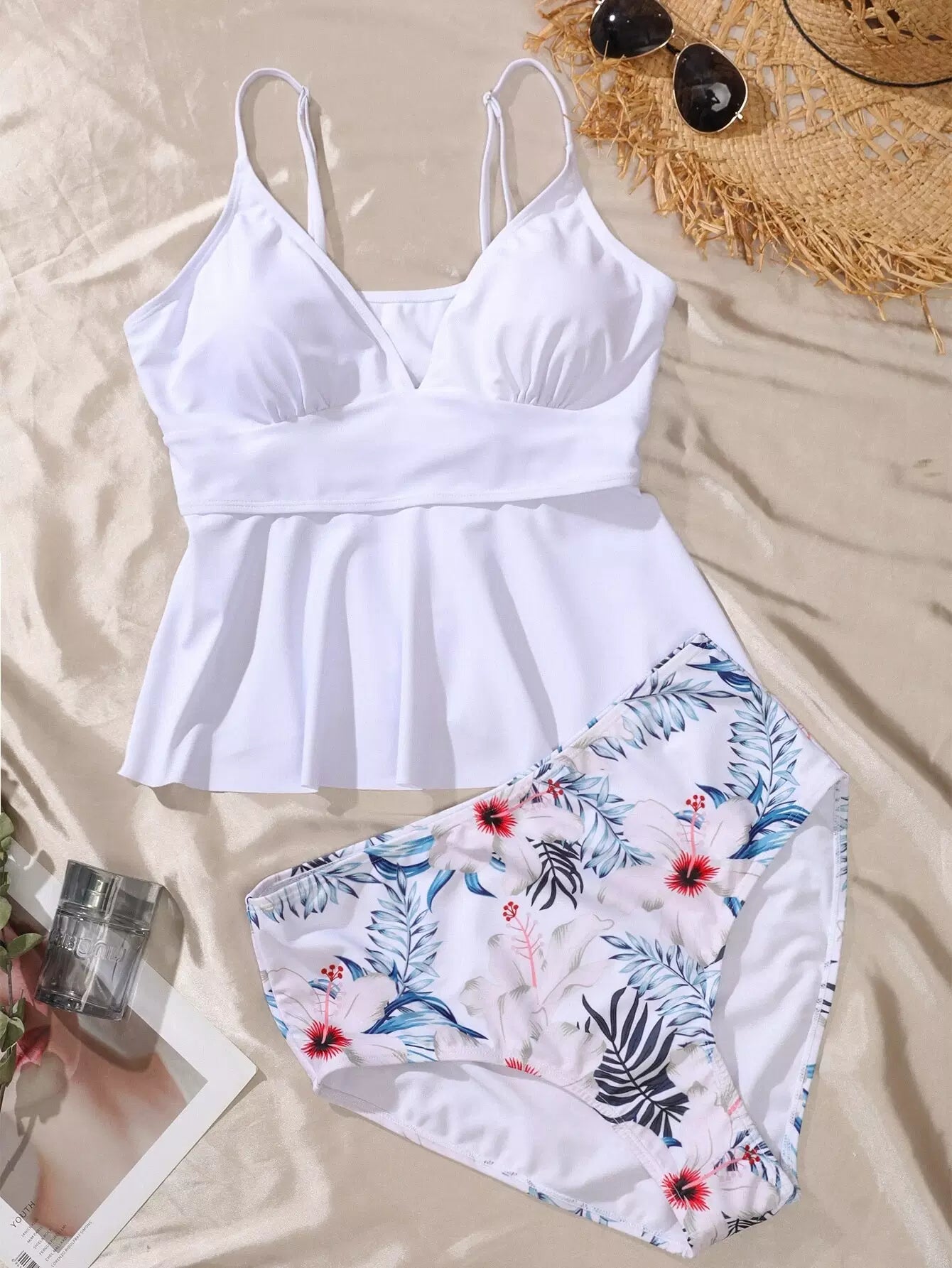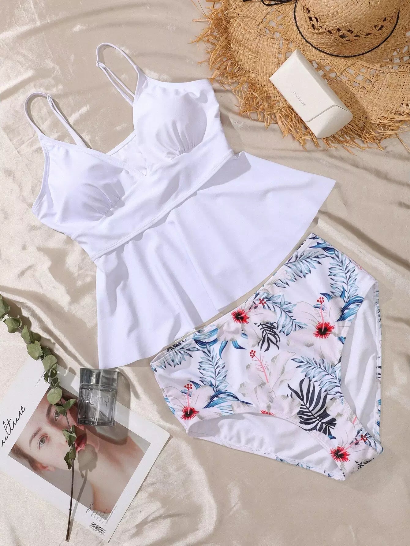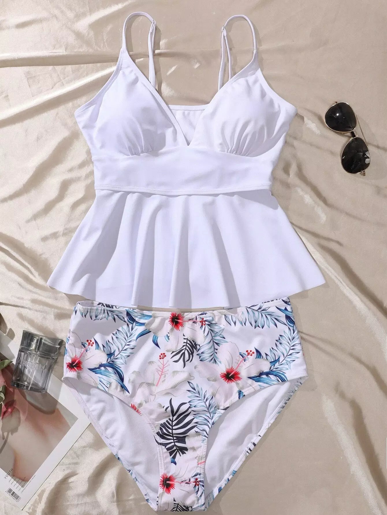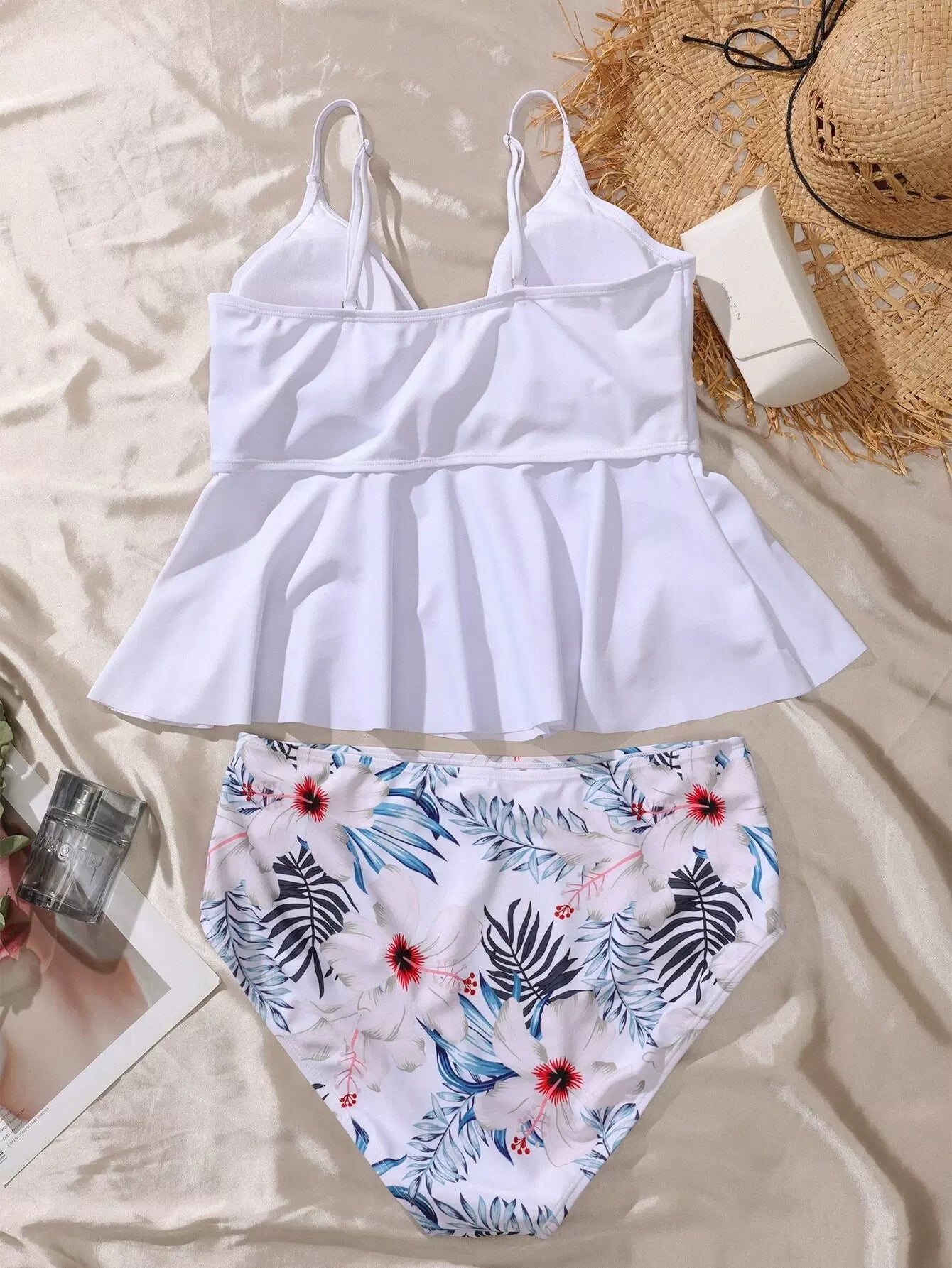 Women - Plus Floral & Tropical Ruffle Hem Bikini Swimsuit