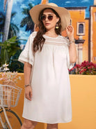 Plus Flounce Sleeve Guipure Lace Insert Dress