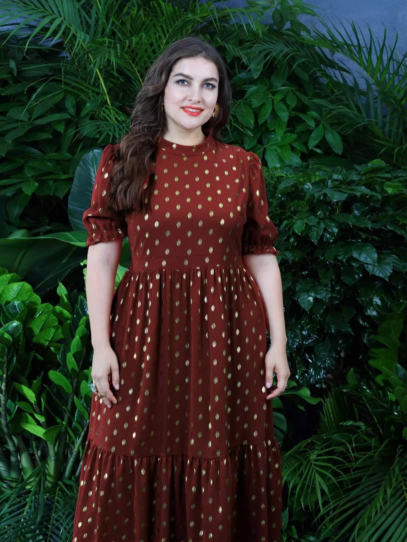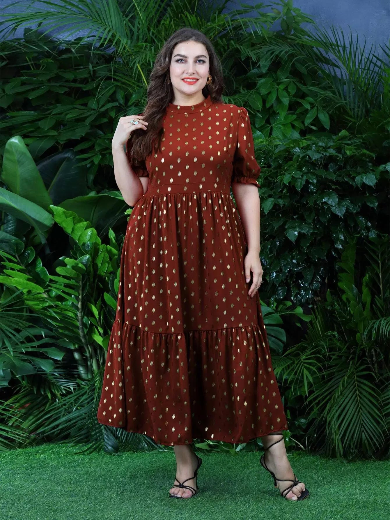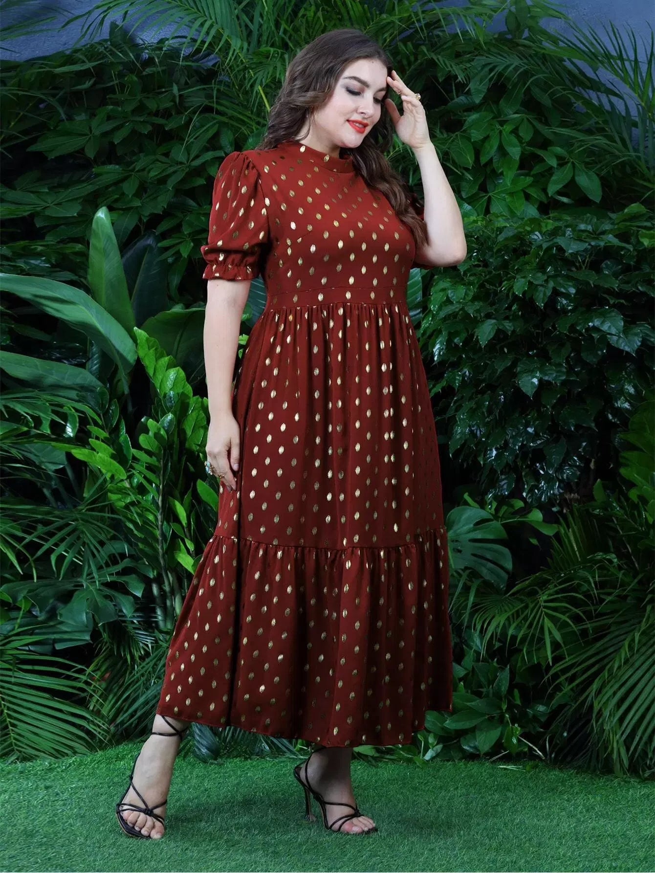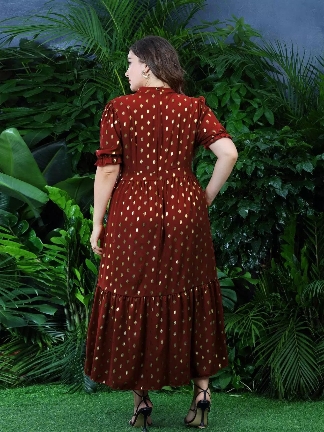 Plus Gold Dot Ruffle Hem A-line Dress