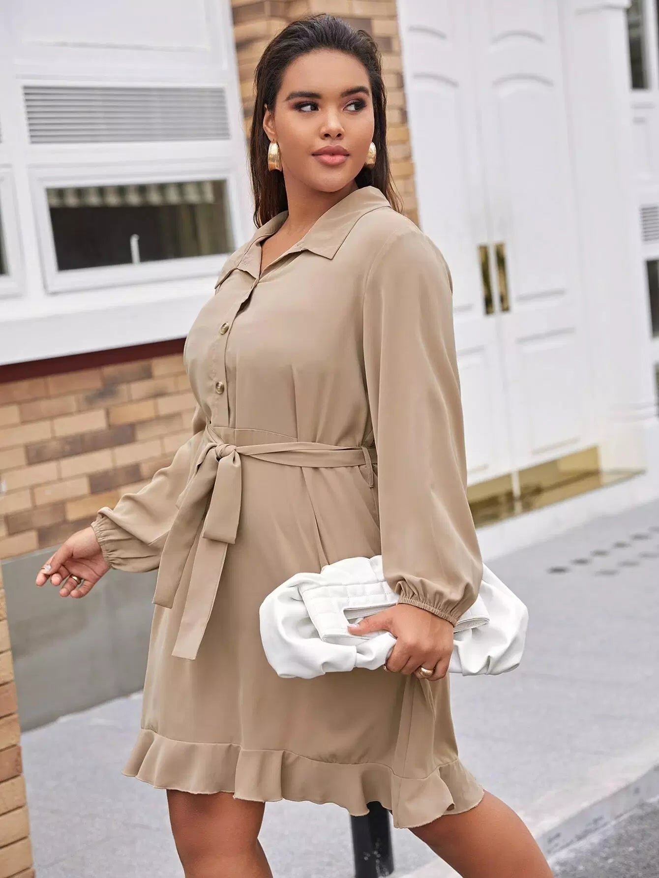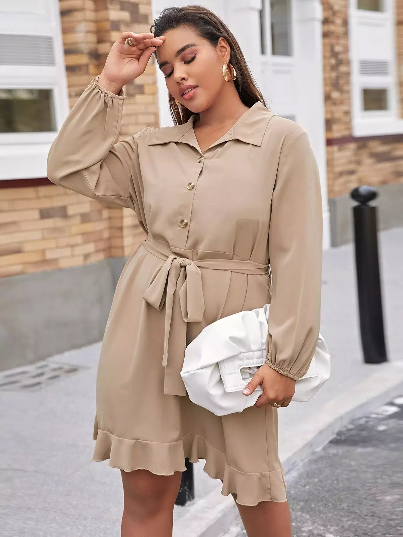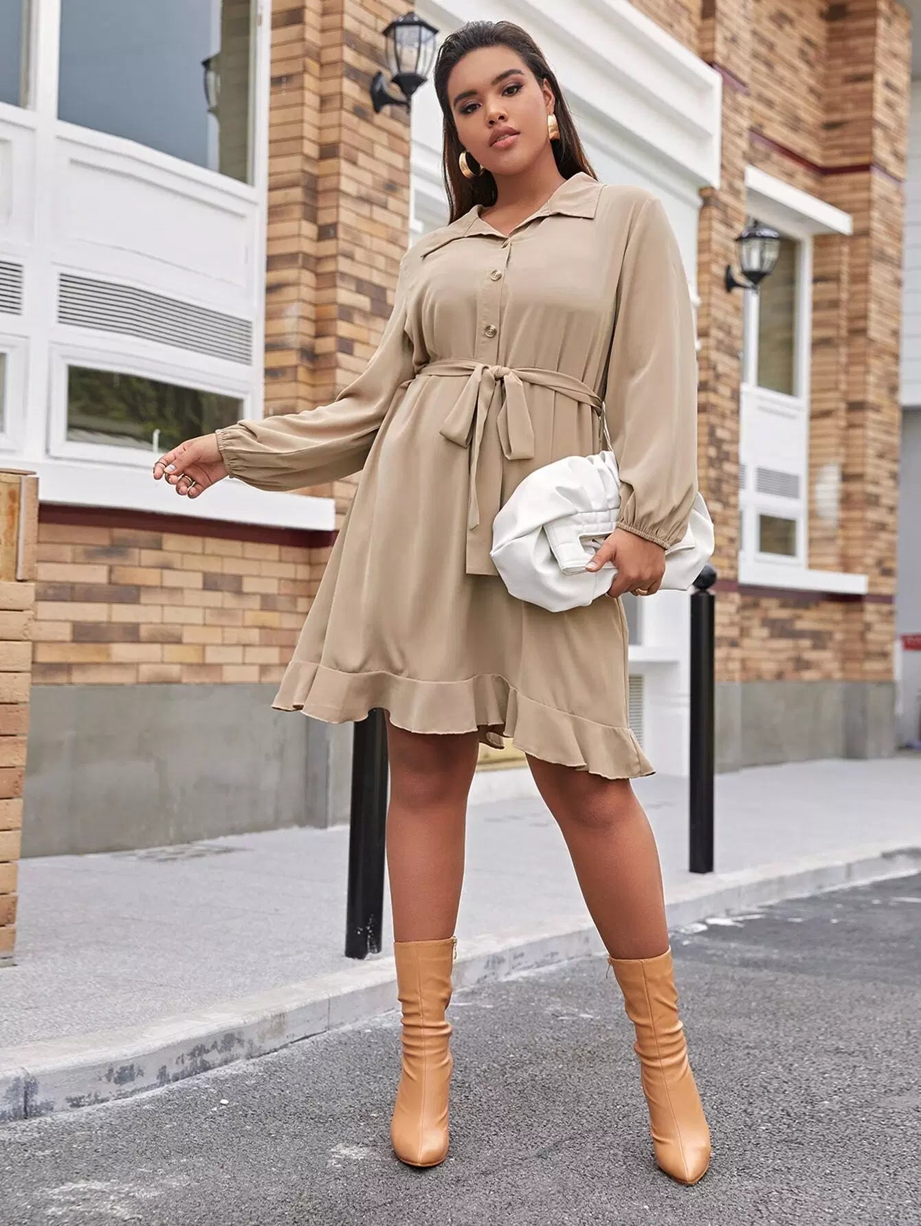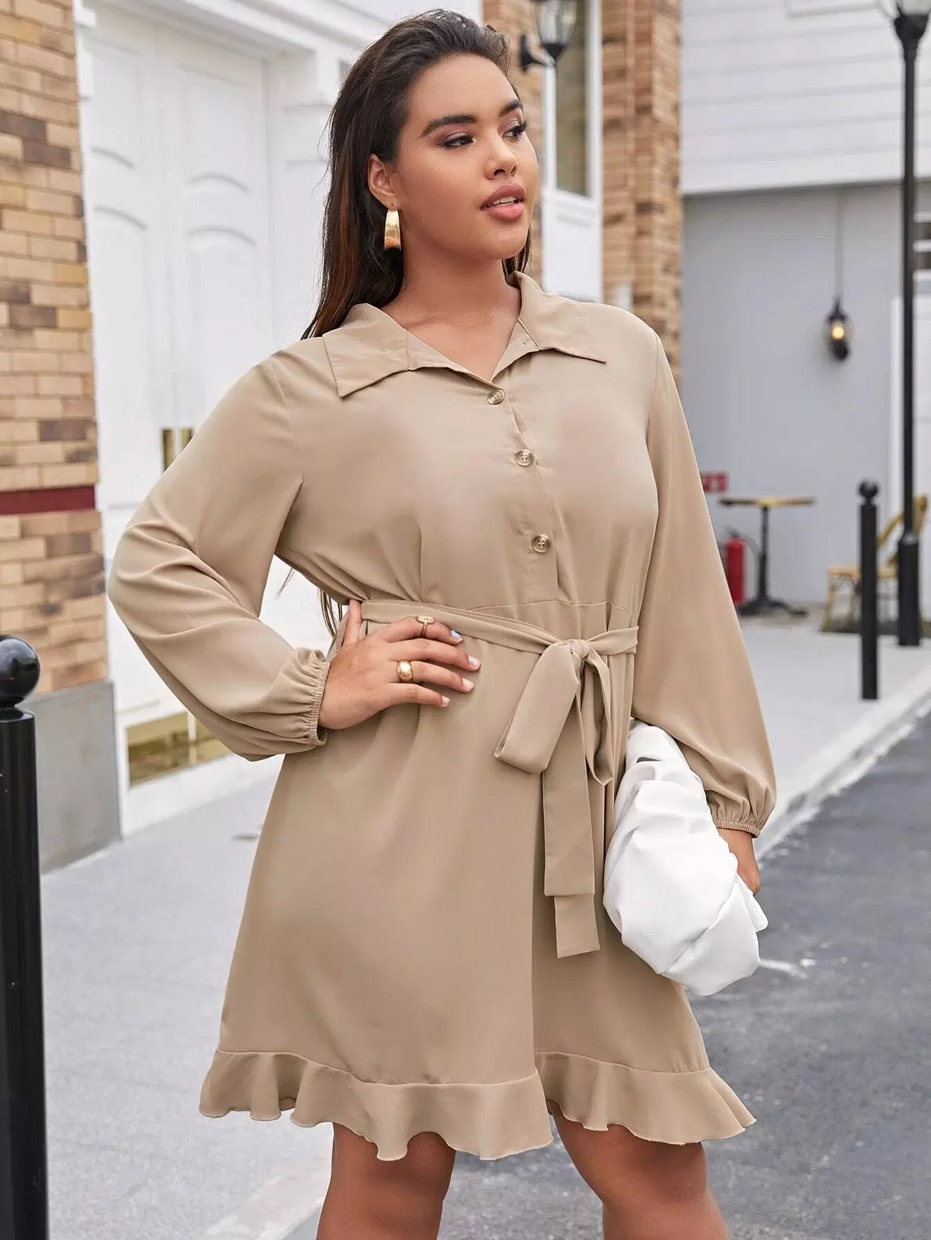 Plus Half Placket Ruffle Hem Dress Without Belt