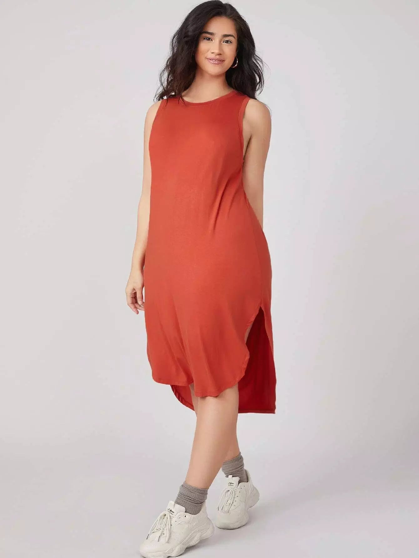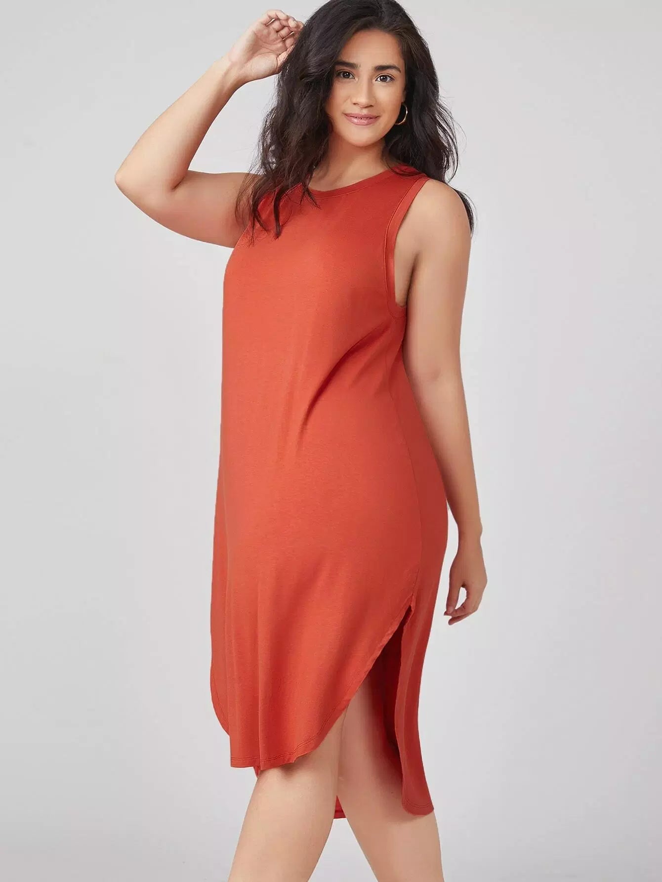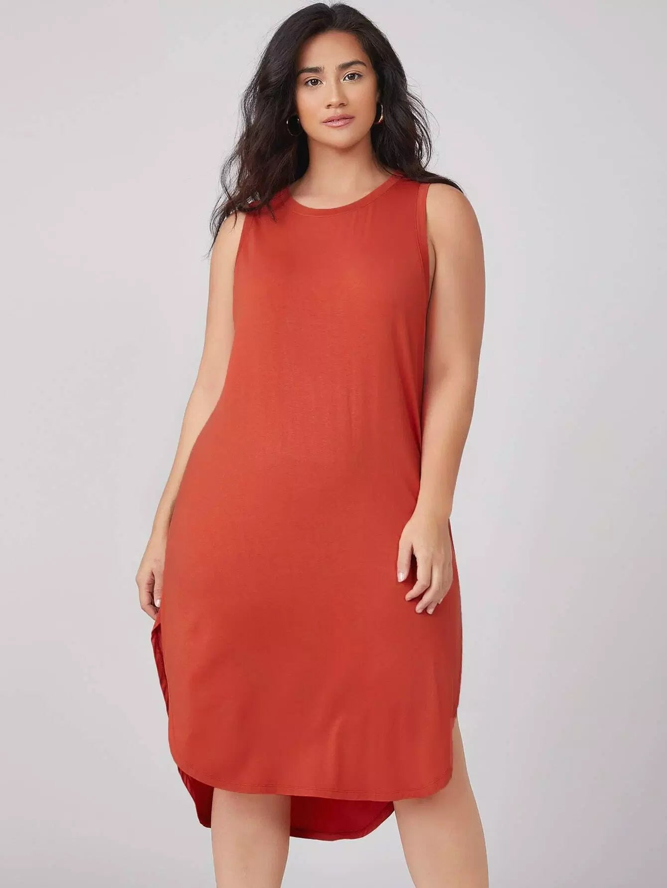 Plus High Low Solid Tank Dress