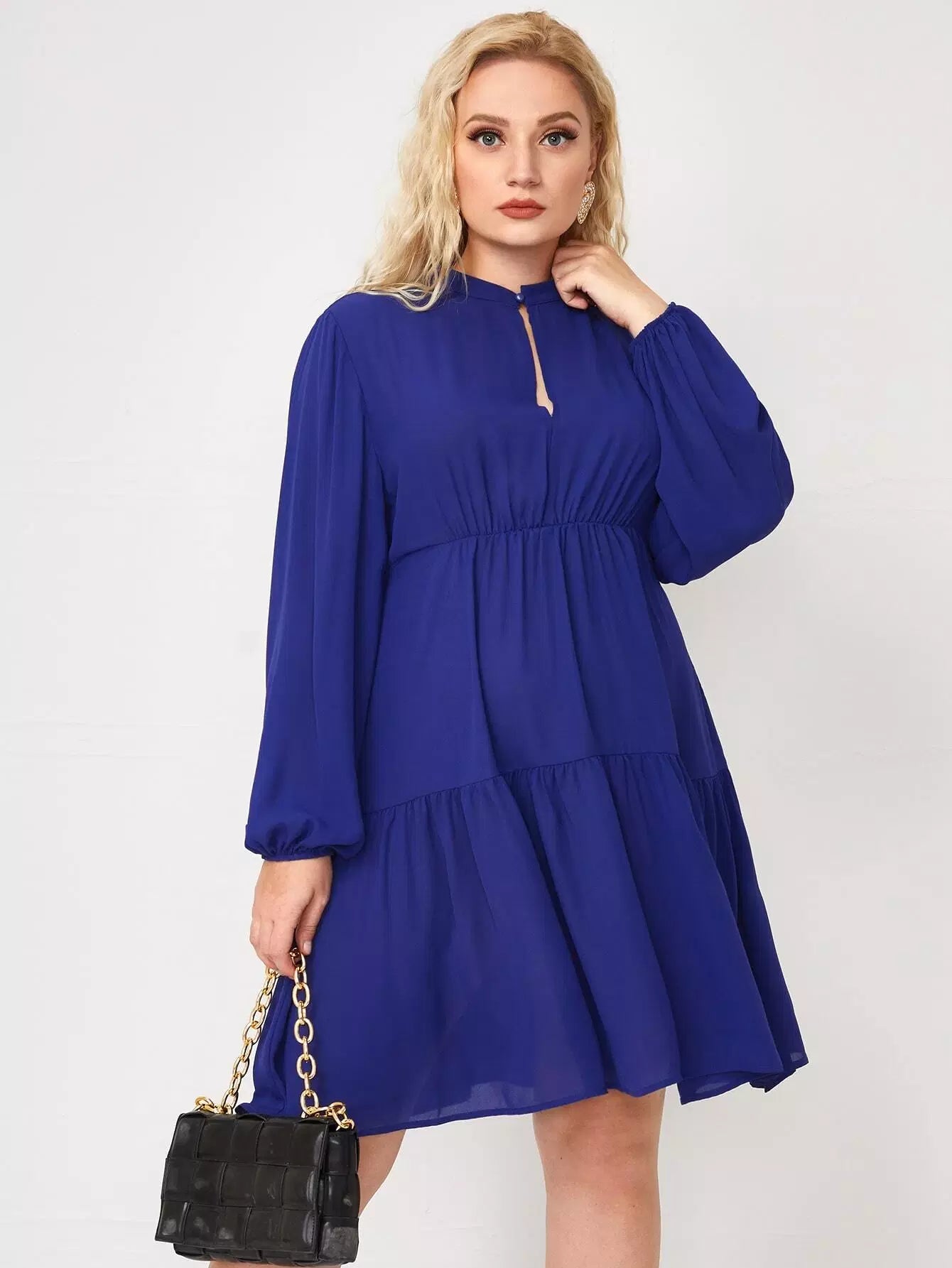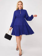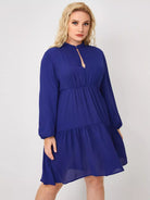 Plus Keyhole Neck Flounce Hem Dress