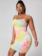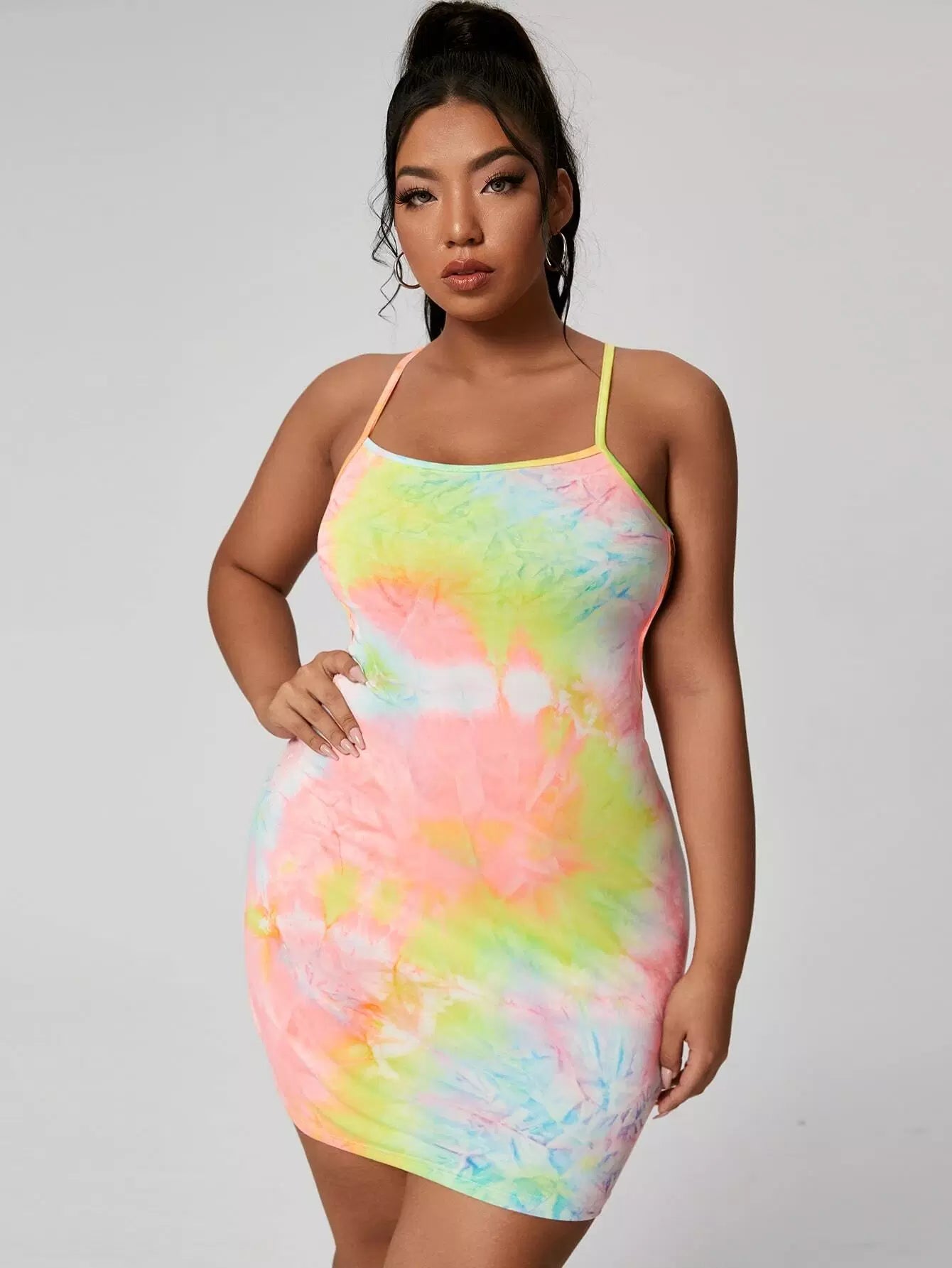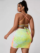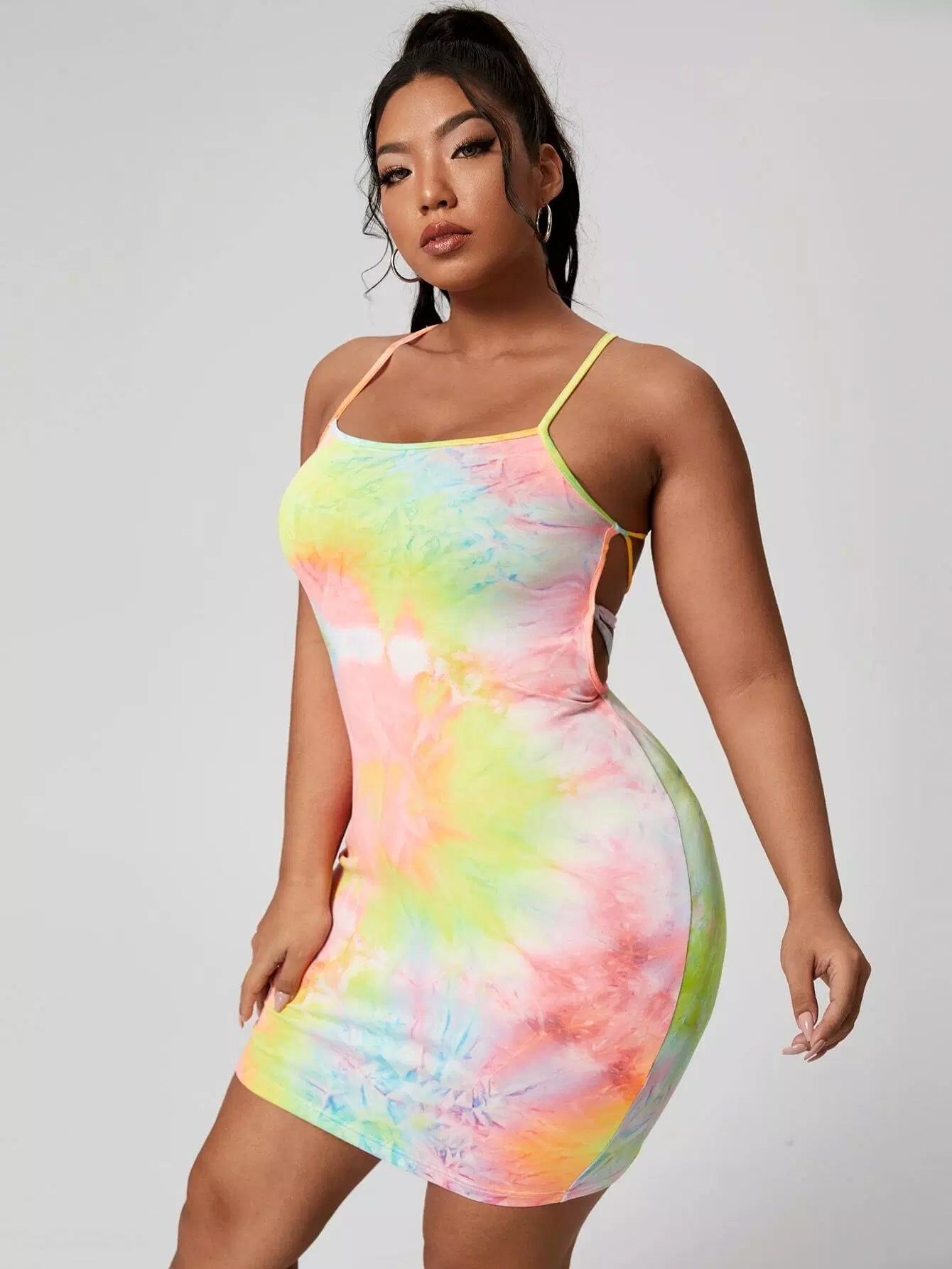 Plus Lace-up Backless Tie Dye Bodycon Dress