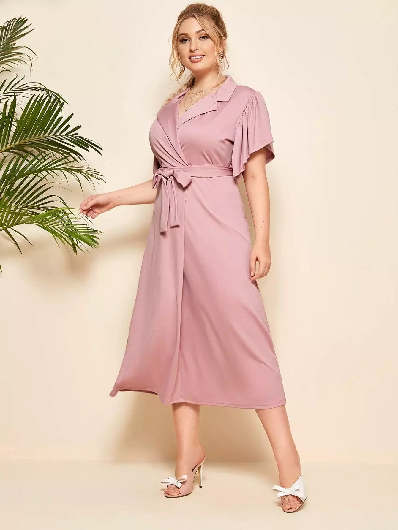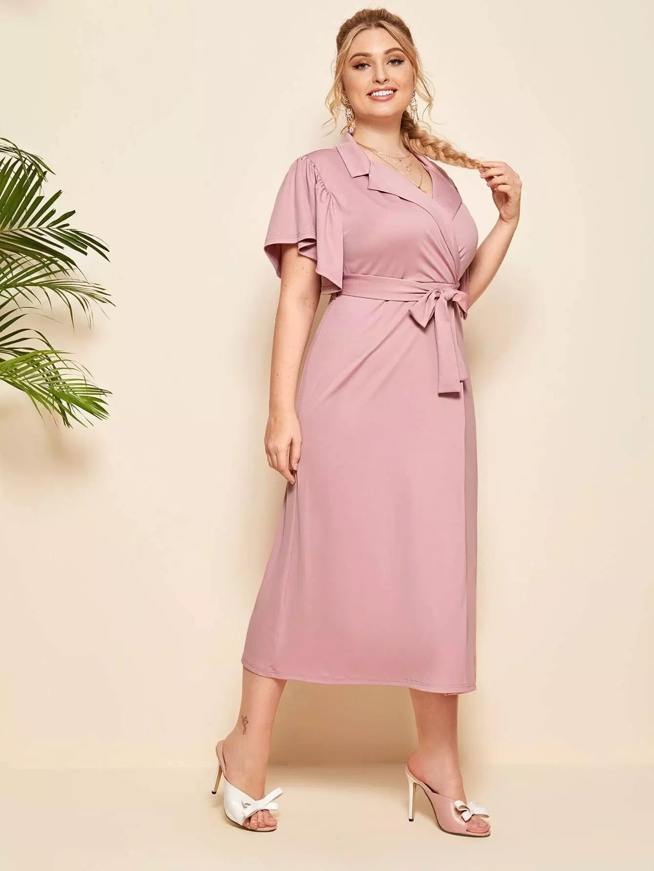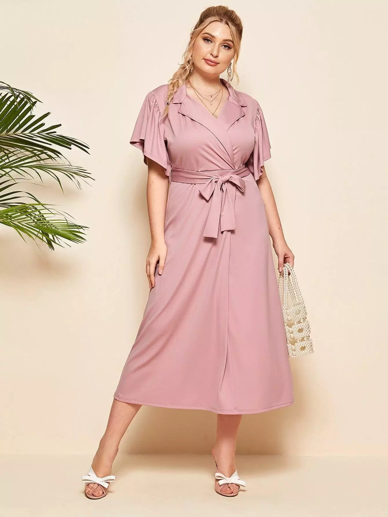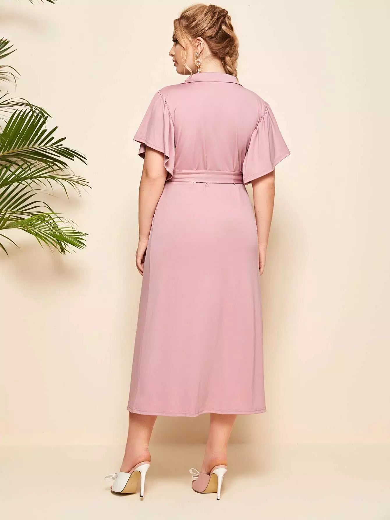 Plus Lapel Collar Butterfly Sleeve Dress Without Belt