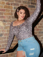 Plus Leopard Print Tie Neck Tee